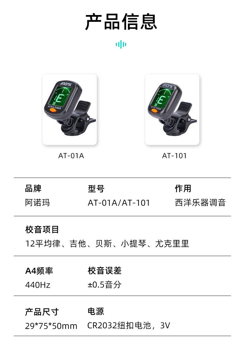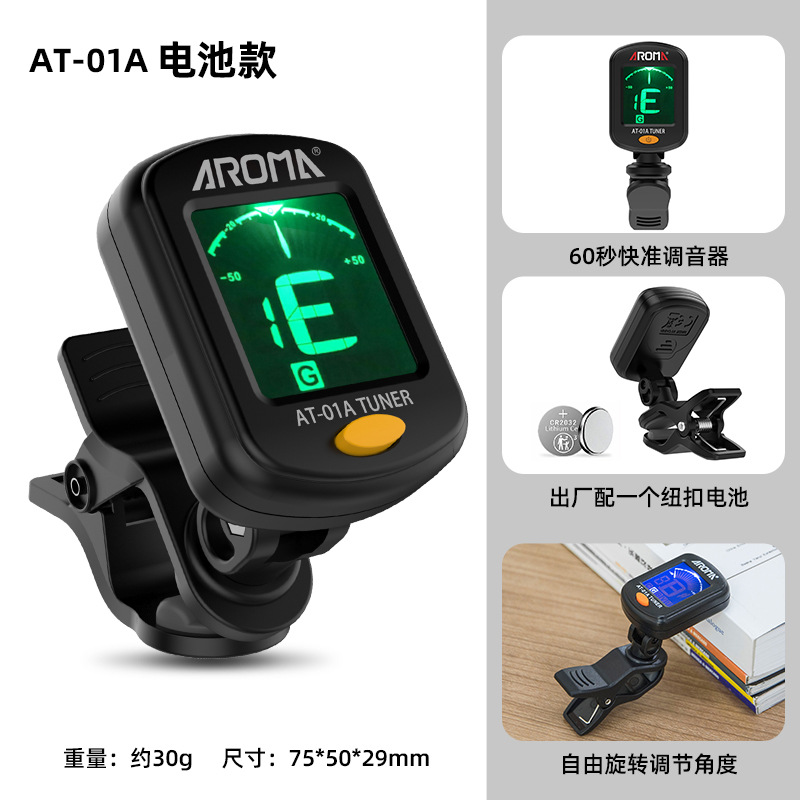 AROMA 기타 튜너 포크 AT-01A 우쿨렐레 바이올린 학교 악기 유니버설