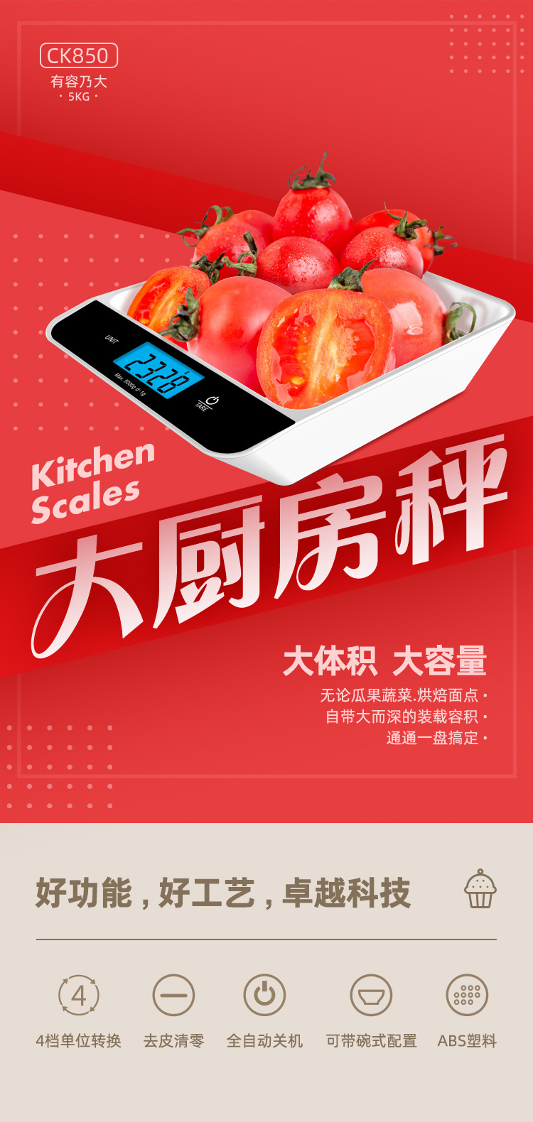 그릇이 있는 분리형 올인원 주방 저울 플라스틱 케이크 베이킹 저울 공장 맞춤형 전자 애완동물 사료 저울 5kg스토어 가기