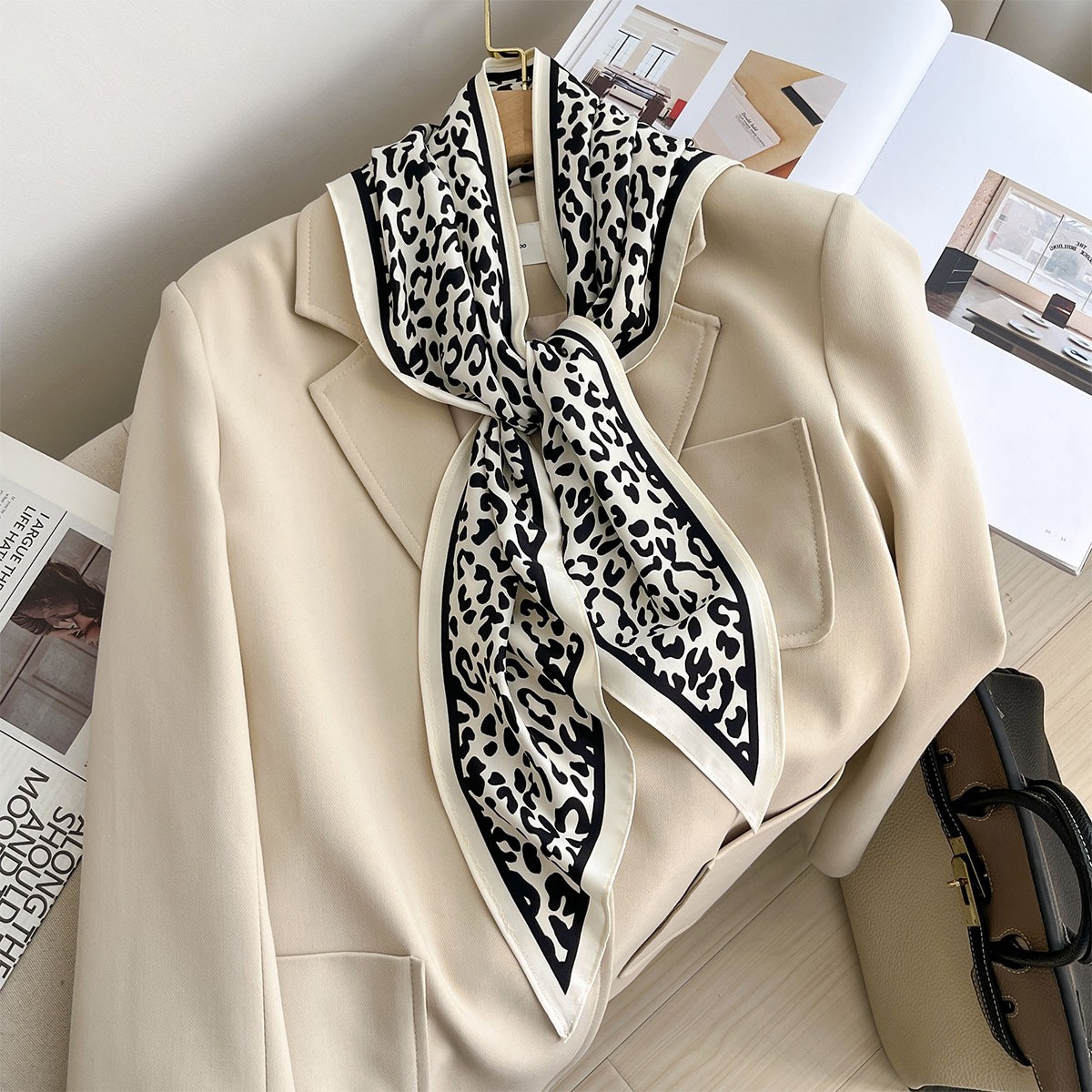 여름 새로운 패션 표범 양면 인쇄 실크 스카프 한국식 고급 삼각형 스카프 얇은 우아한 스카프 목