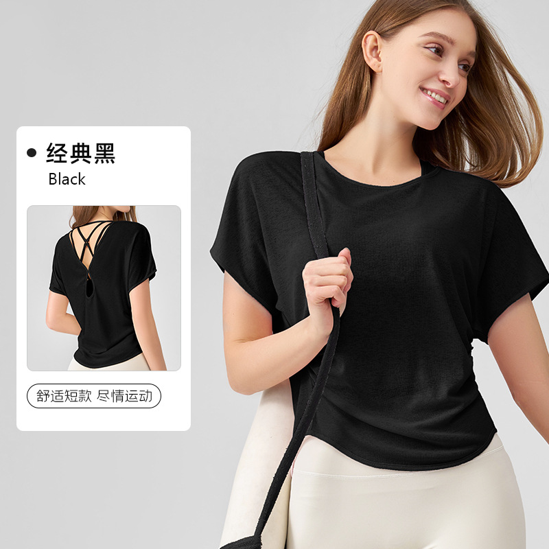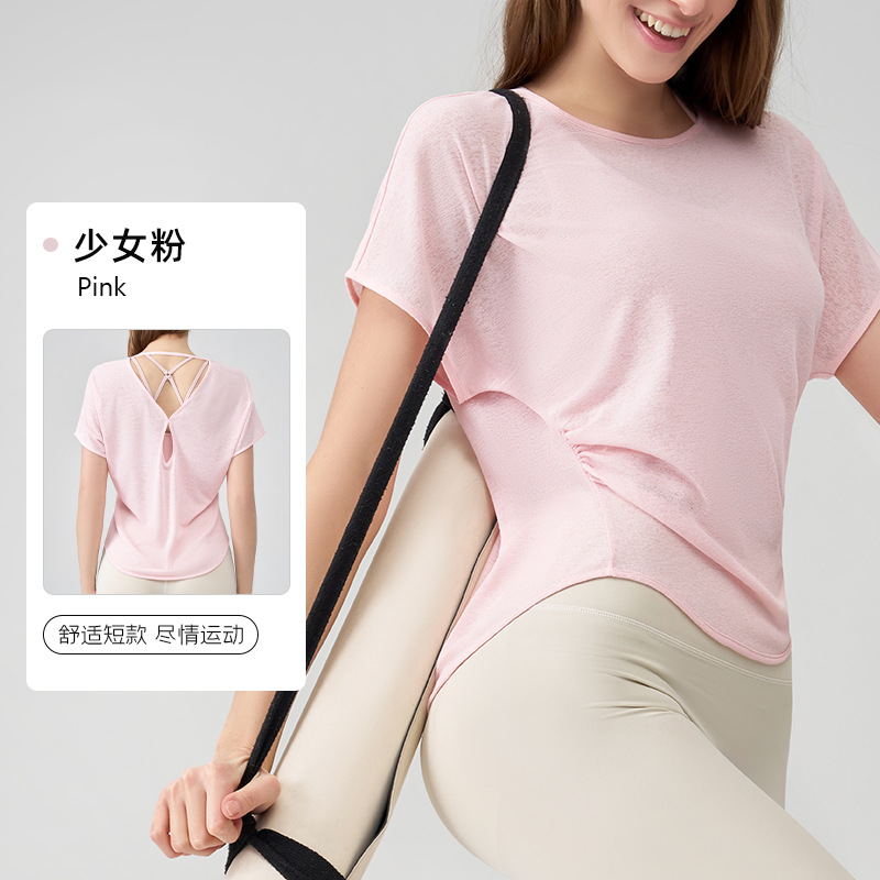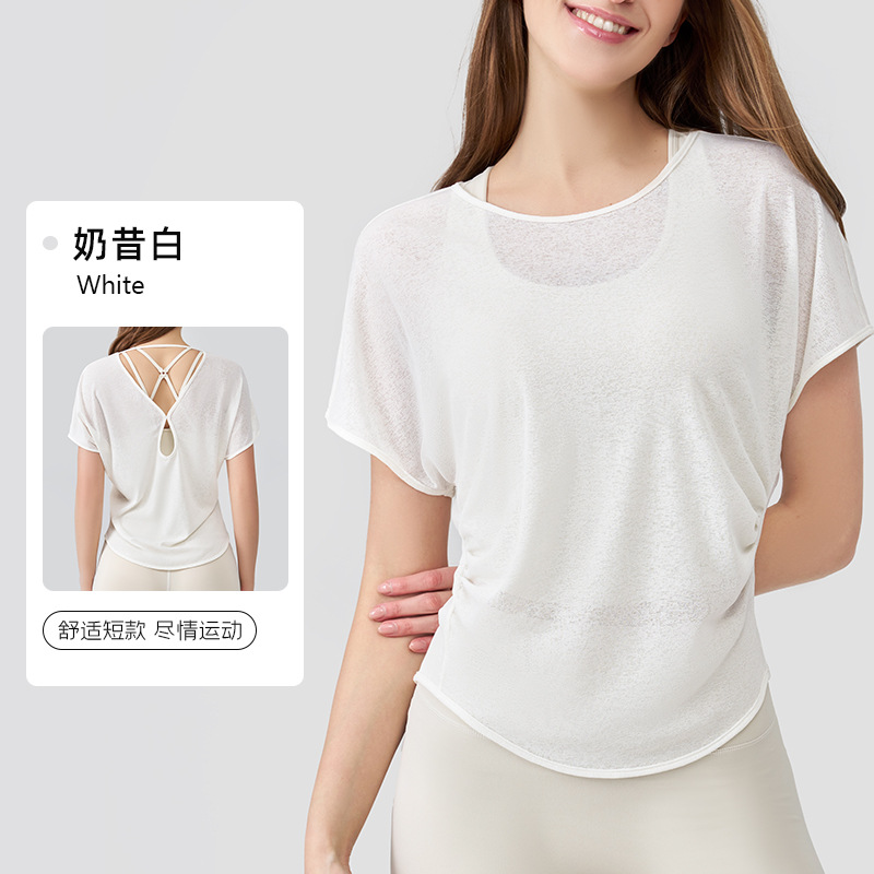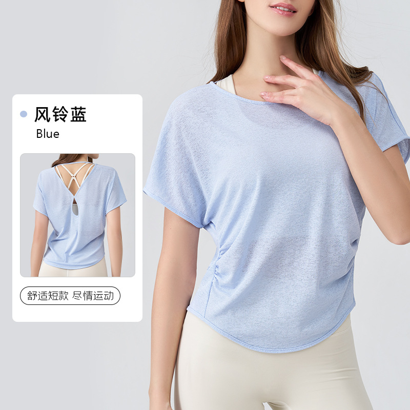 여름 여성을 위한 대나무 원사 고급 통기성 얇은 야외 요가 의류 탑 아름다운 등 훈련 속건 스포츠 블라우스스토어 가기