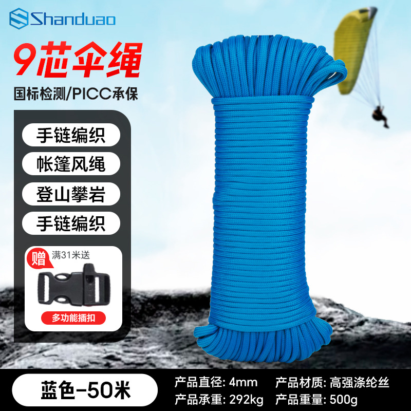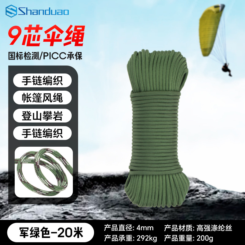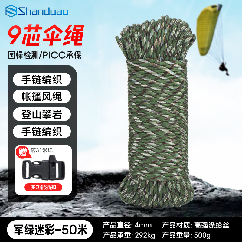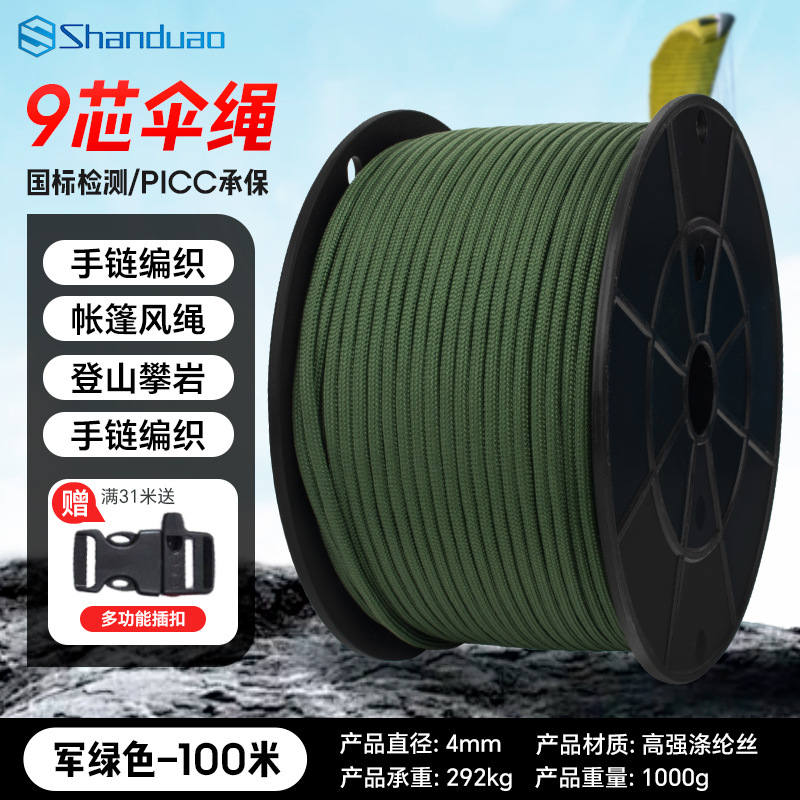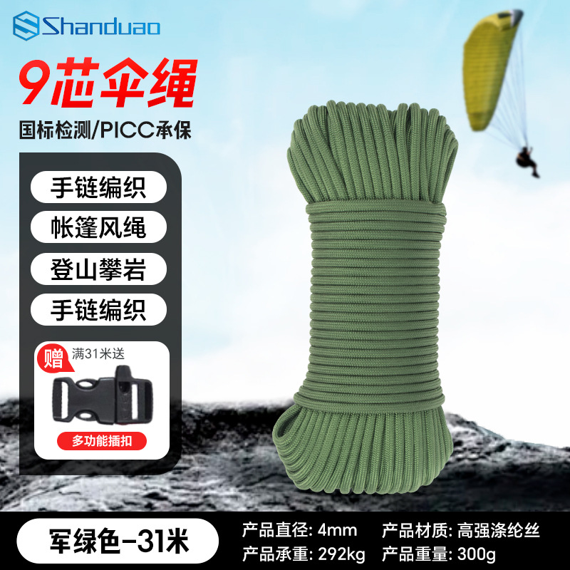 산토아오 군용 파라코드 9코어 로프 등산 로프 암벽등반 로프 안전 로프 야외 장비 텐트 낙하산 로프스토어 가기