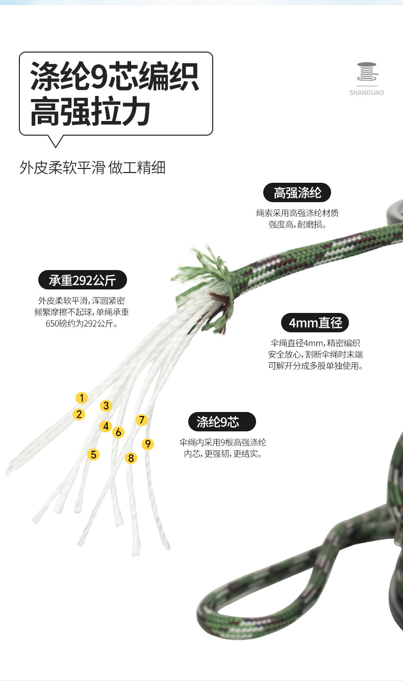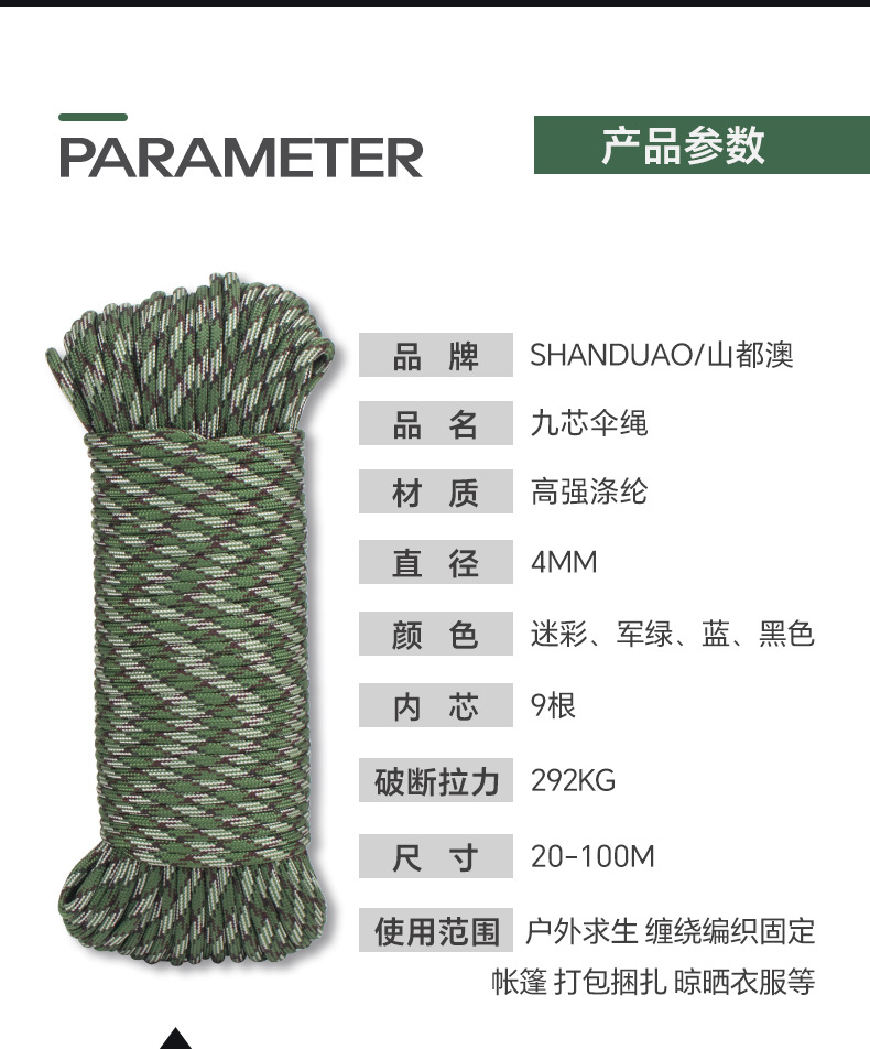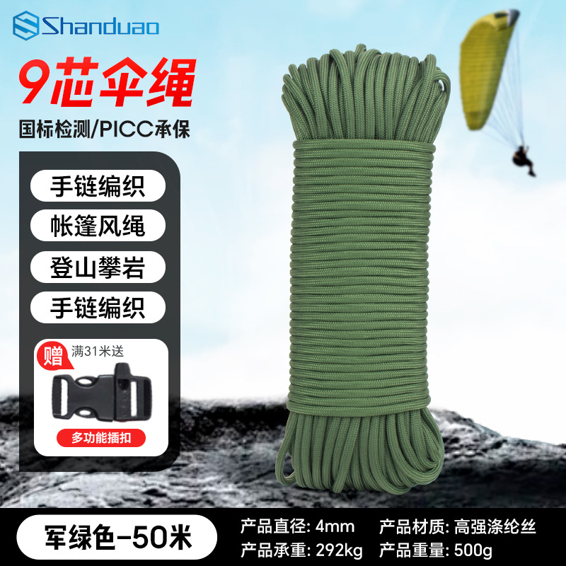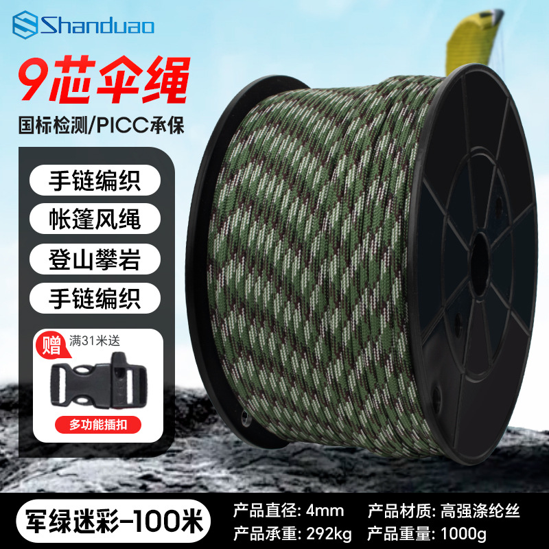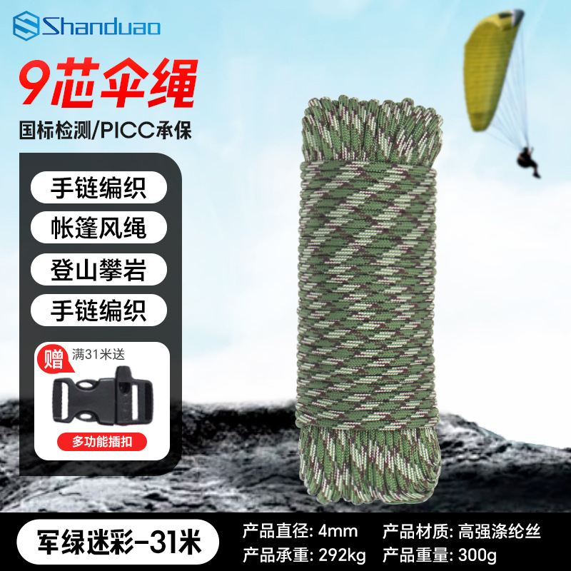 산토아오 군용 파라코드 9코어 로프 등산 로프 암벽등반 로프 안전 로프 야외 장비 텐트 낙하산 로프스토어 가기