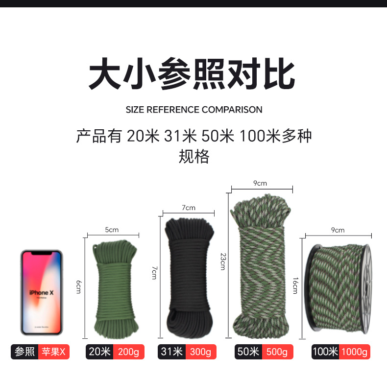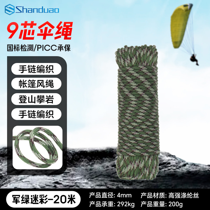 산토아오 군용 파라코드 9코어 로프 등산 로프 암벽등반 로프 안전 로프 야외 장비 텐트 낙하산 로프