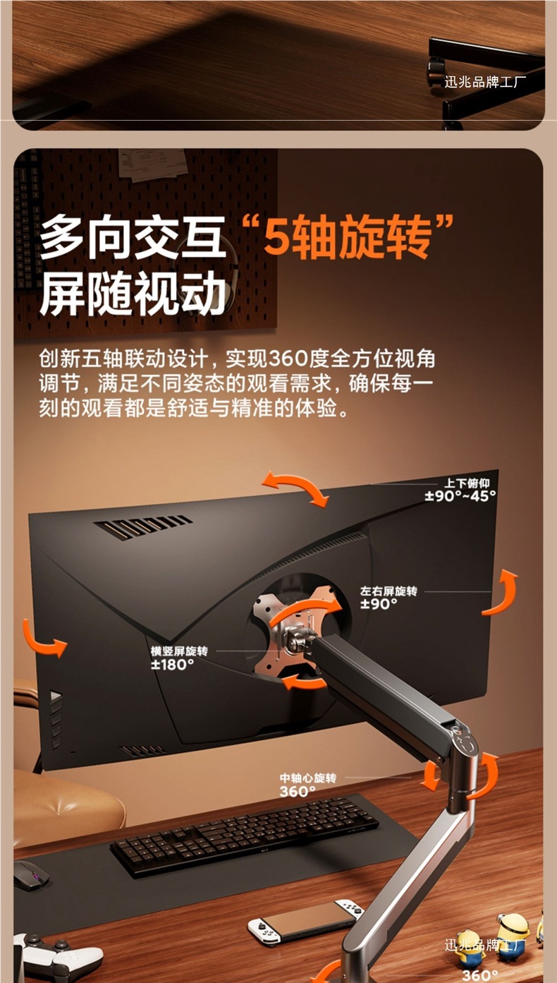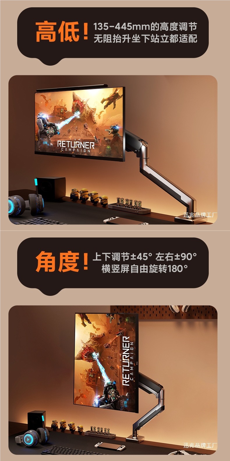컴퓨터 모니터 스탠드, 로봇 팔, 데스크탑 회전 스크린, 캔틸레버 베이스, 펀치 없는 듀얼 스크린 데스크탑 브래킷