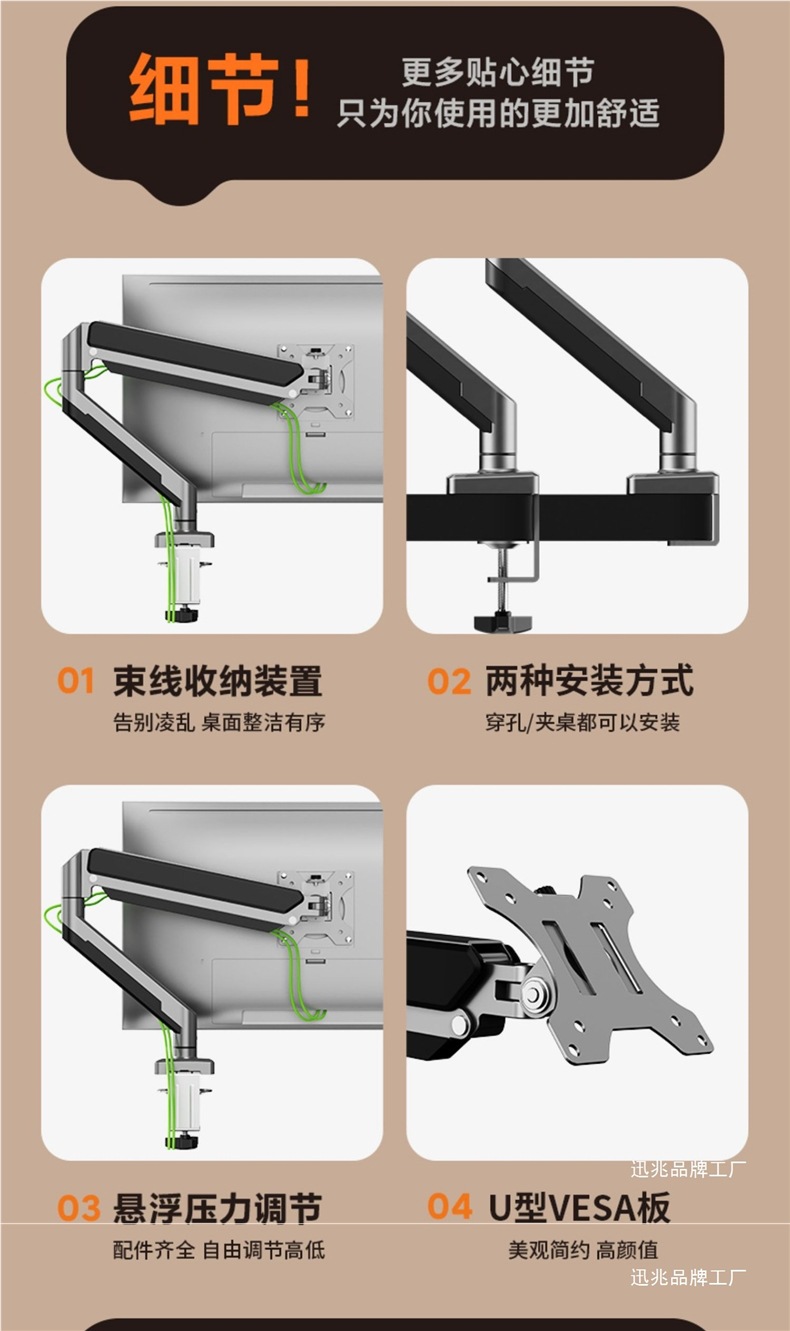 컴퓨터 모니터 스탠드, 로봇 팔, 데스크탑 회전 스크린, 캔틸레버 베이스, 펀치 없는 듀얼 스크린 데스크탑 브래킷스토어 가기