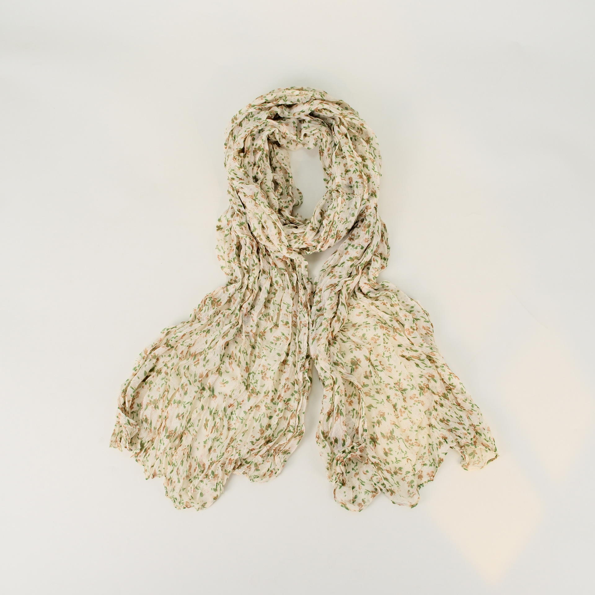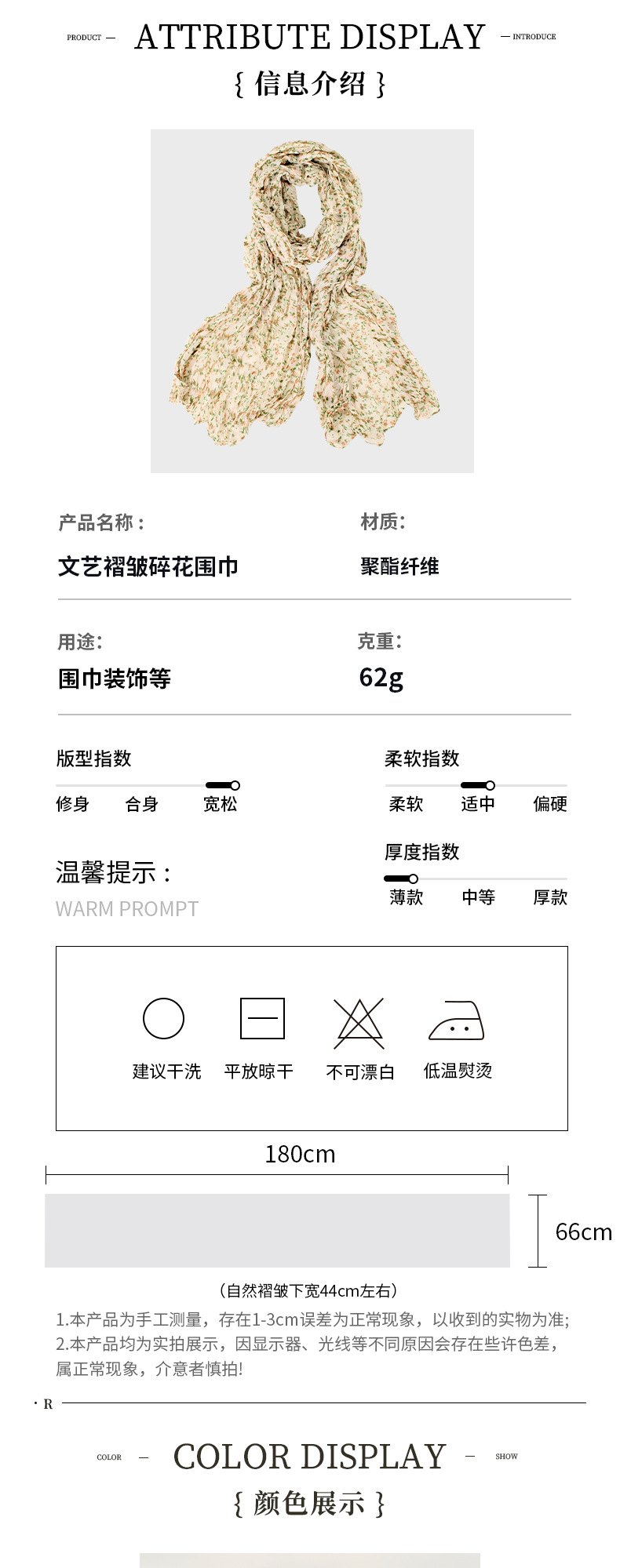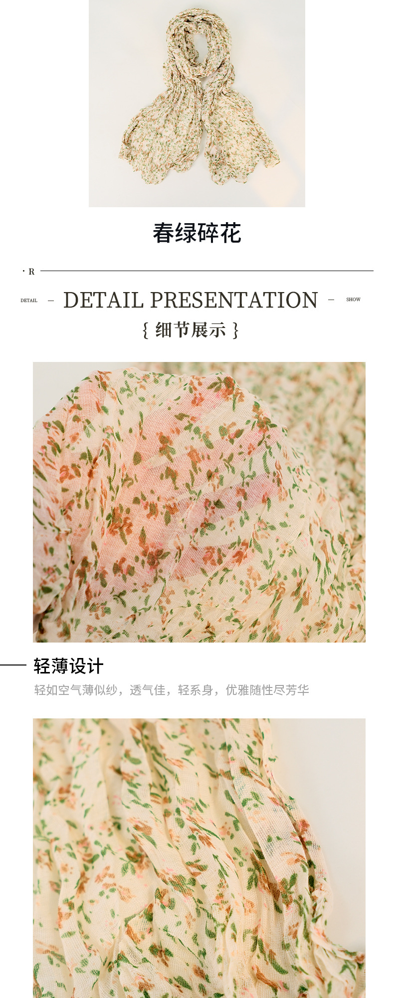 봄 새로운 작은 꽃 스카프 목가적 스타일 문학 복고풍 주름 모조 면 및 린넨 질감 인쇄 얇은 스카프 목도리