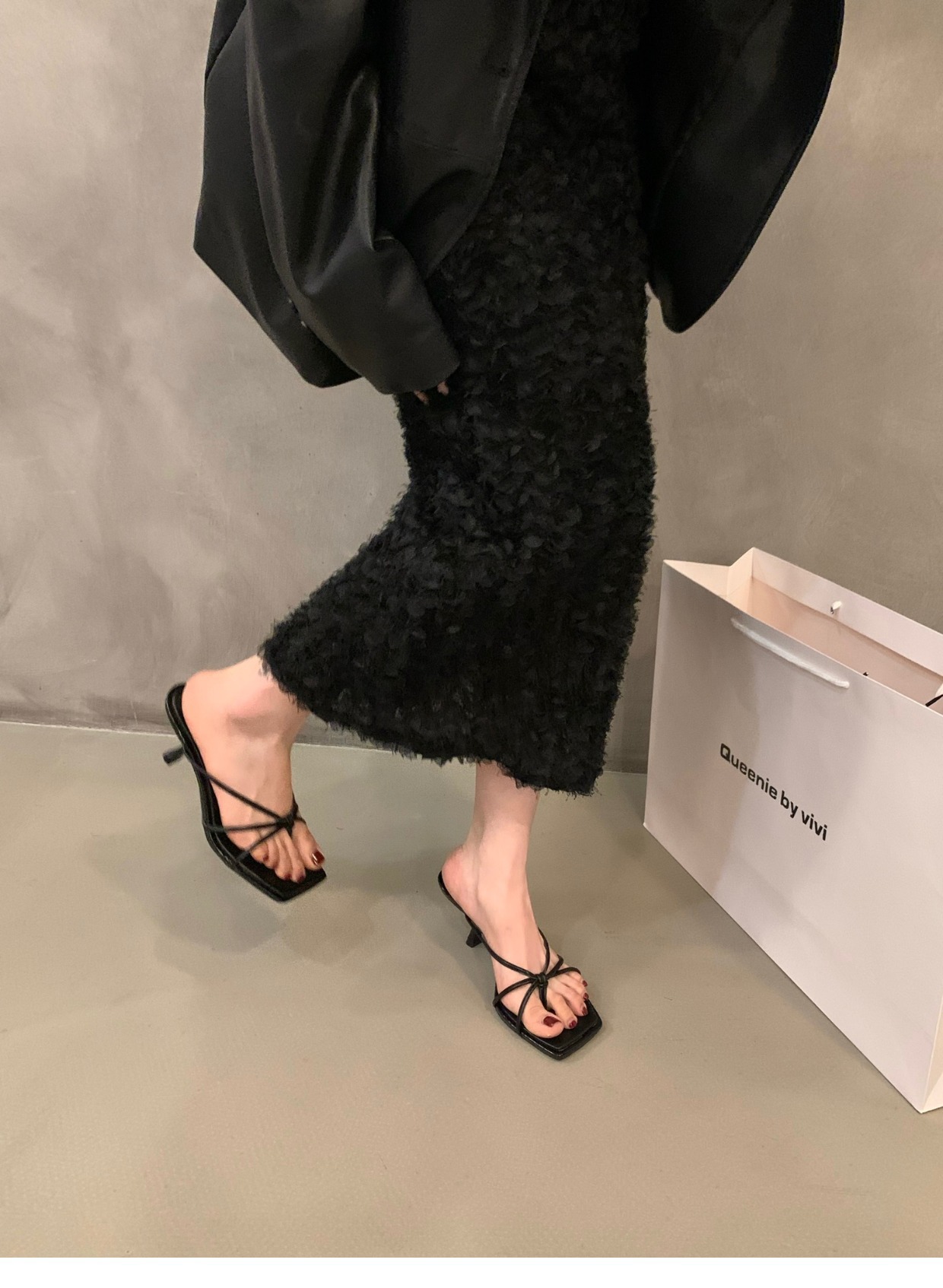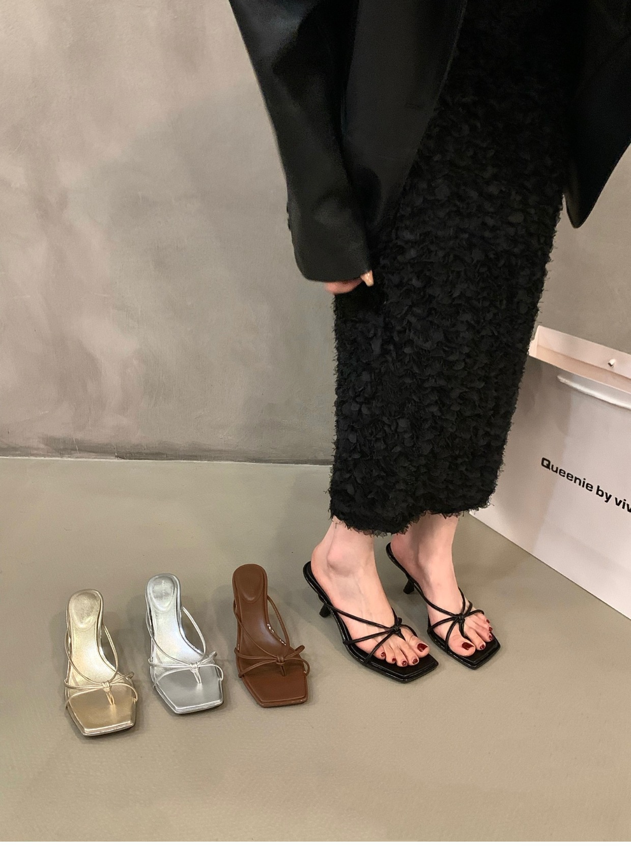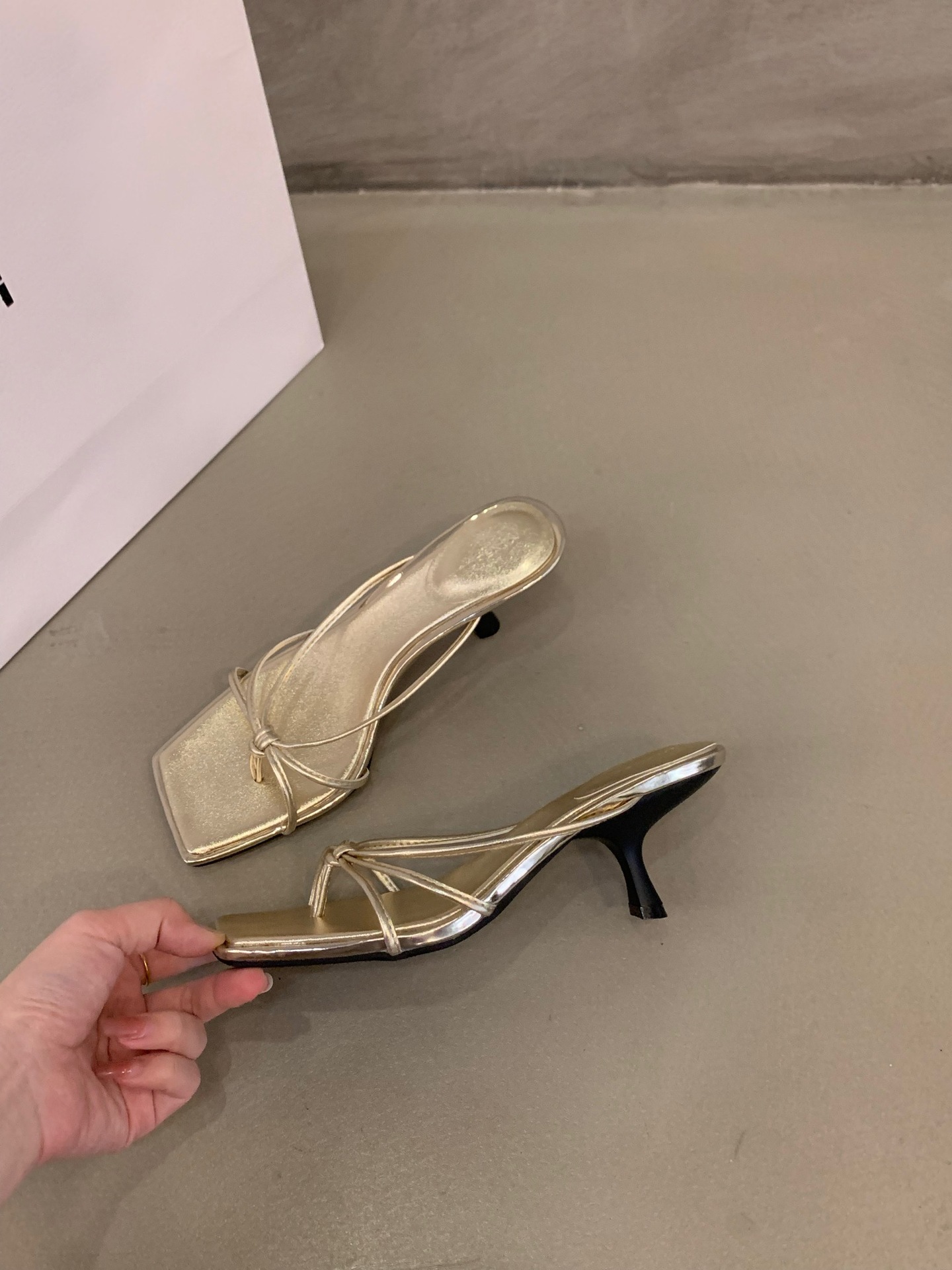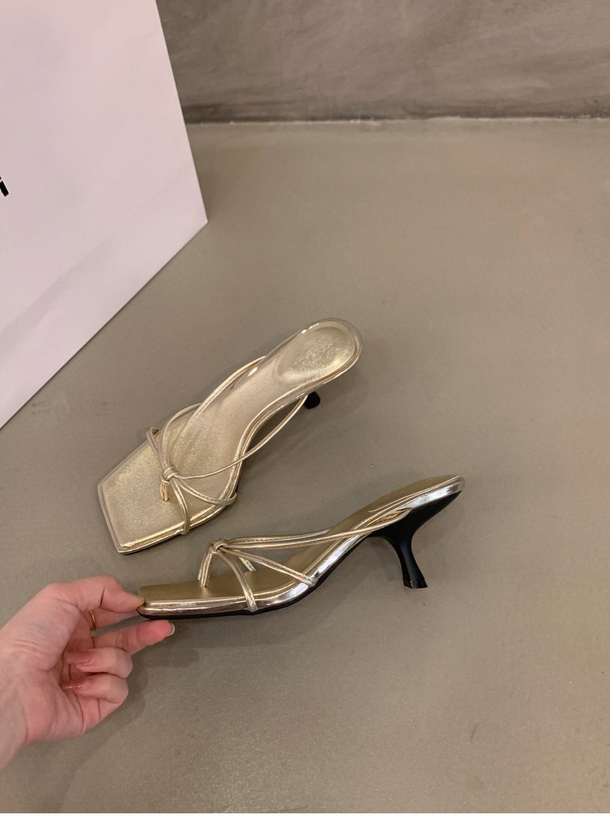 여성용 고급 얇은 스트랩 플립 플롭, 요정 스타일 아우터웨어 2025 신상 여름 프렌치 하이힐 샌들 골드스토어 가기
