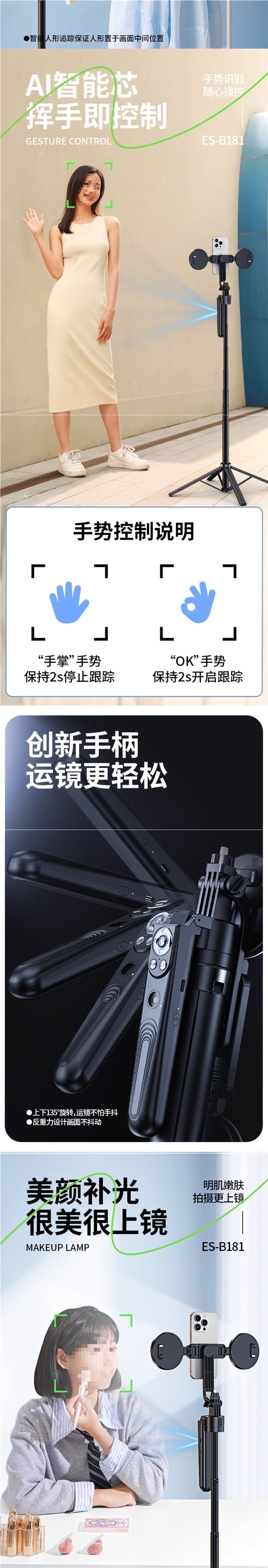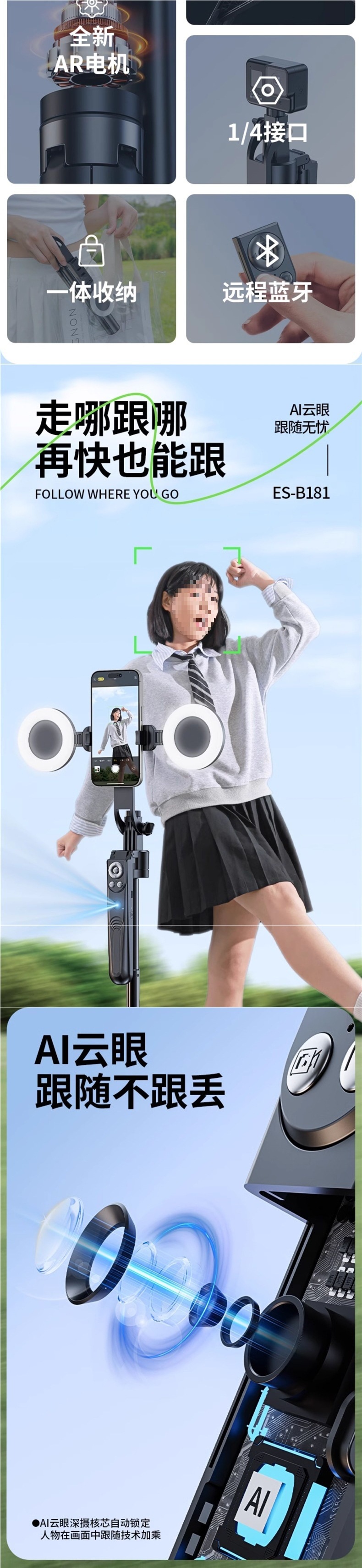 스마트 팔로우 카메라 짐벌 셀카봉 360도 회전 휴대폰 셀카 콘서트 촬영 신형 범용 자동 인공지능