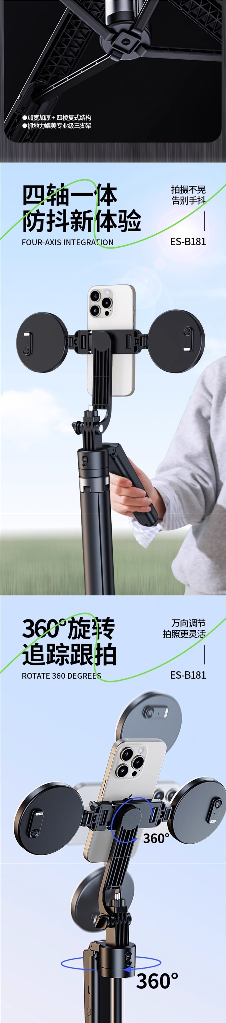 • 블랙 1.8m [AI 지능형 얼굴 추적 + Douyin 리모콘] 흔들림 방지 4축 + 보관 가방