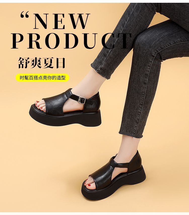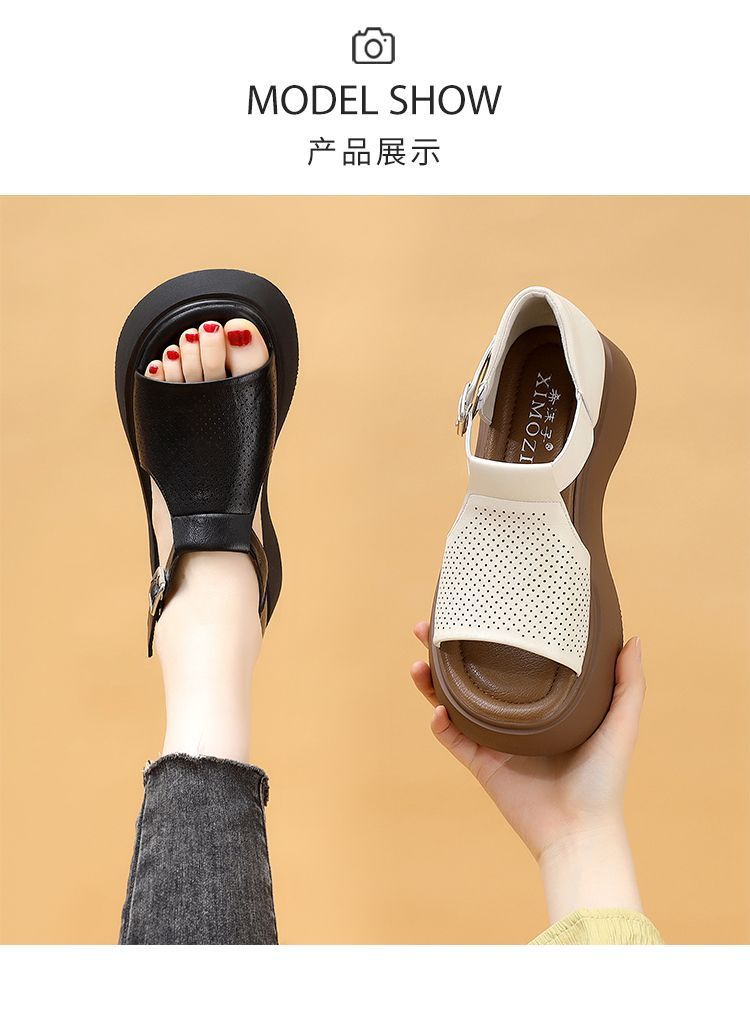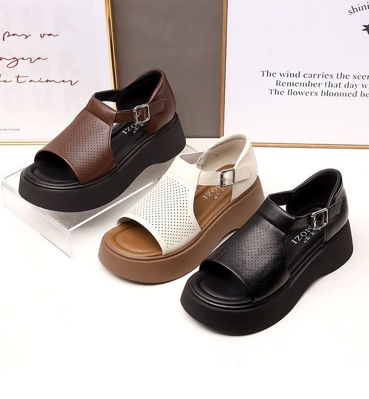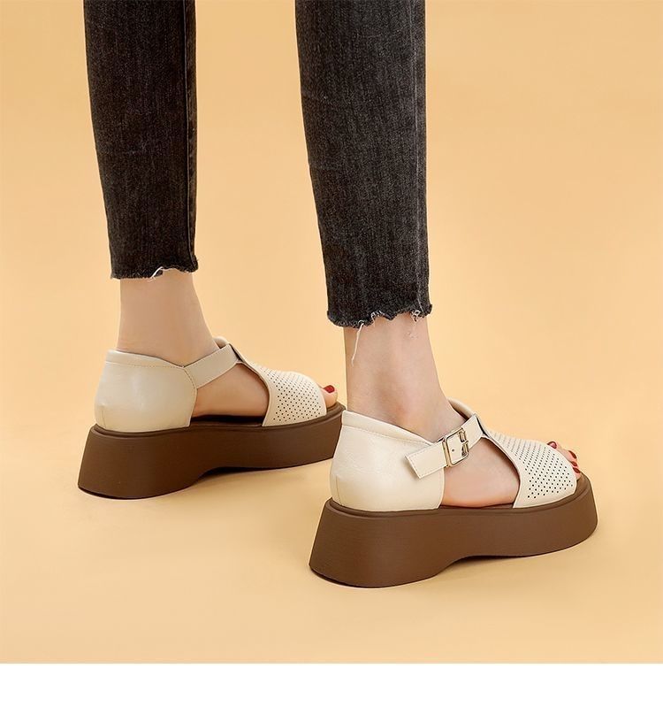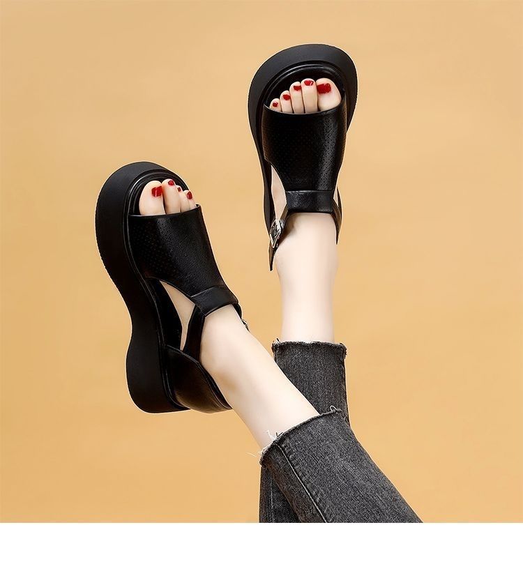 여성을위한 힐 메쉬 통기성 샌들 2025 새로운 여름 캐주얼 다목적 패션 두꺼운 밑창 부드러운 밑창 로마 신발스토어 가기