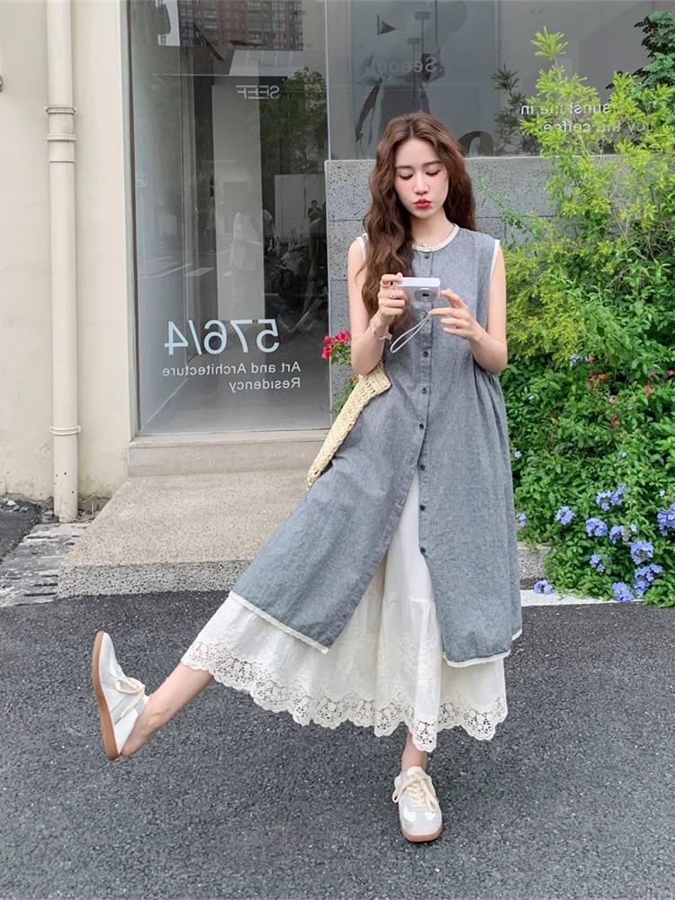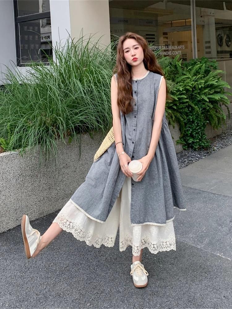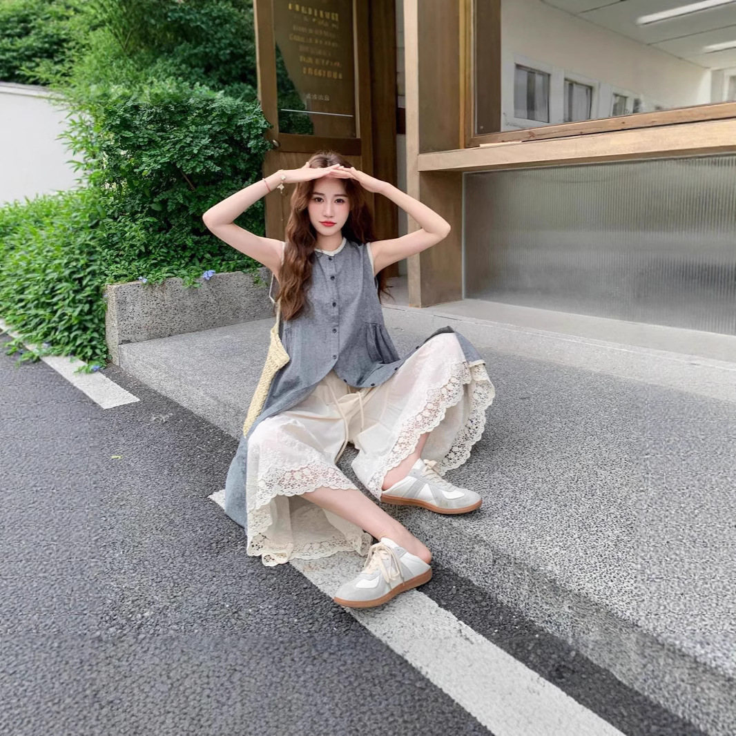여름 여성용 분위기 있는 조끼 드레스 슈트, 멋스럽고 우아한 레이스 와이드 팬츠 투피스 세트스토어 가기