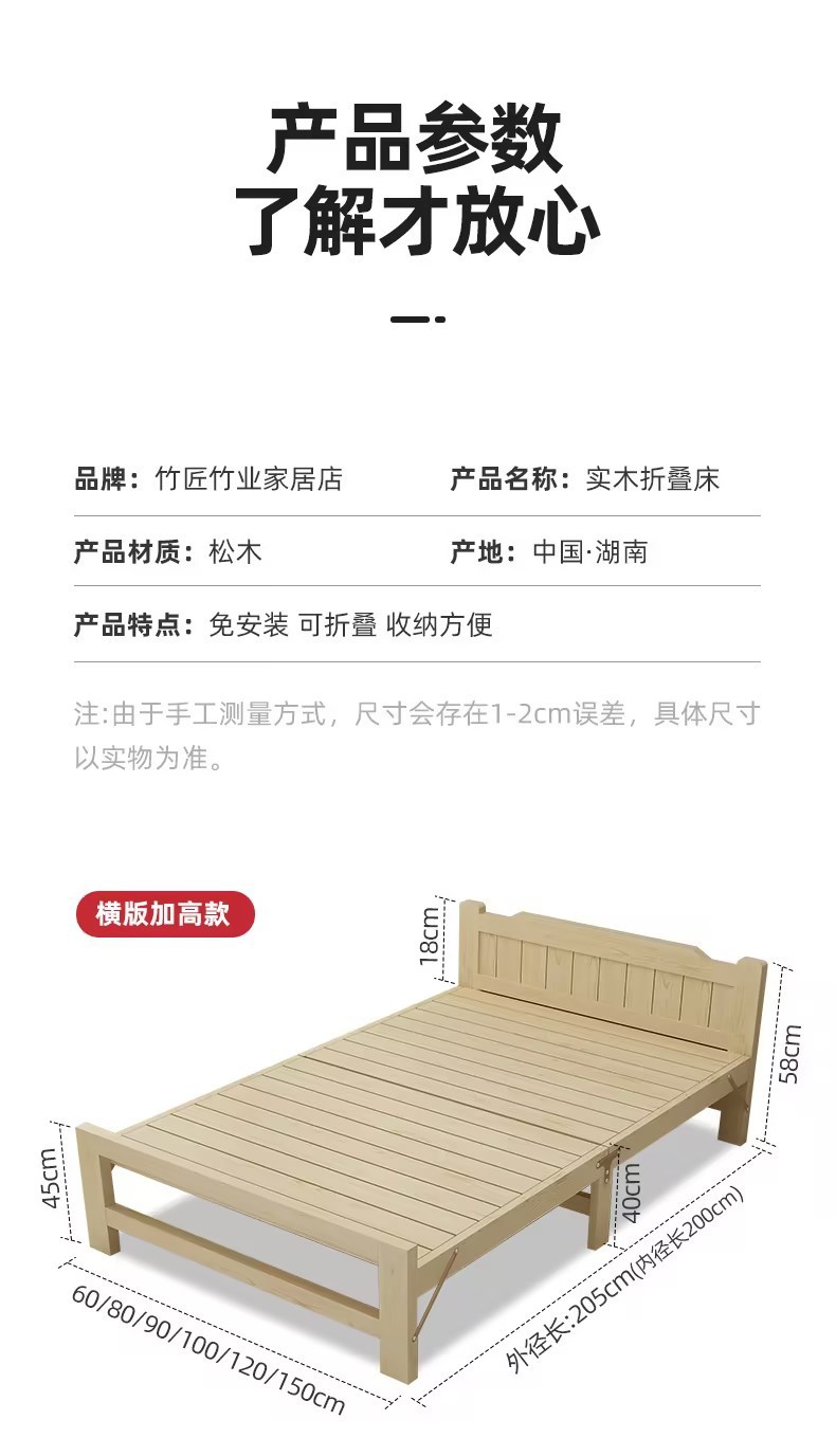 Py 접이식 침대 낮잠 싱글 침대 1.5m 성인 간이 가정용 단단한 나무 하드 보드 낮잠 더블 임대 1.1m 소형스토어 가기