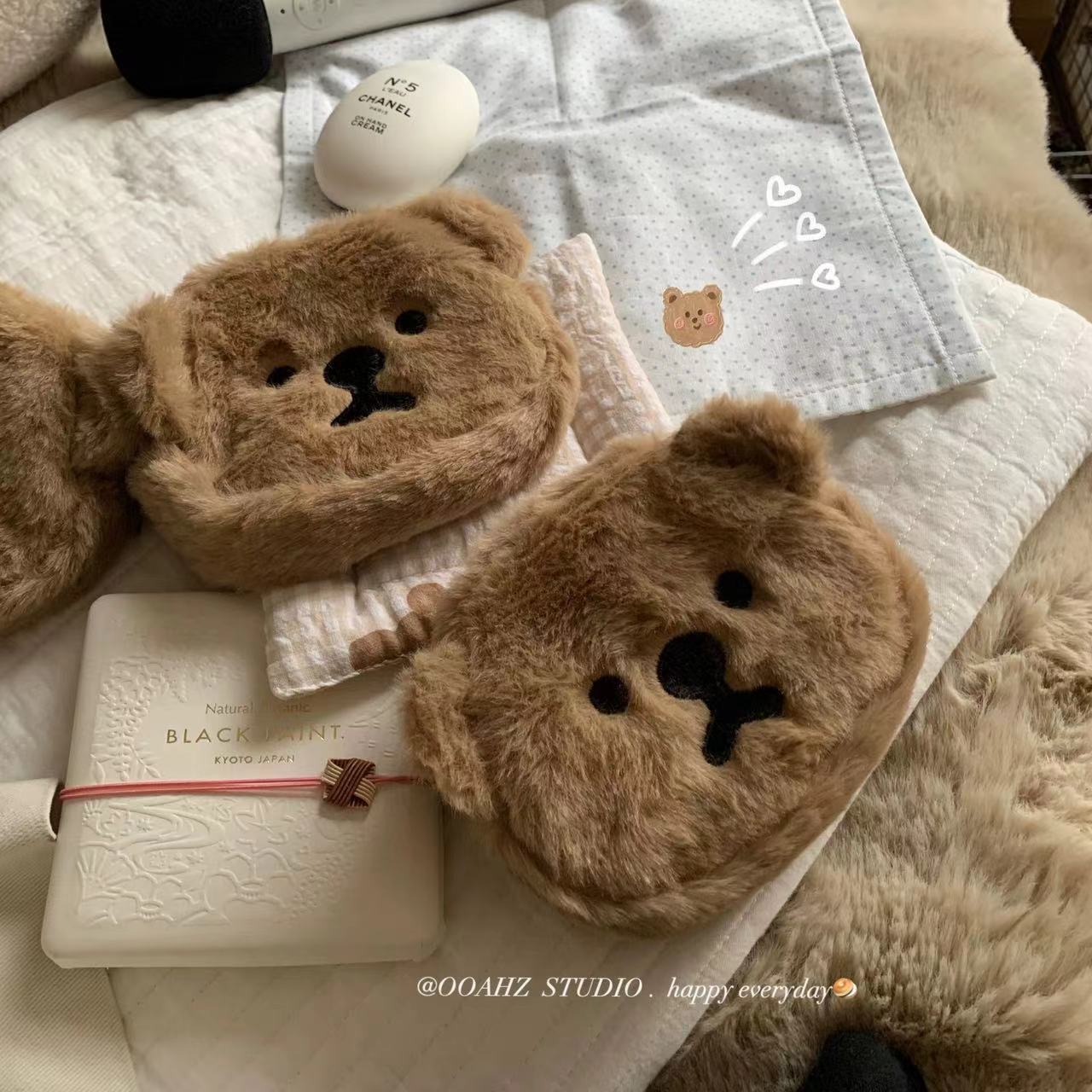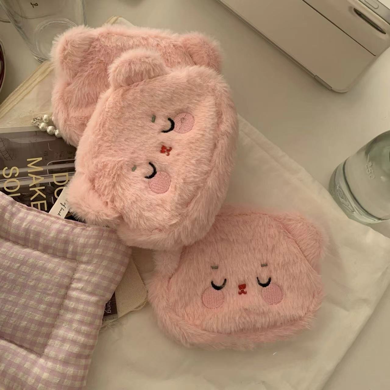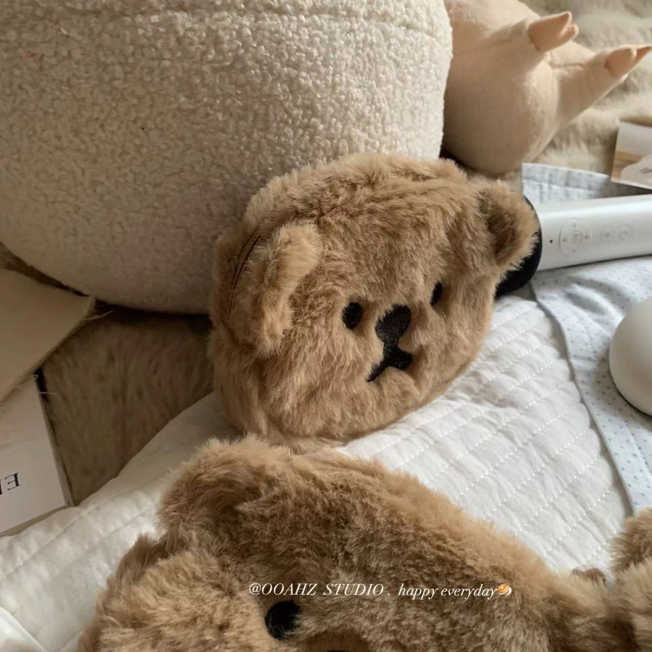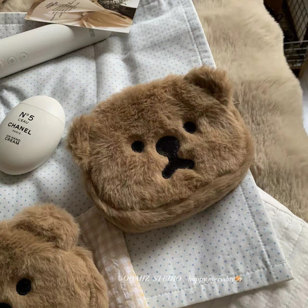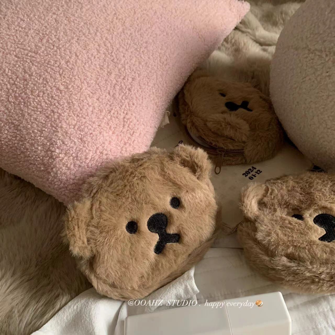 여성용 귀여운 봉제 곰 동전 지갑, 휴대용 화장품 보관 가방, 립스틱 가방, 헤드폰 가방, 카드 가방, 동전 지갑