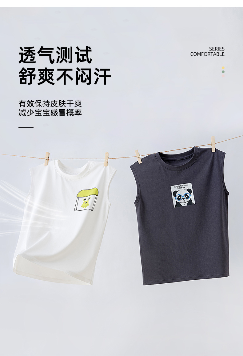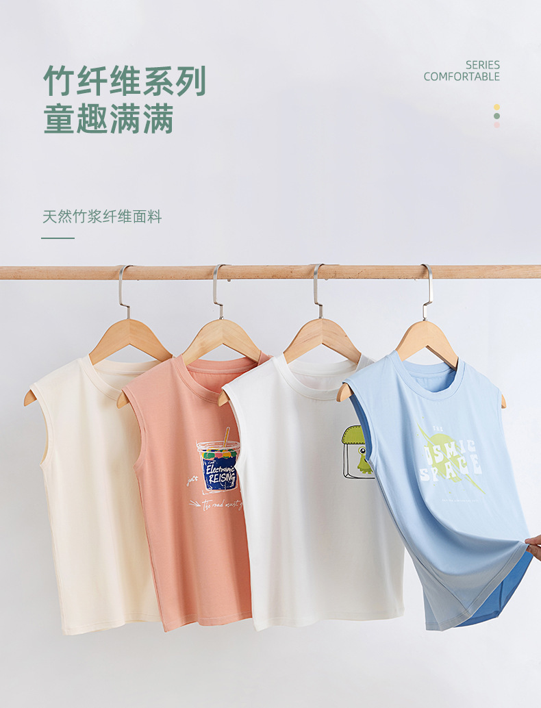 소년 조끼 여름 얇은 만화 소년 클래스 a 항균 민소매 티셔츠 대나무 섬유 시원한 겉옷 스포츠 탑