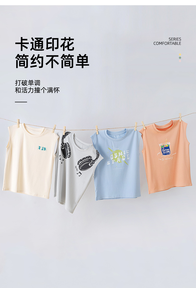 소년 조끼 여름 얇은 만화 소년 클래스 a 항균 민소매 티셔츠 대나무 섬유 시원한 겉옷 스포츠 탑스토어 가기