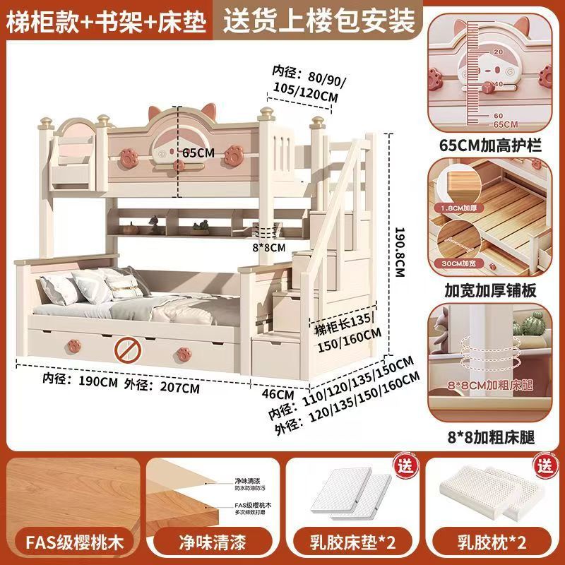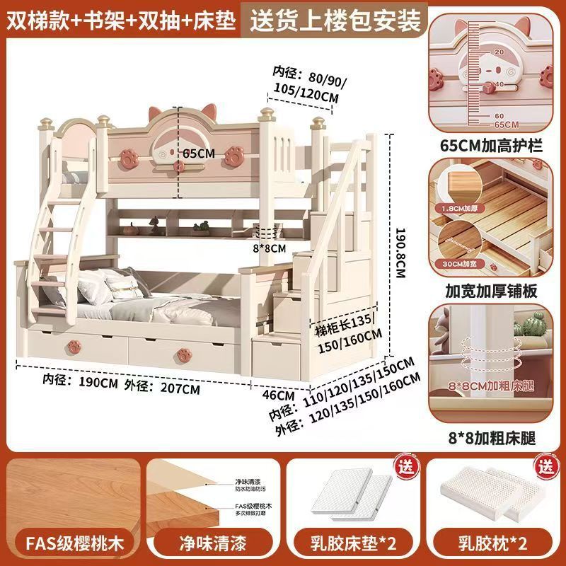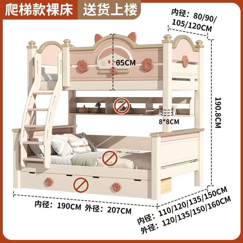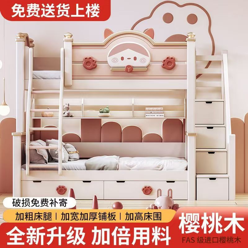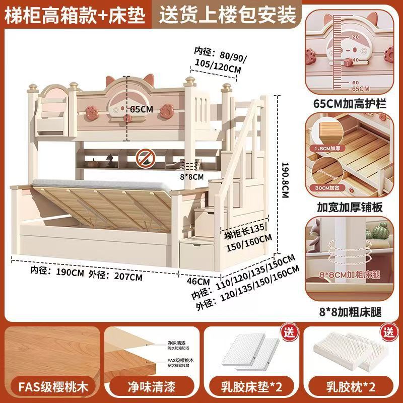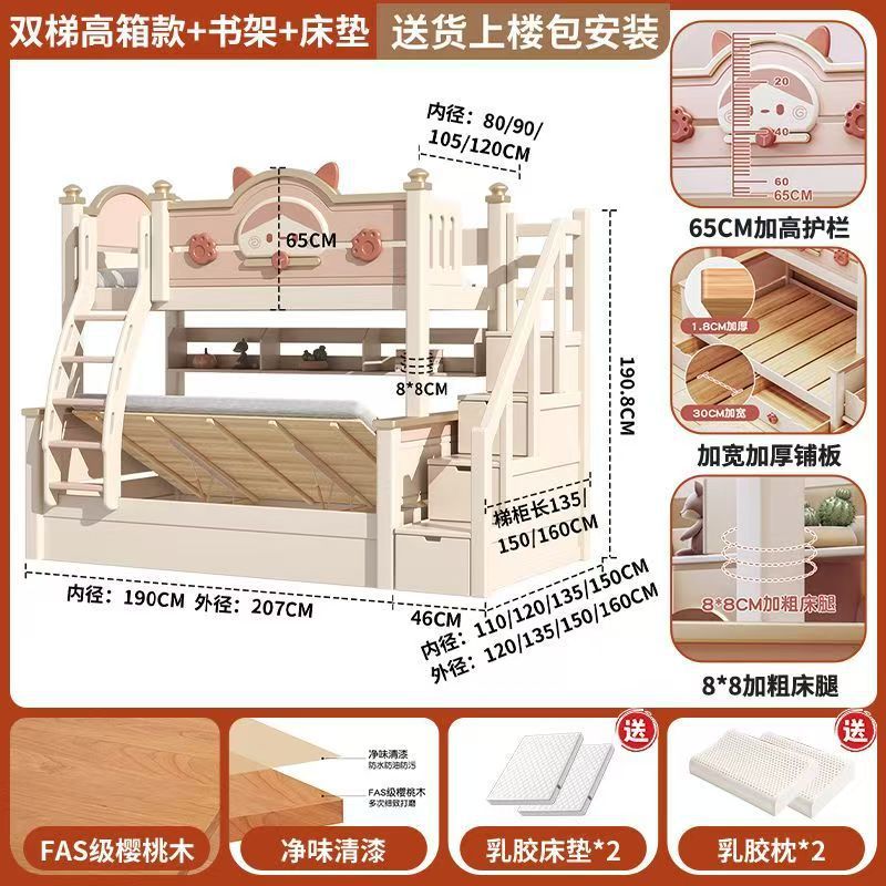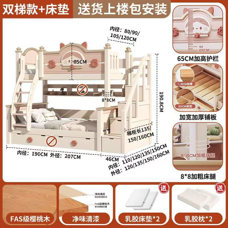단단한 나무 이층 침대 다기능 높고 낮은 어머니와 아이의 2층 공주 작은 아파트 어린이 침대 소녀 이층 침대