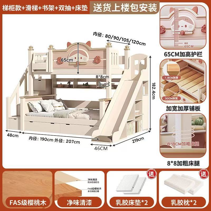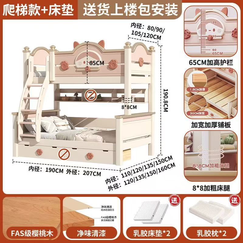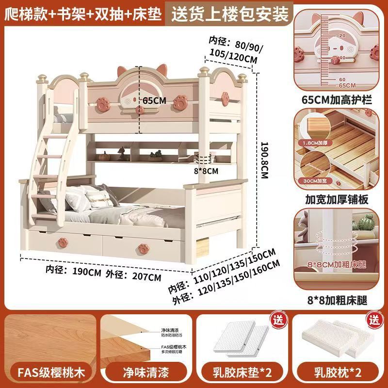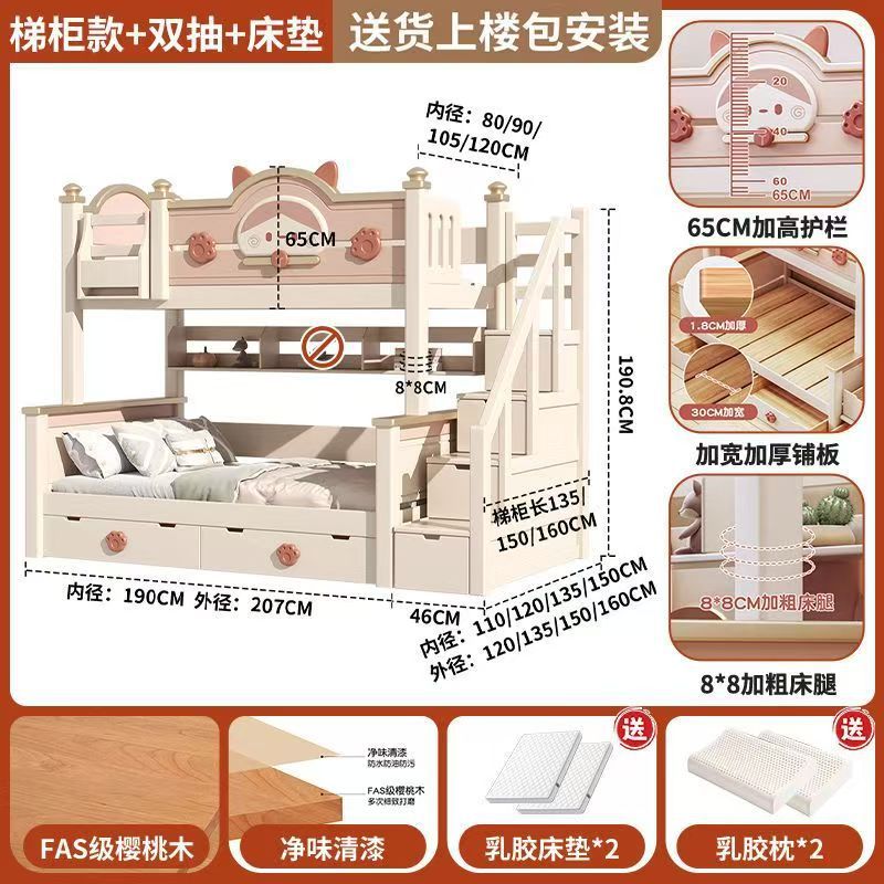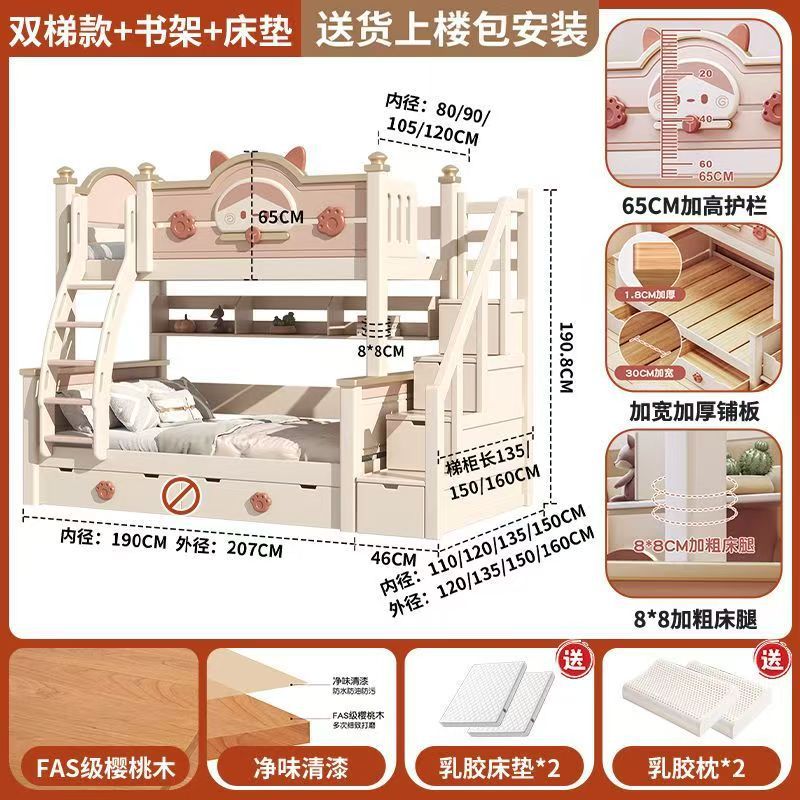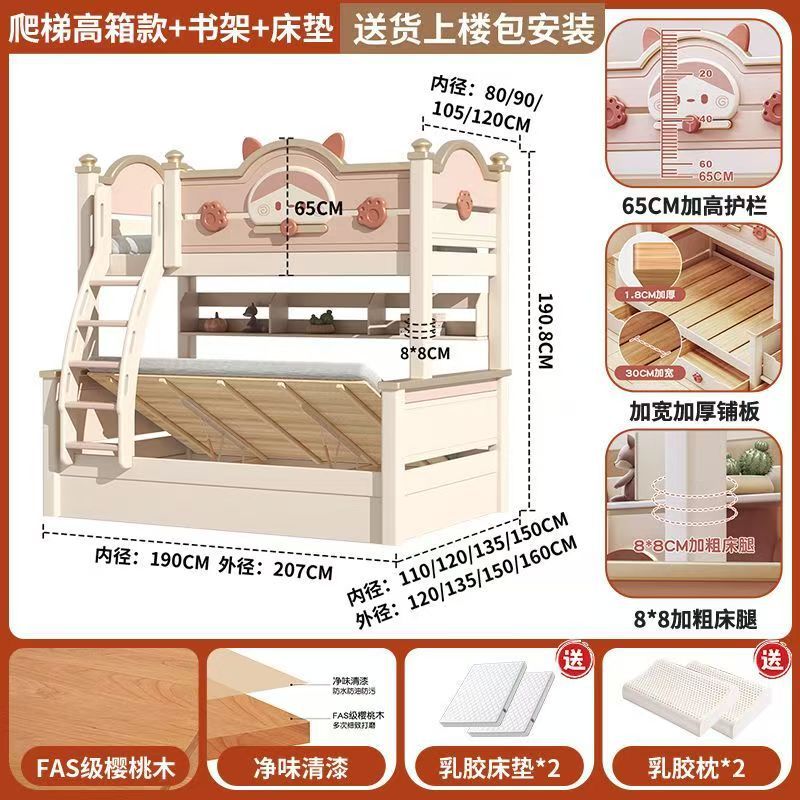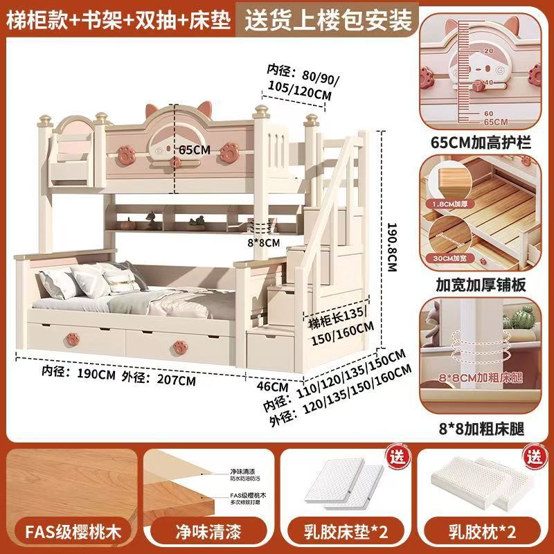 단단한 나무 이층 침대 다기능 높고 낮은 어머니와 아이의 2층 공주 작은 아파트 어린이 침대 소녀 이층 침대