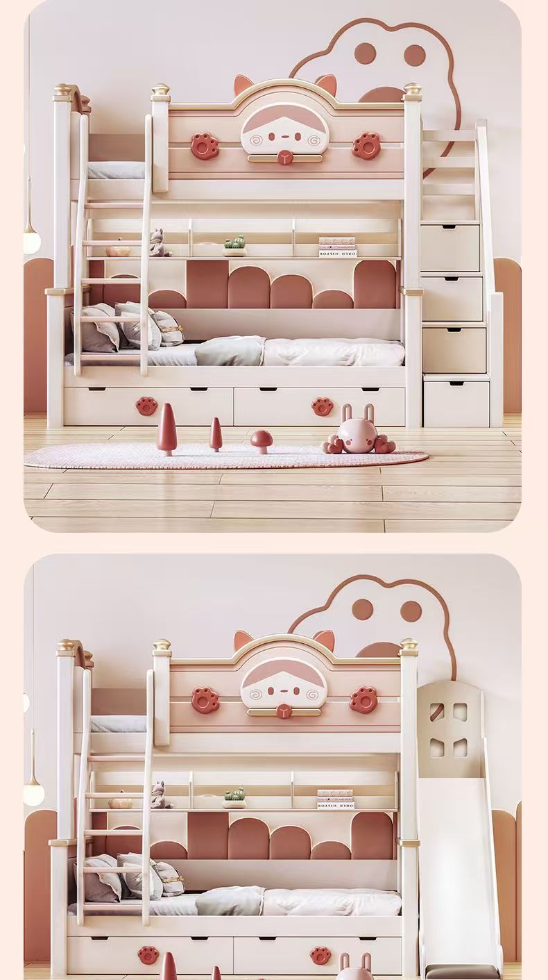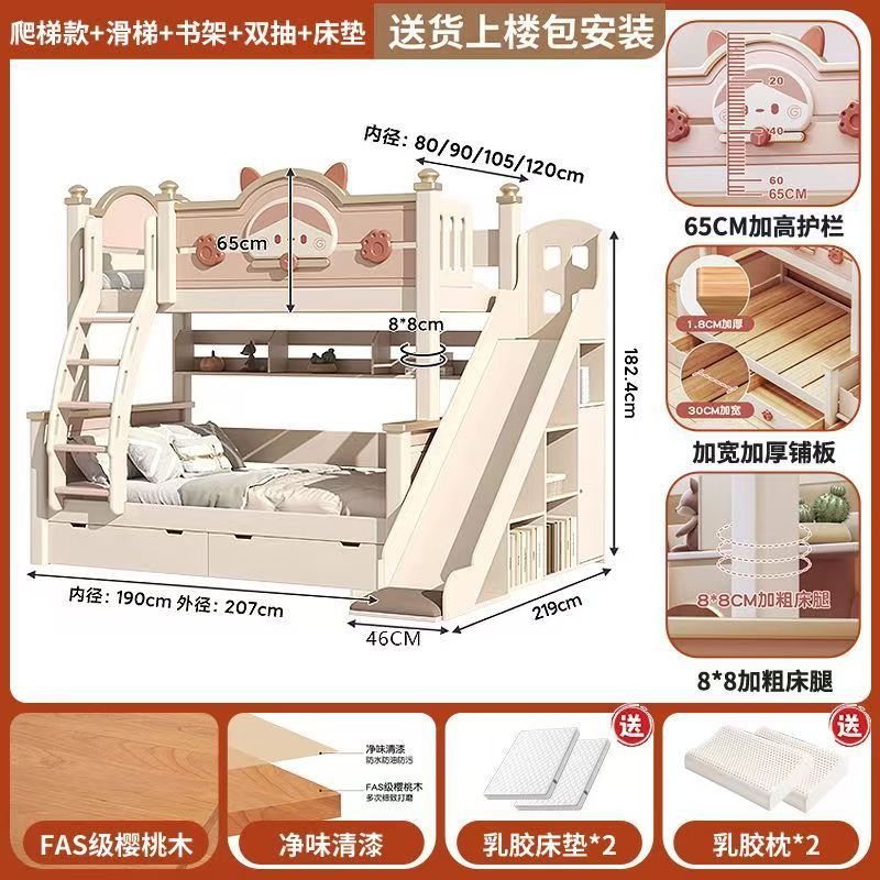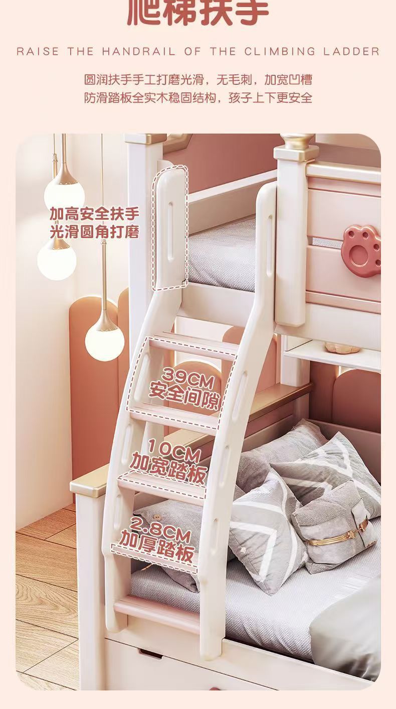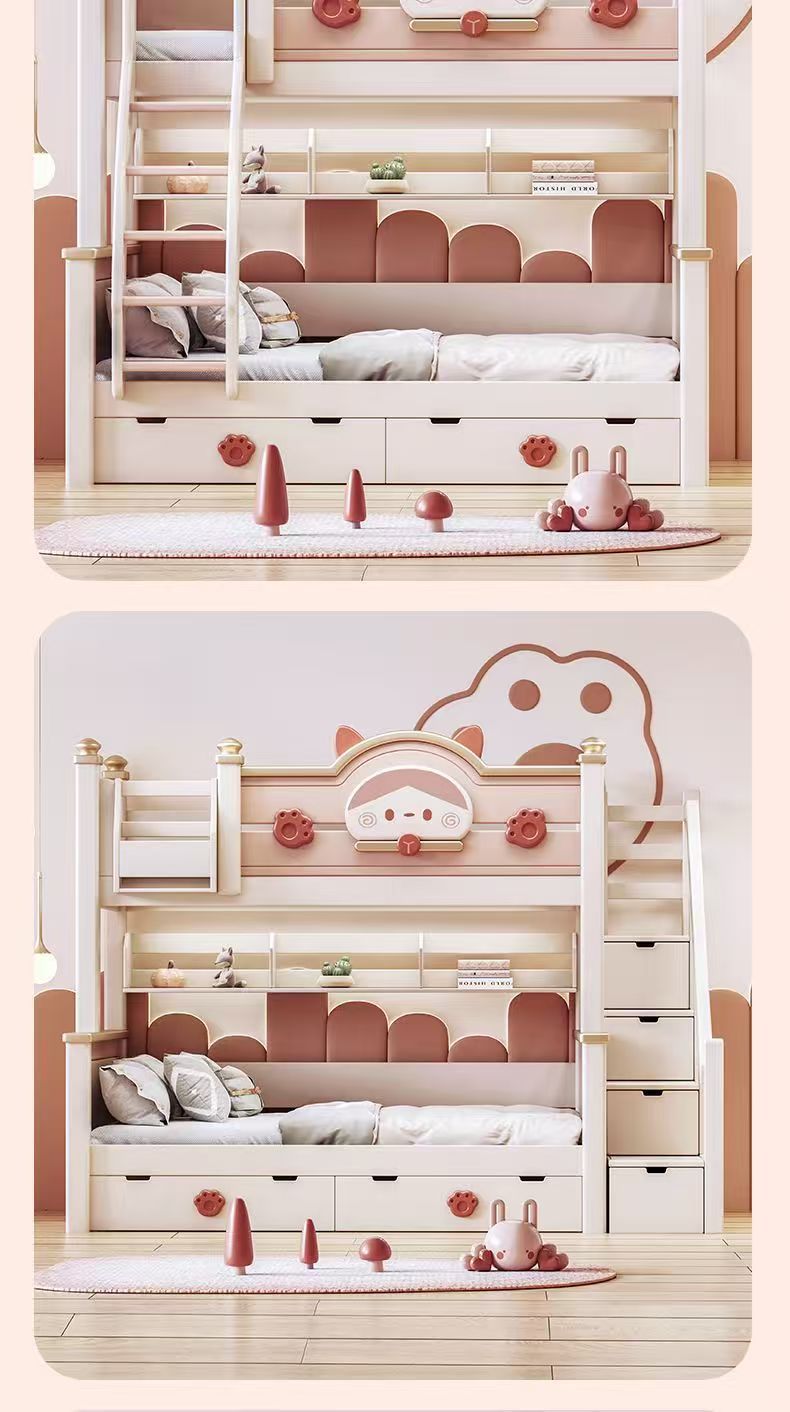 단단한 나무 이층 침대 다기능 높고 낮은 어머니와 아이의 2층 공주 작은 아파트 어린이 침대 소녀 이층 침대