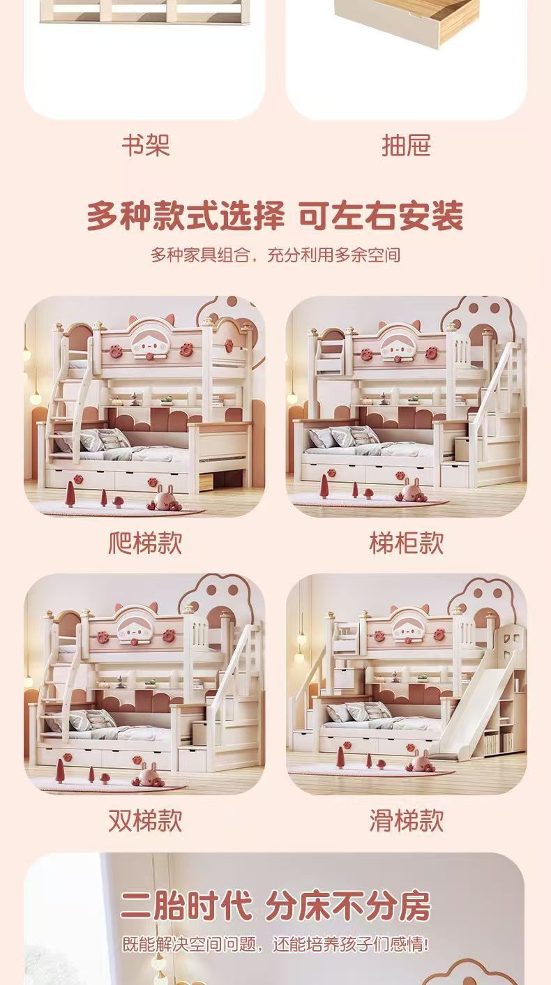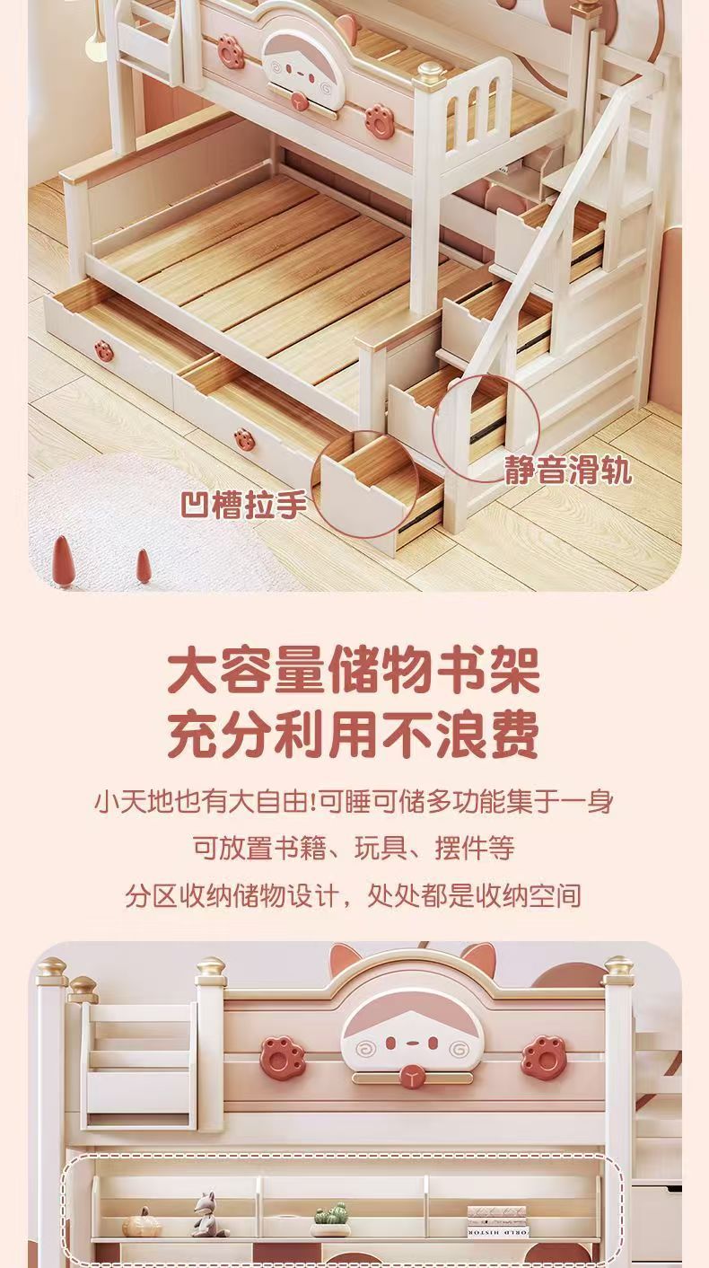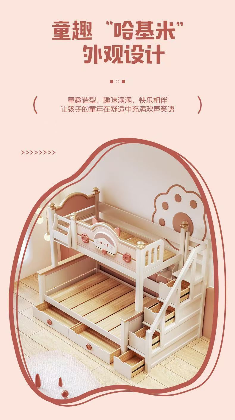 단단한 나무 이층 침대 다기능 높고 낮은 어머니와 아이의 2층 공주 작은 아파트 어린이 침대 소녀 이층 침대스토어 가기