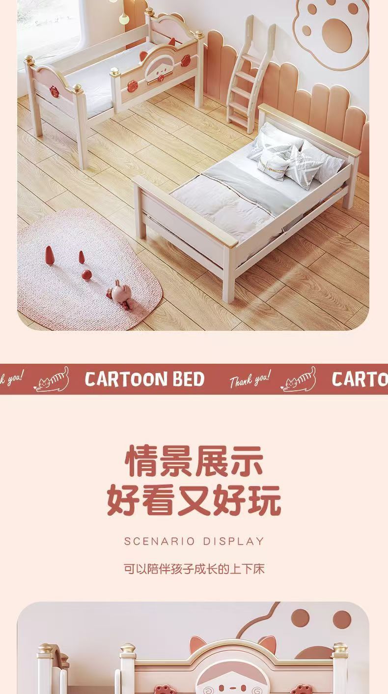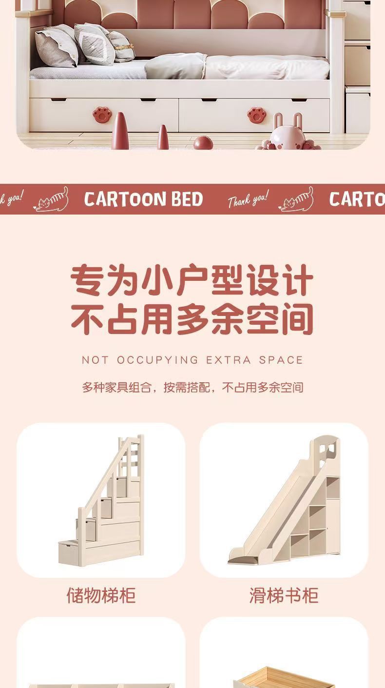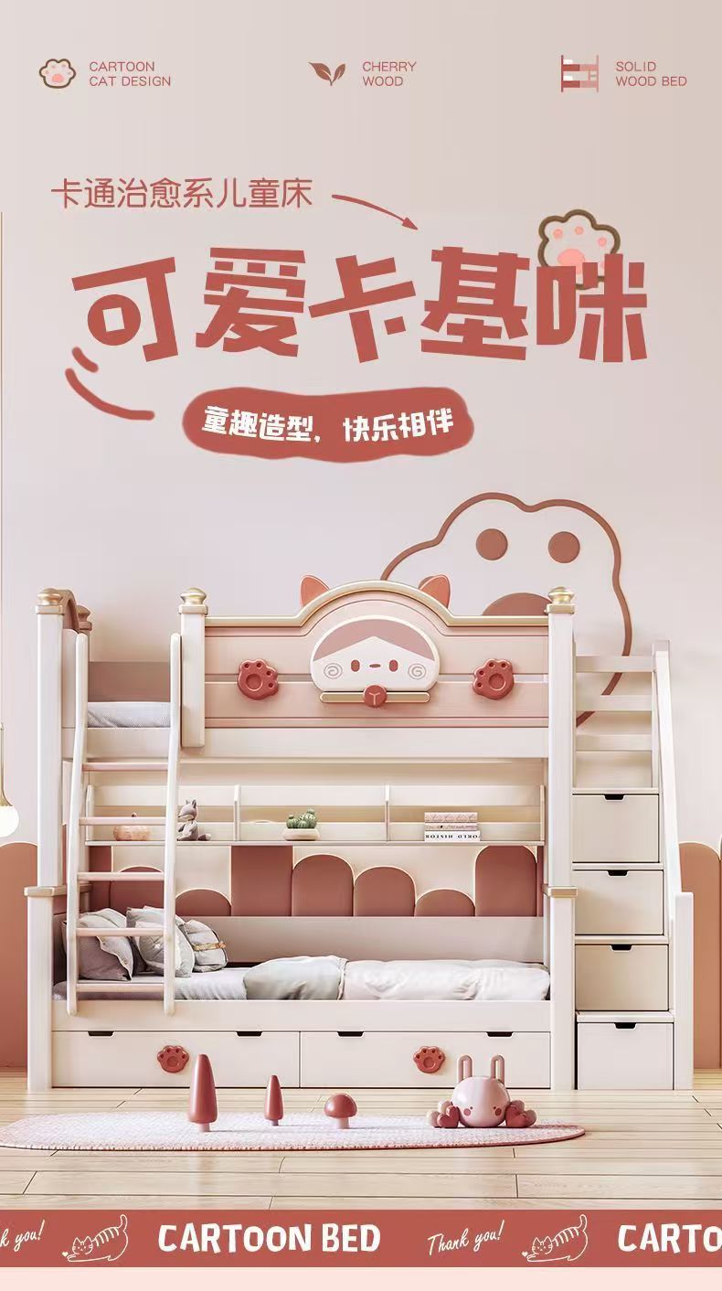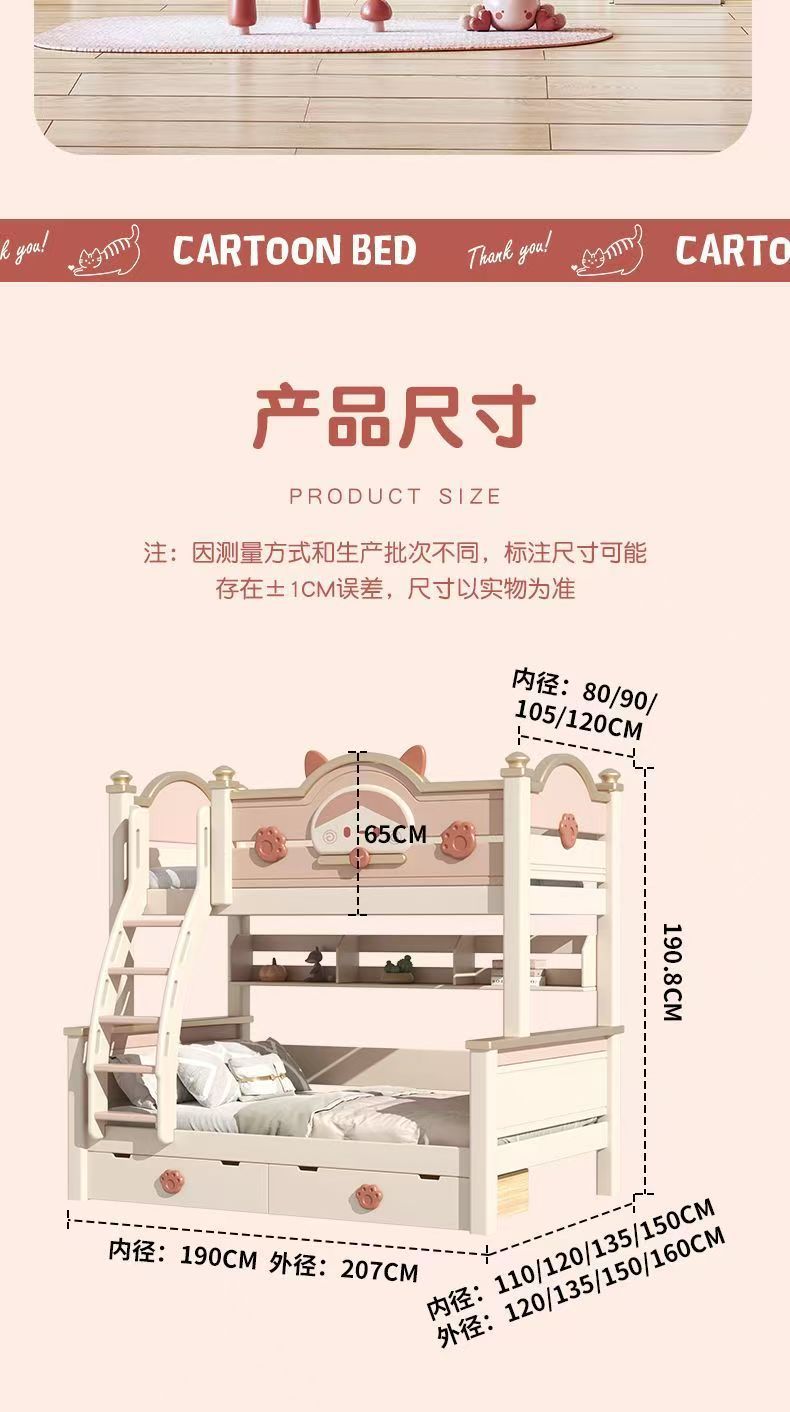단단한 나무 이층 침대 다기능 높고 낮은 어머니와 아이의 2층 공주 작은 아파트 어린이 침대 소녀 이층 침대스토어 가기