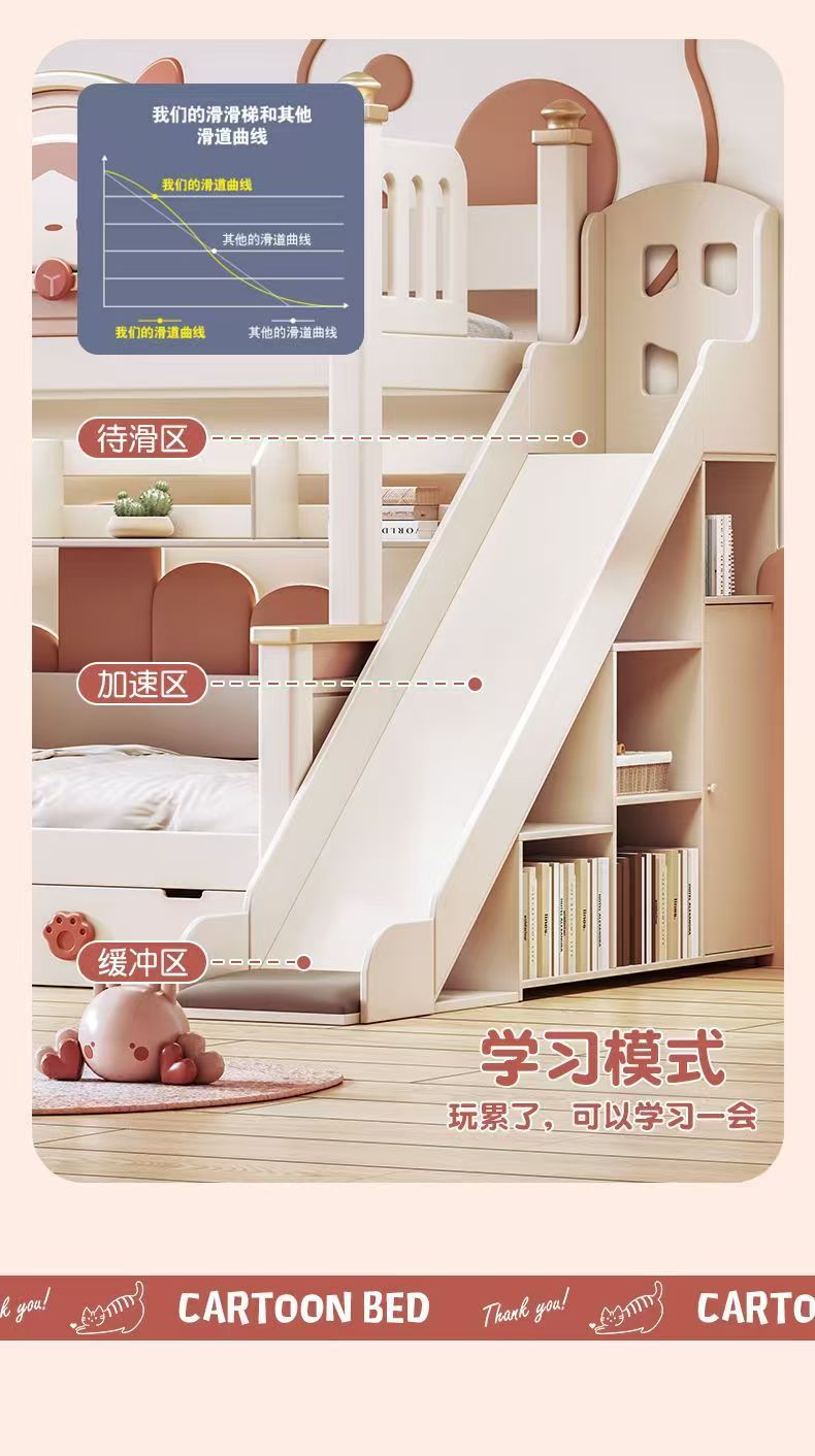 • 사다리 + 미끄럼틀 + 책장 + 더블서랍 + 6cm 매트리스*2