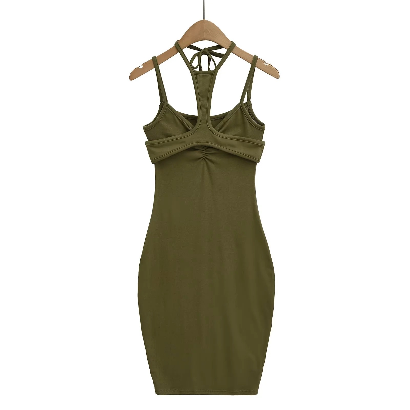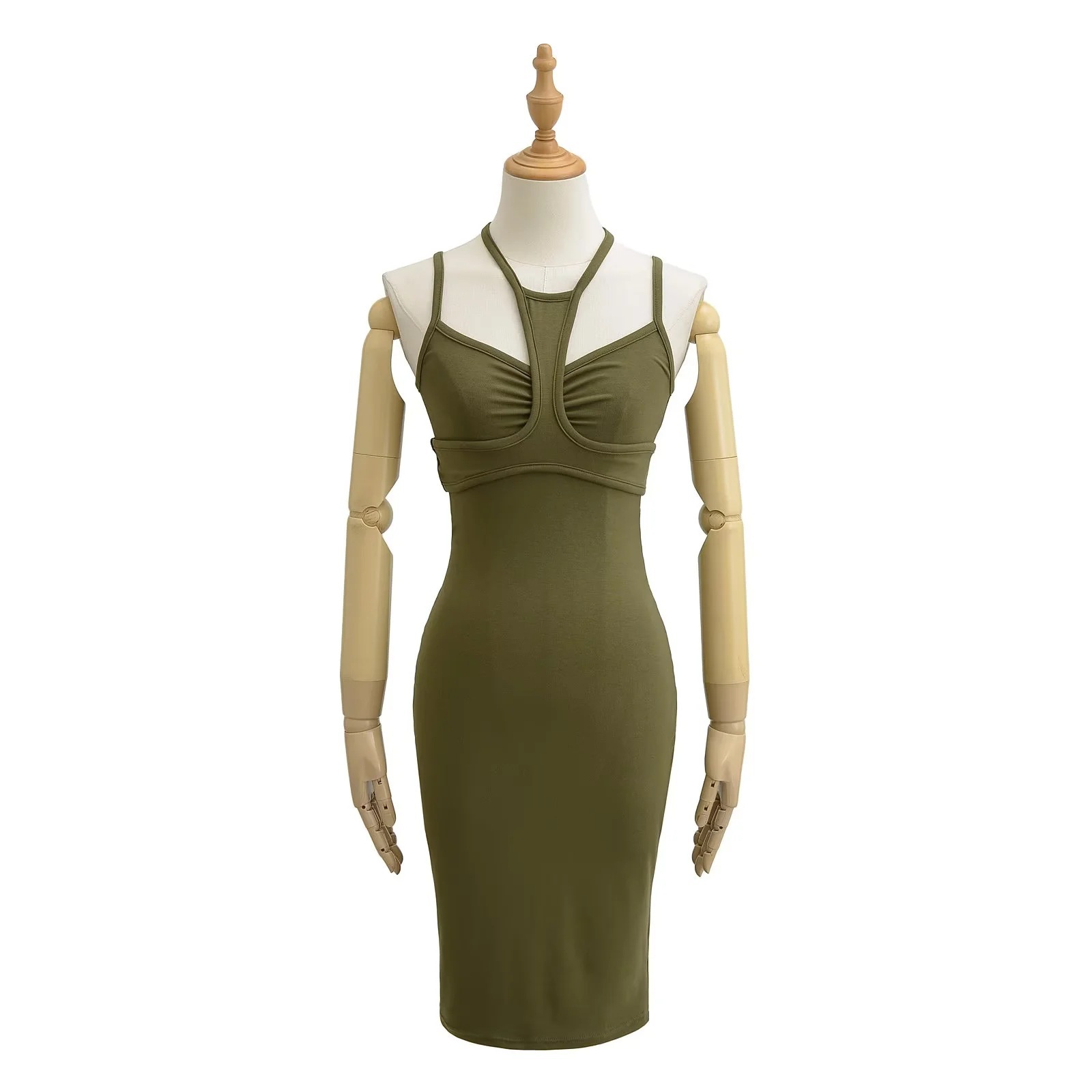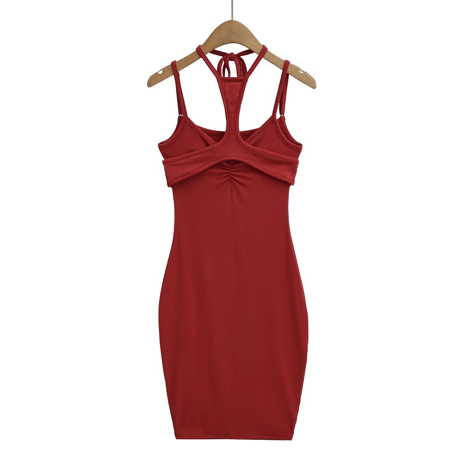 2025년 신상 슬림핏 서스펜더 드레스 여성용 레이스업 홀터넥 투피스 세트 순수한 욕망과 연령 감소를 위한 완벽한 의상 세트