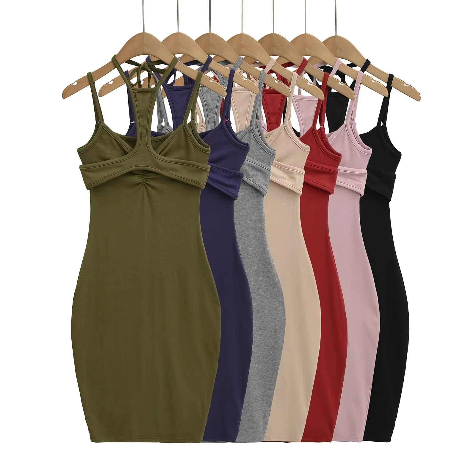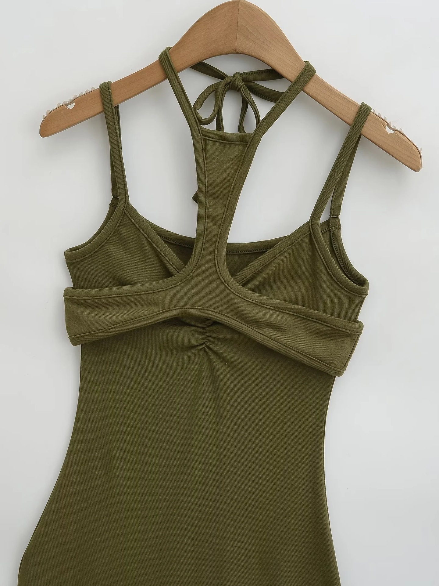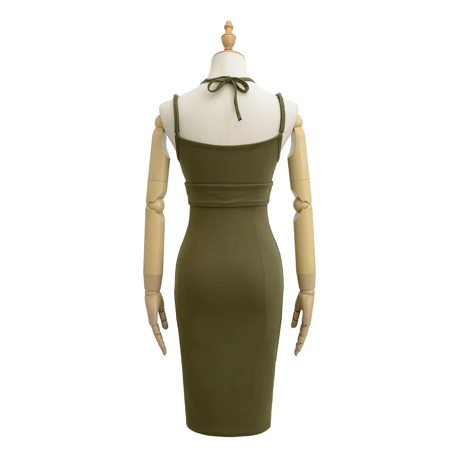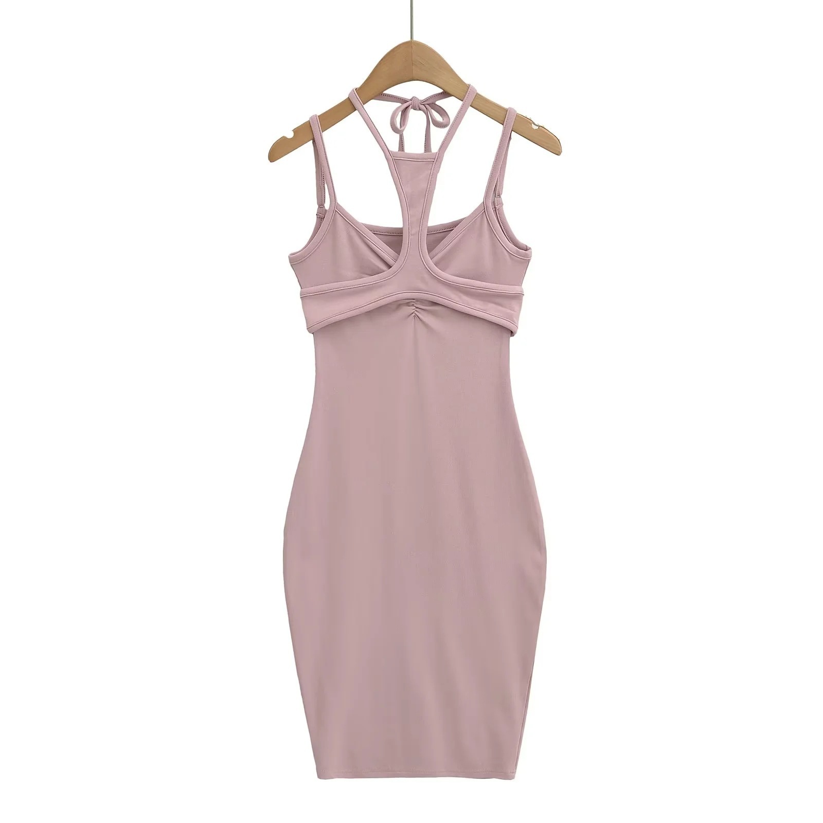 2025년 신상 슬림핏 서스펜더 드레스 여성용 레이스업 홀터넥 투피스 세트 순수한 욕망과 연령 감소를 위한 완벽한 의상 세트