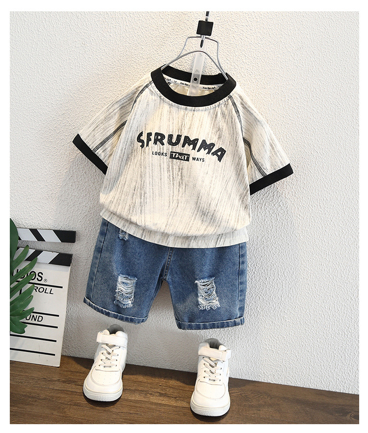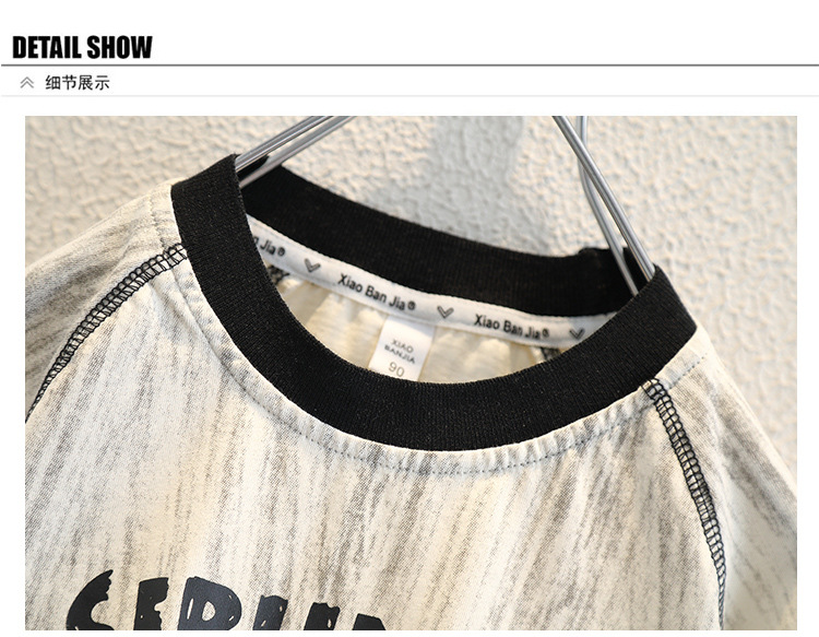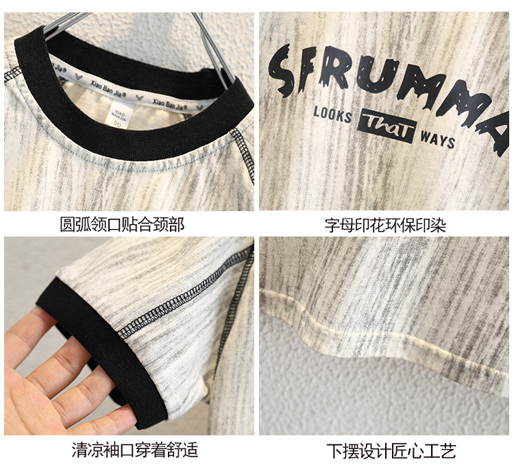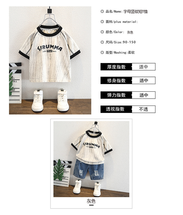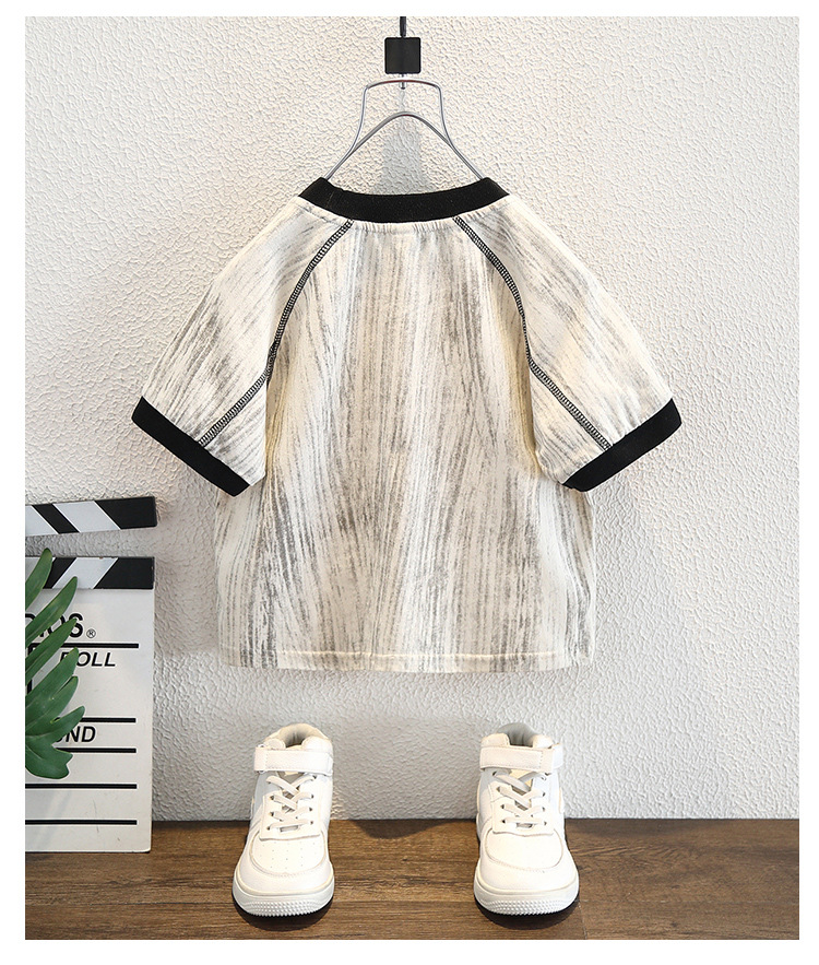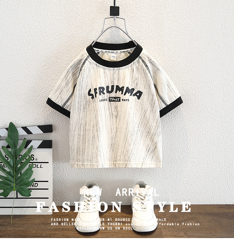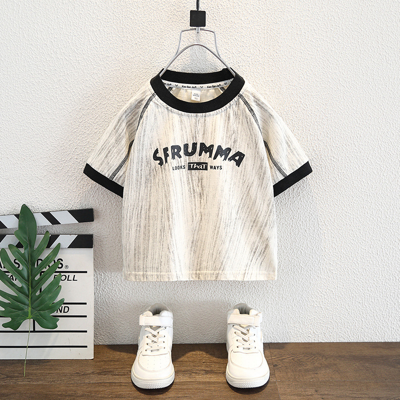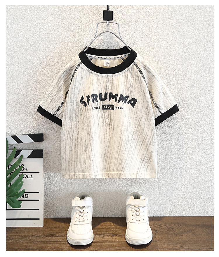8266 소년 여름 얇은 반팔 티셔츠 2025 아동용 라운드 넥 탑 중대형 아동 스타일 컬러 블록 트렌디 티셔츠스토어 가기