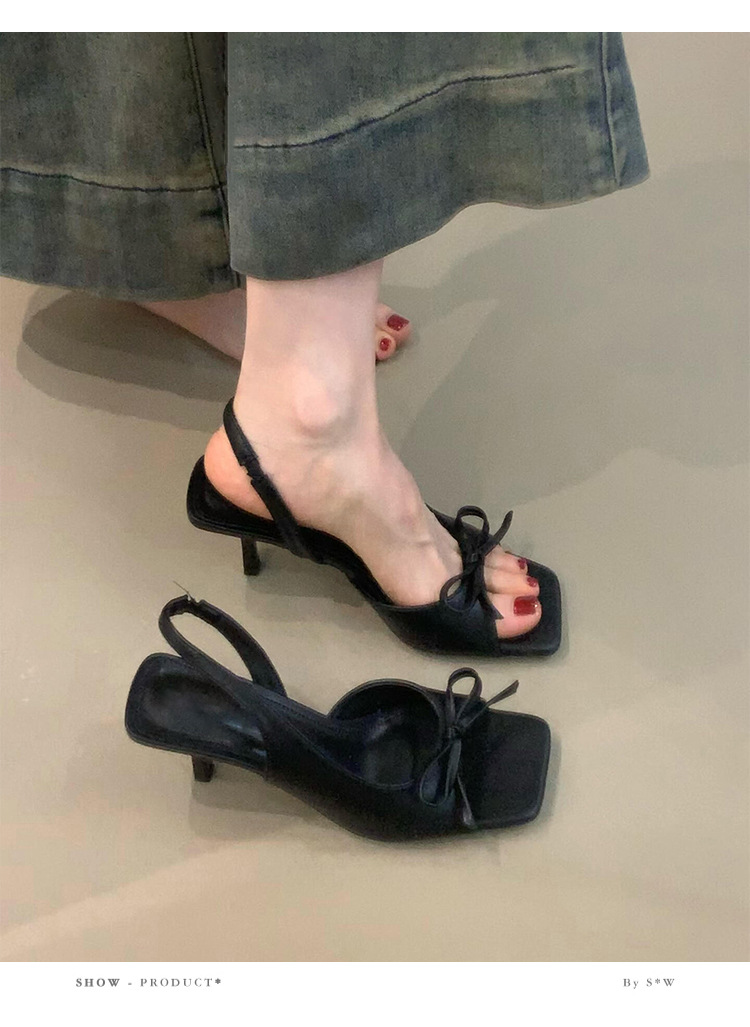 2025년 신상 여름 스타일 리본 백 스트랩 꽃무늬 아우터 원 스트랩 오픈 토 스퀘어 토 하이힐 샌들 여성용