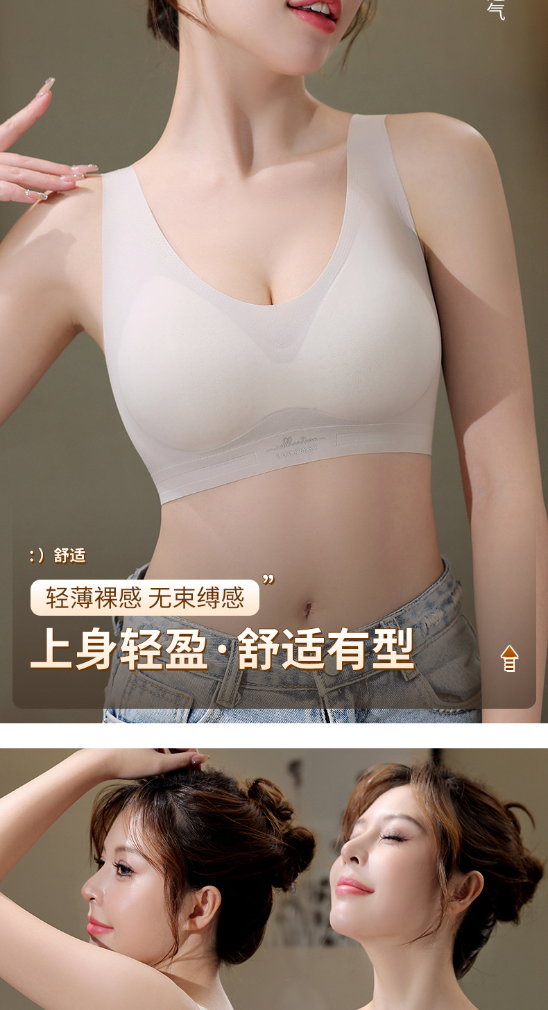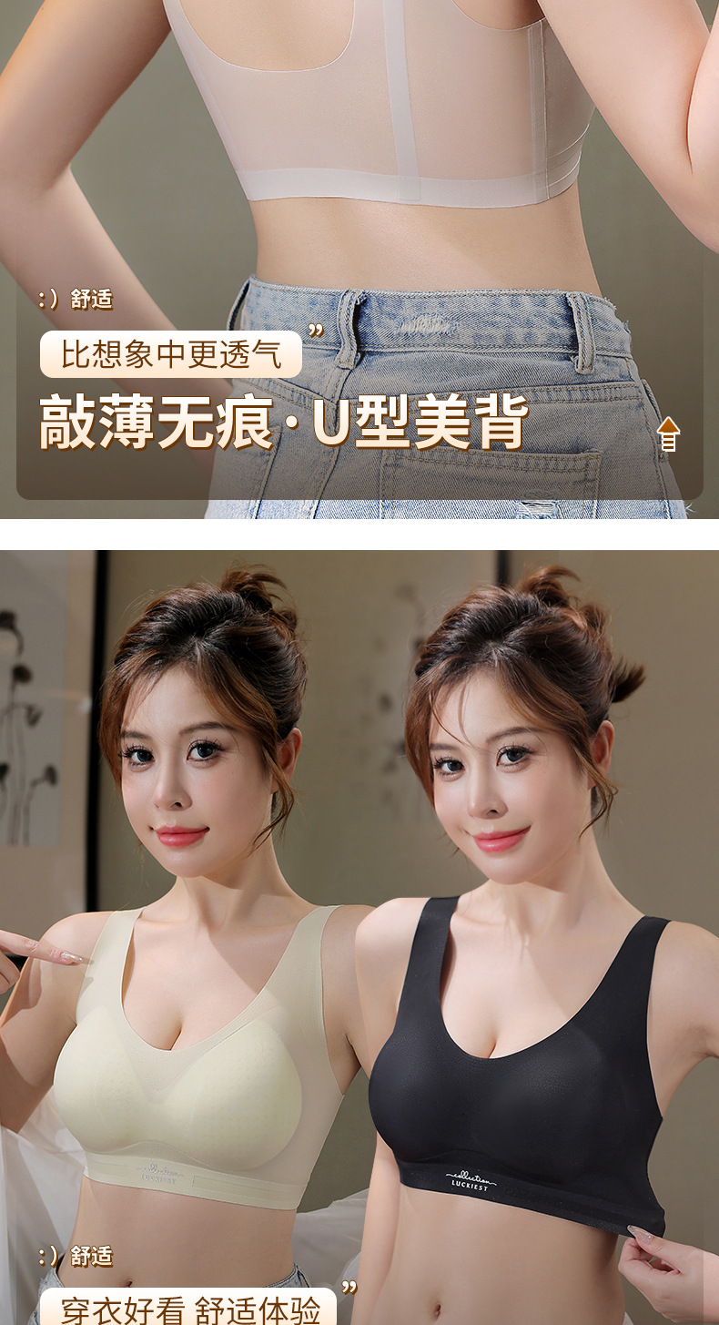 큰 가슴을 가진 여성을 위한 여성용 여름 얼음 실크 이음매 없는 라텍스 속옷, 올인원 조끼 브라, 얇은 스타일스토어 가기