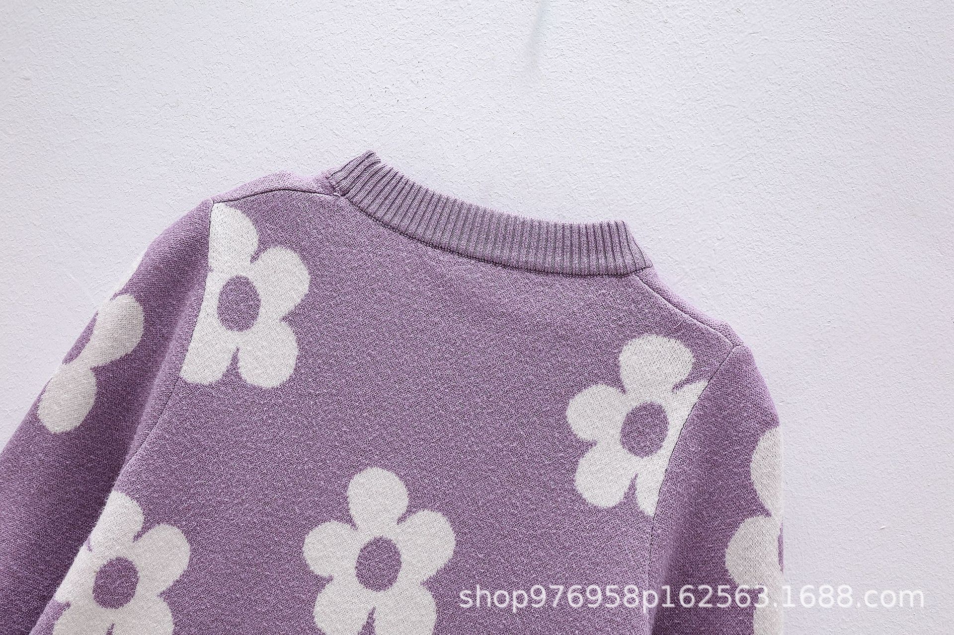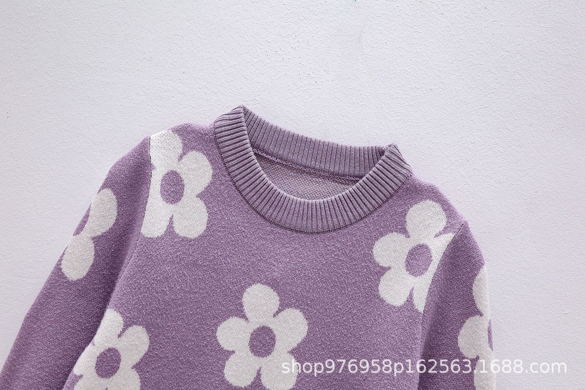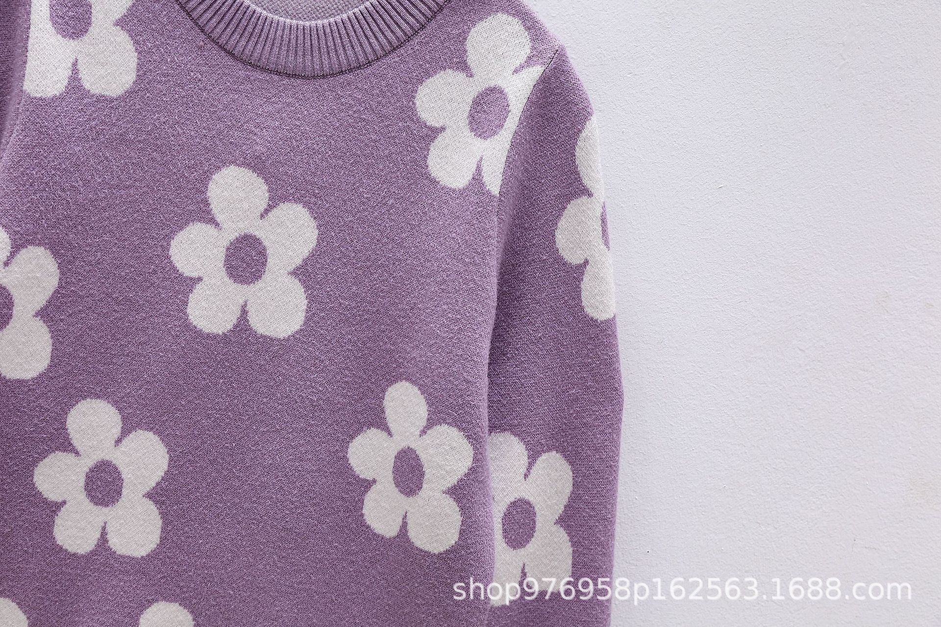 국경을 넘는 새로운 가을 겨울 여아 상의, 라운드 넥, 꽃무늬, 한국 스타일, 긴팔 꽃무늬 이너 스웨터 도매스토어 가기