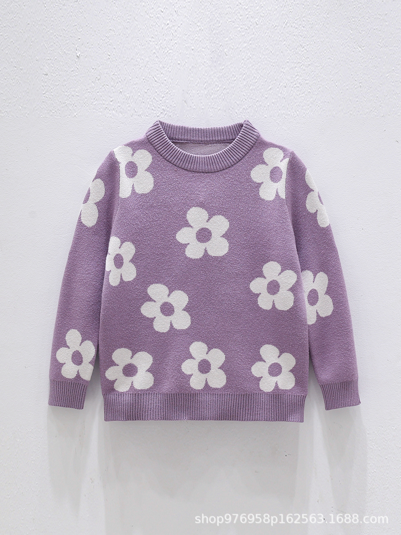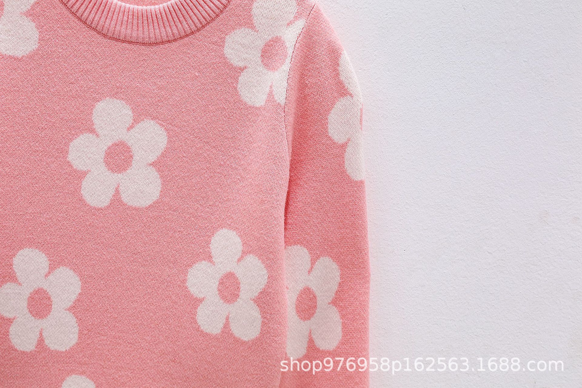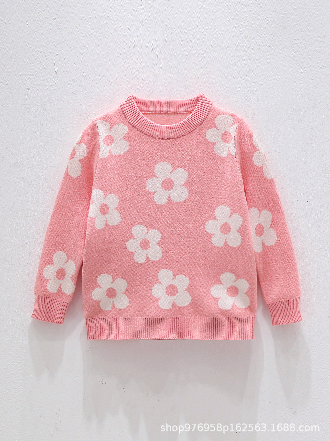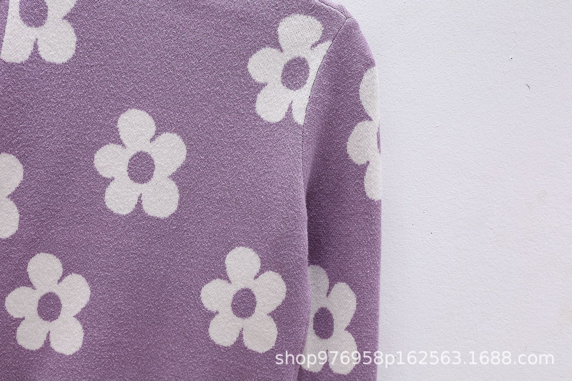 국경을 넘는 새로운 가을 겨울 여아 상의, 라운드 넥, 꽃무늬, 한국 스타일, 긴팔 꽃무늬 이너 스웨터 도매스토어 가기