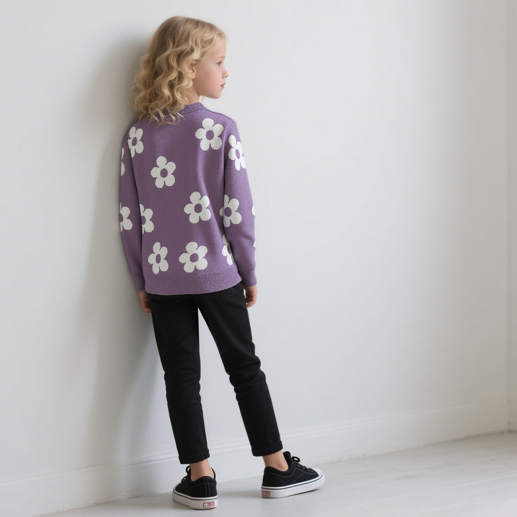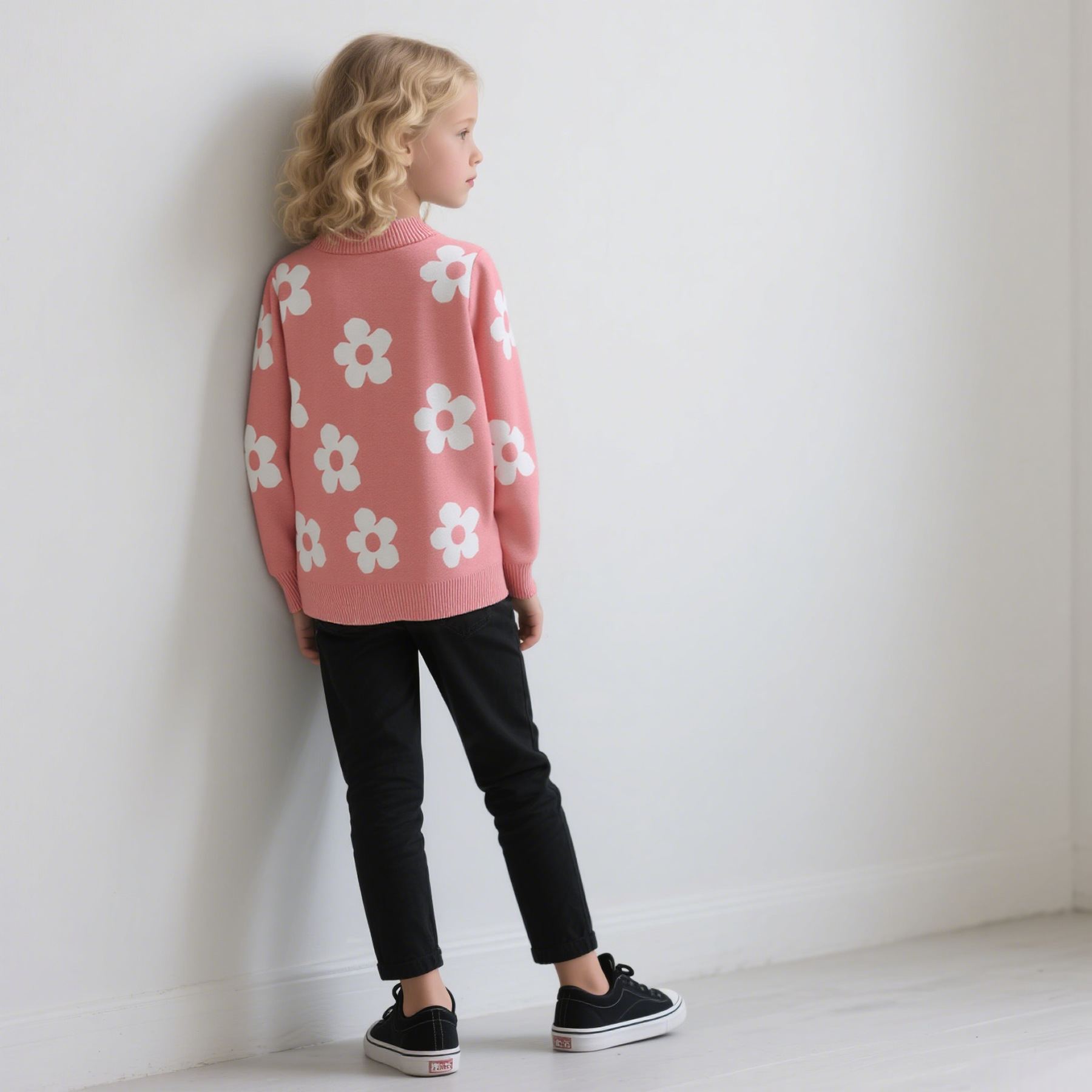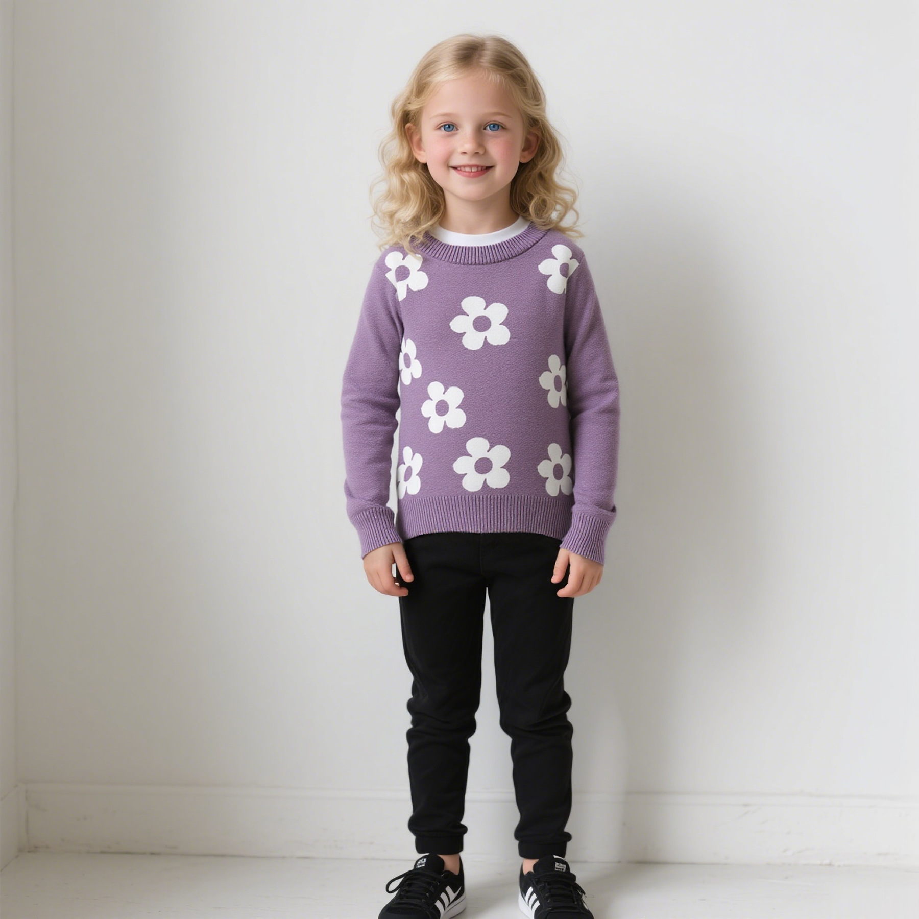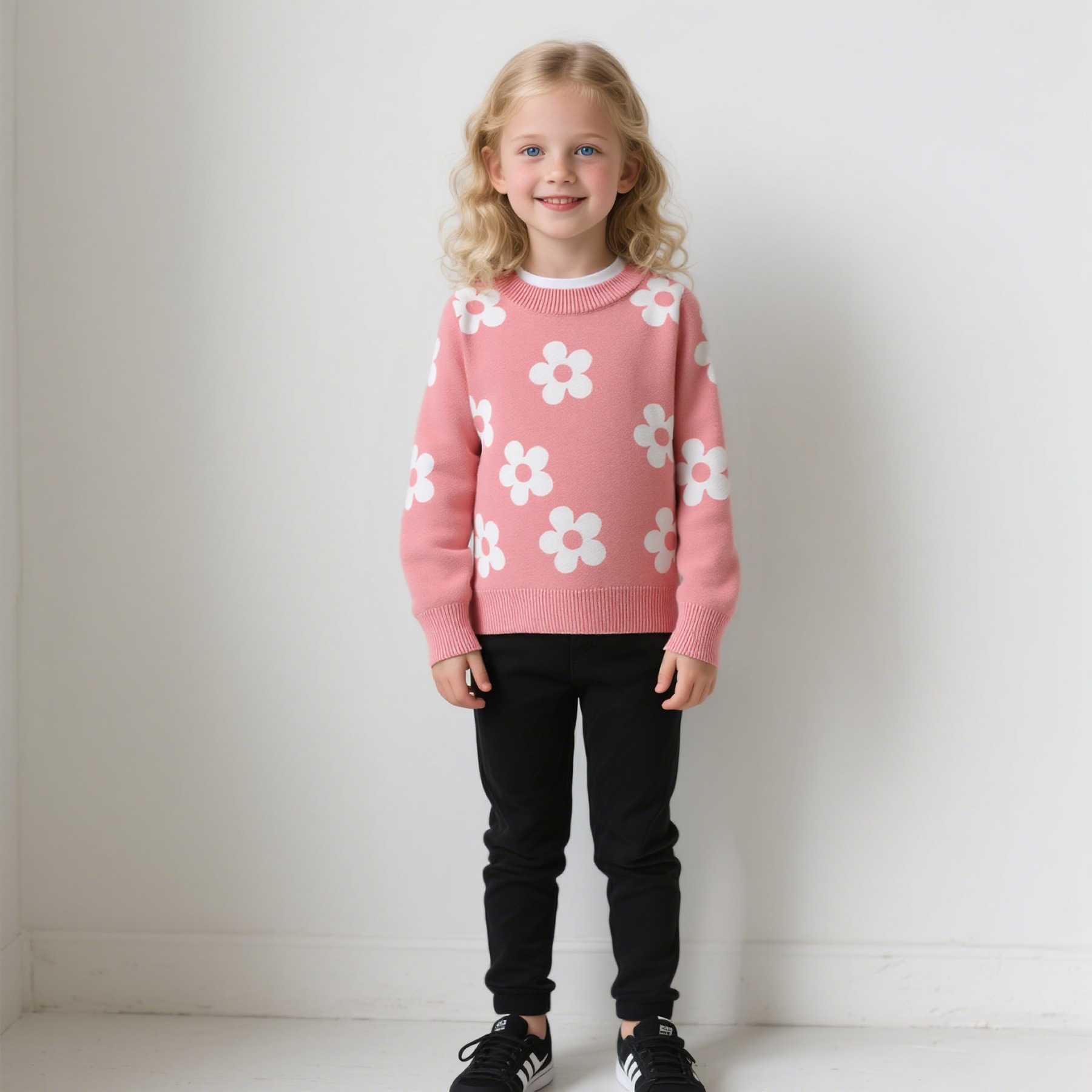 국경을 넘는 새로운 가을 겨울 여아 상의, 라운드 넥, 꽃무늬, 한국 스타일, 긴팔 꽃무늬 이너 스웨터 도매