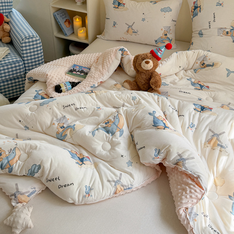 클래스 A 니트 면 비니 벨벳 어린이 이불 코어 더블 사계절 이불 유치원 낮잠 학생 기숙사 싱글
