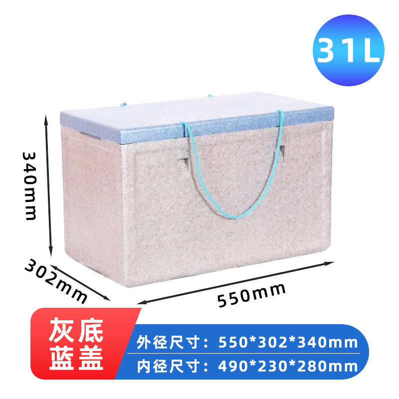 • 두꺼운 31리터 MD 단열 상자(회색 바닥 및 파란색 뚜껑)