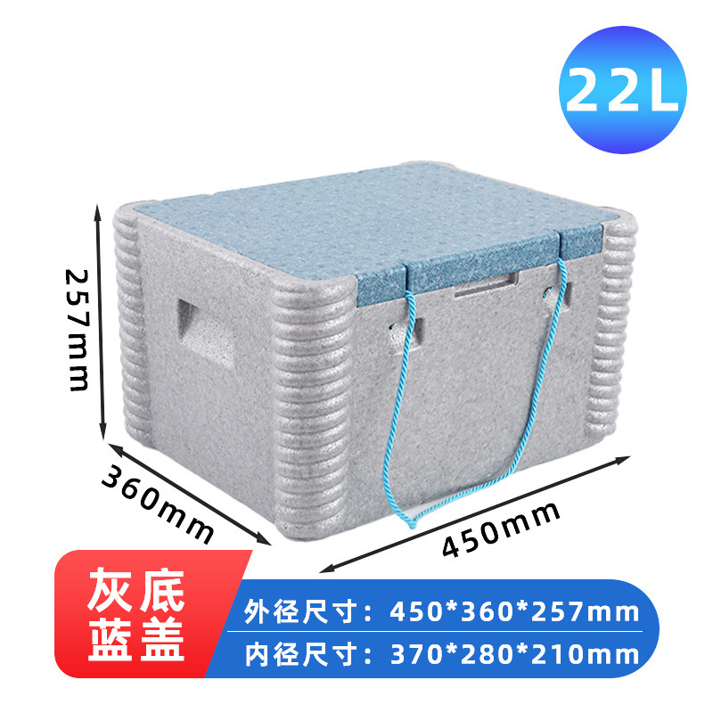 • 22리터 단열 상자(회색 바닥 및 파란색 뚜껑)