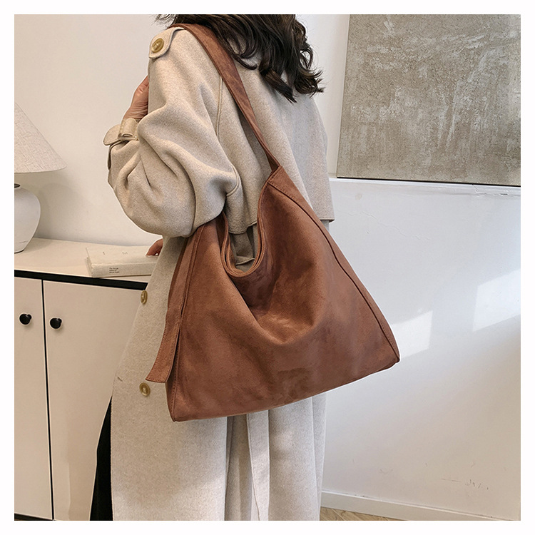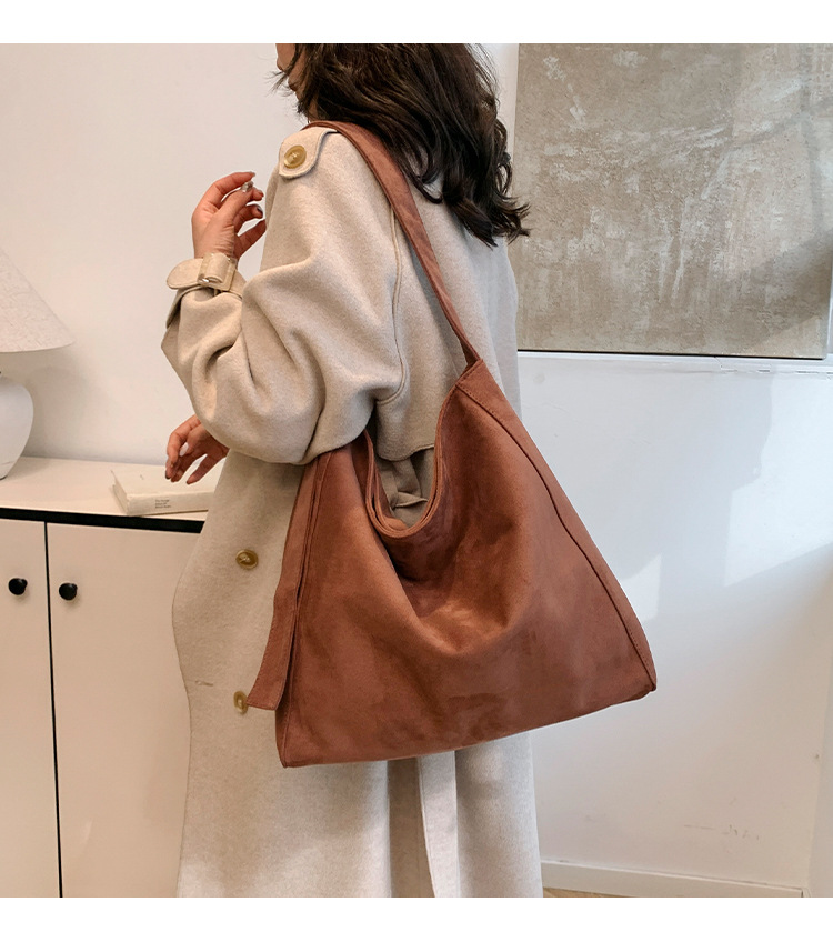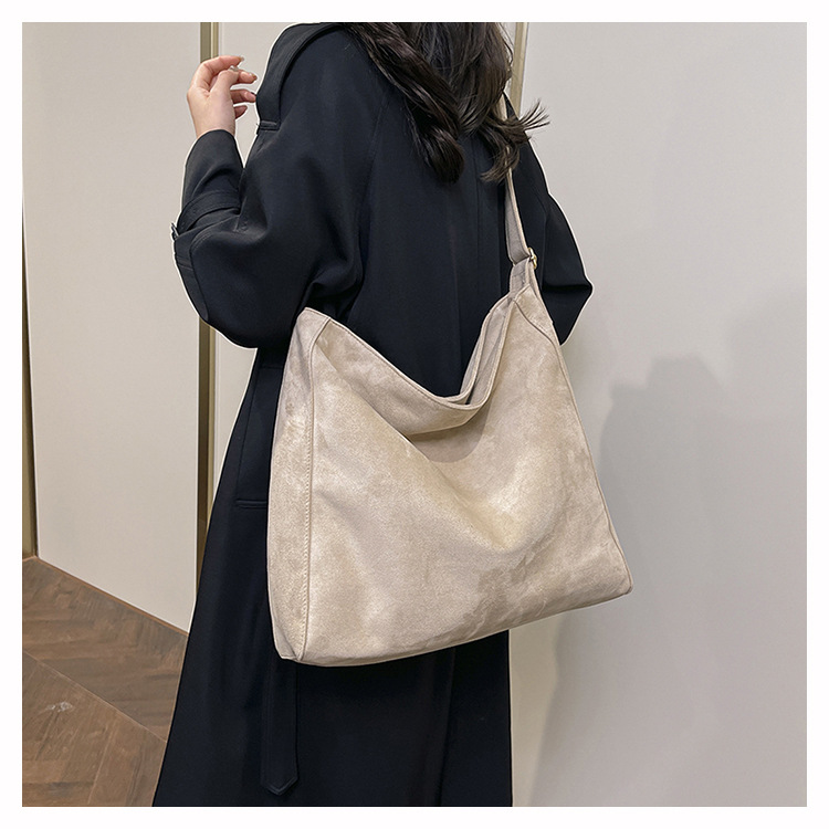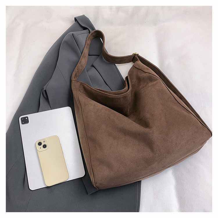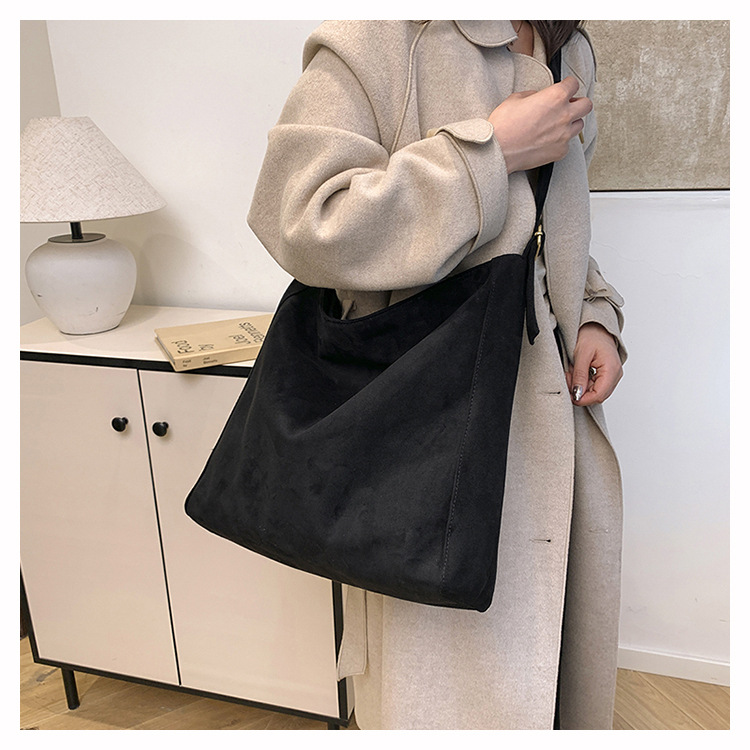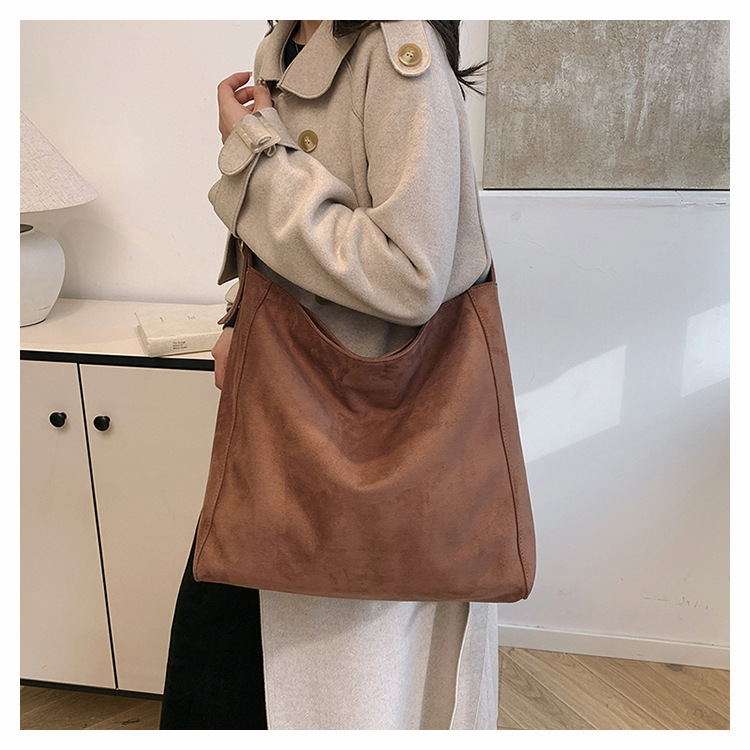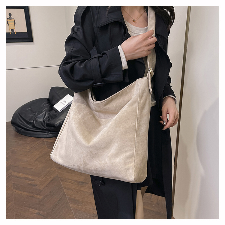 국경 간 복고풍 스웨이드 토트 백 새로운 대용량 숄더 백 패션 유행 통근 크로스 바디 백 여성용 가방