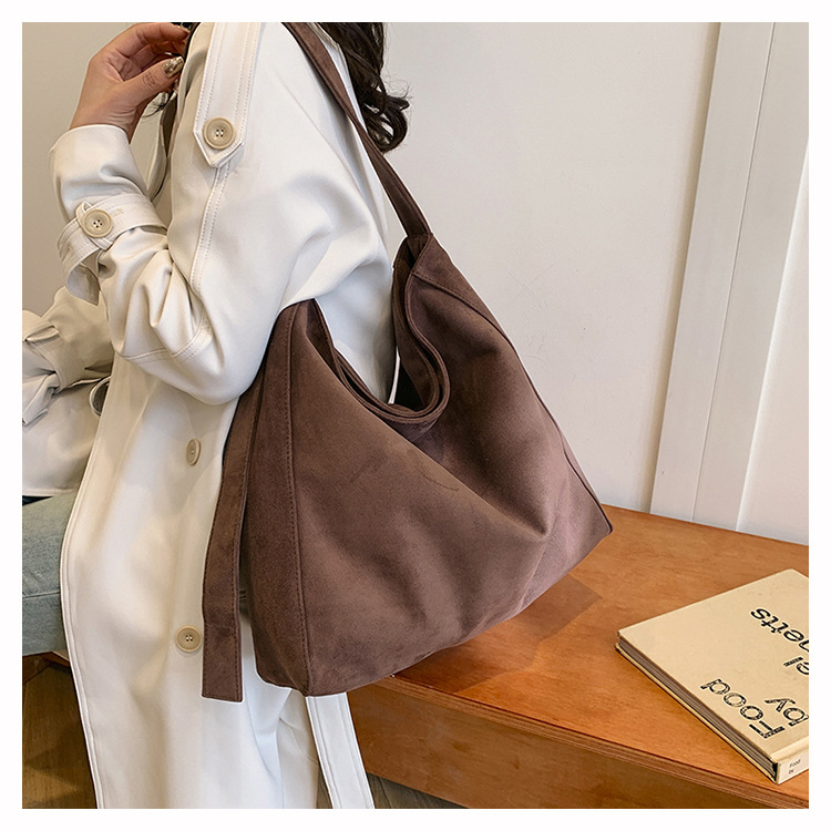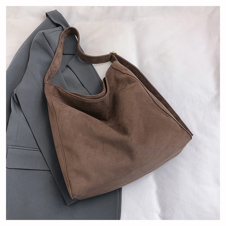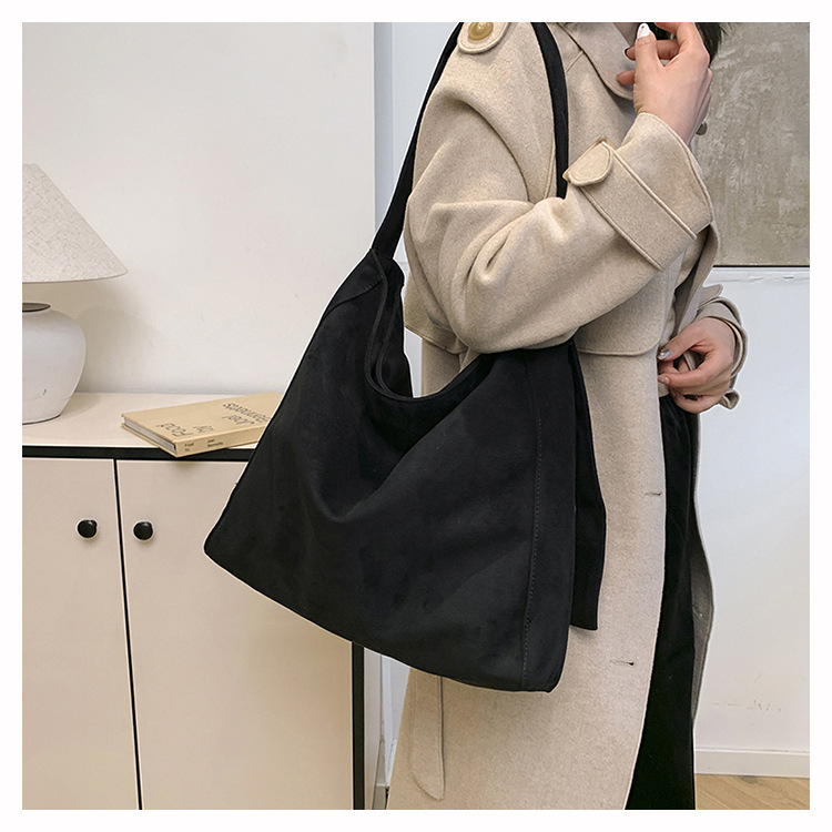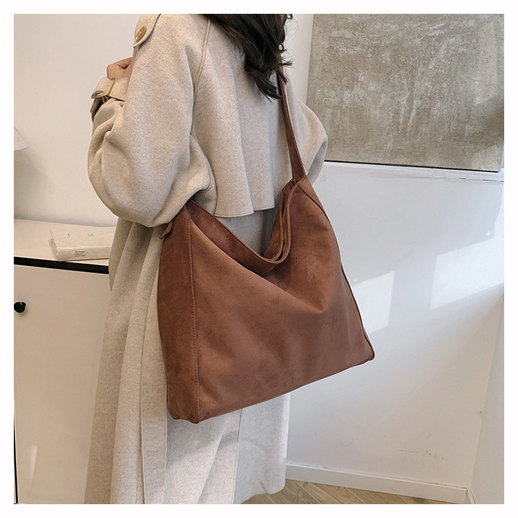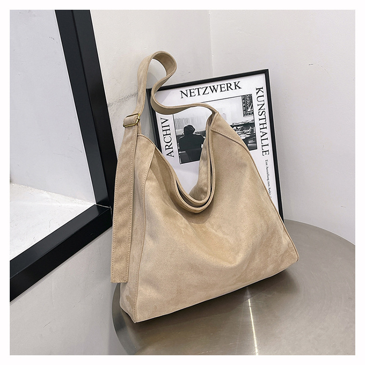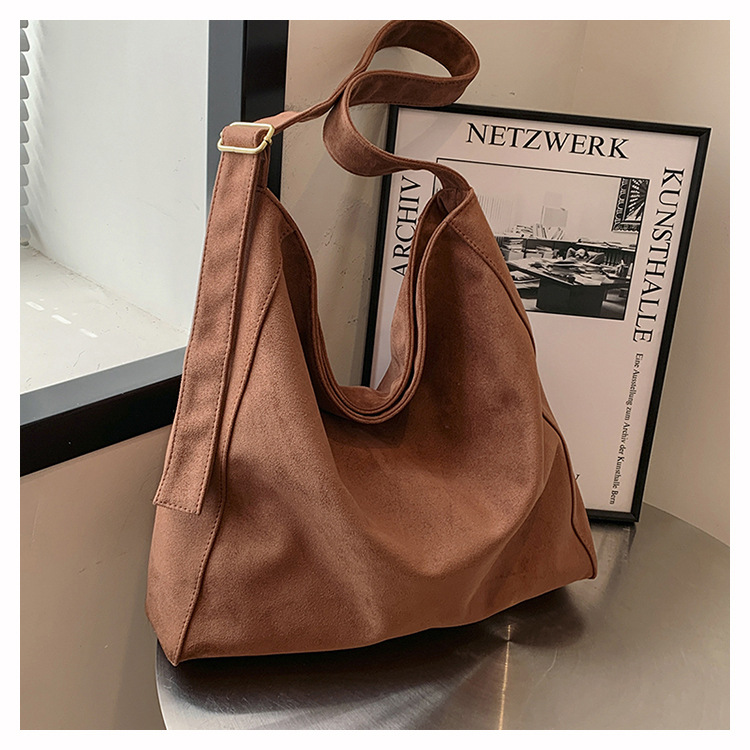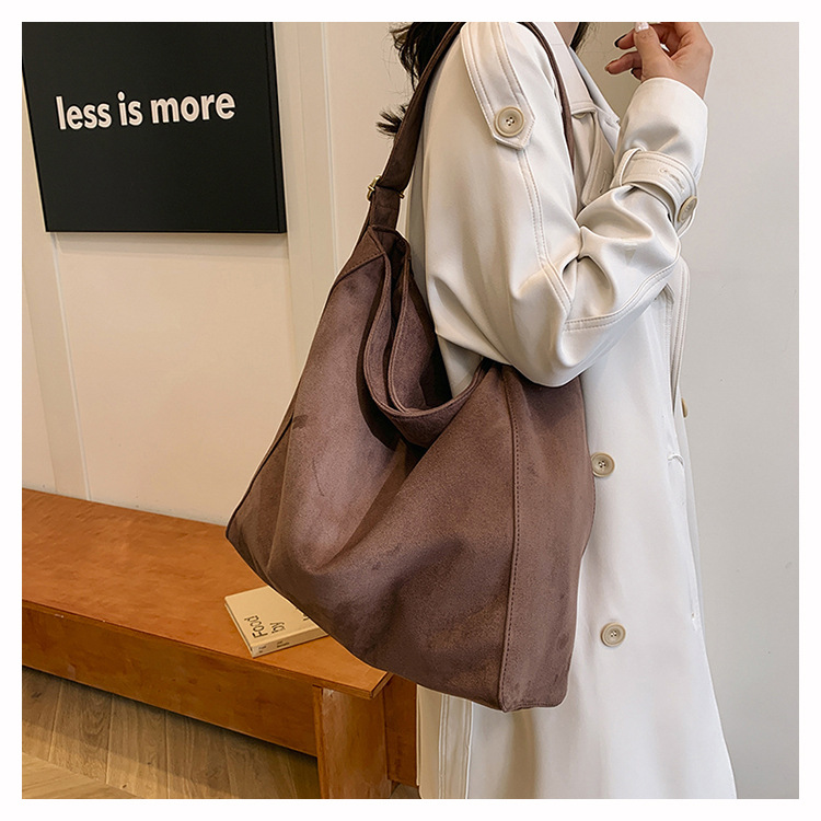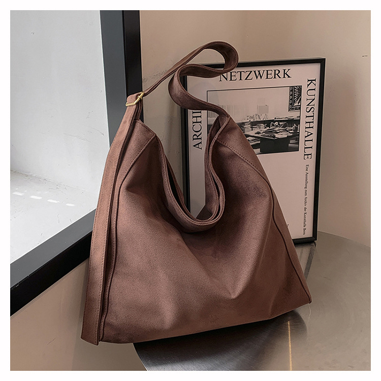 국경 간 복고풍 스웨이드 토트 백 새로운 대용량 숄더 백 패션 유행 통근 크로스 바디 백 여성용 가방