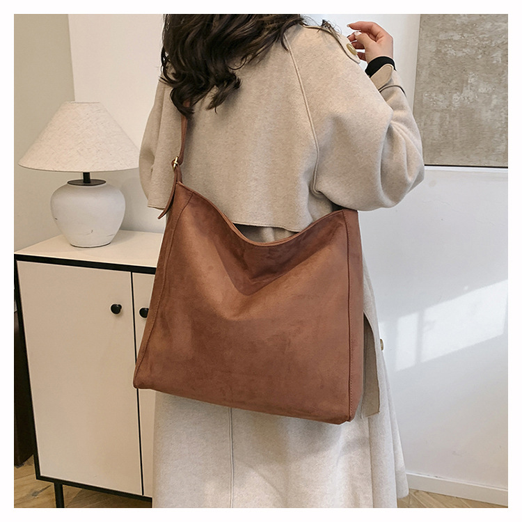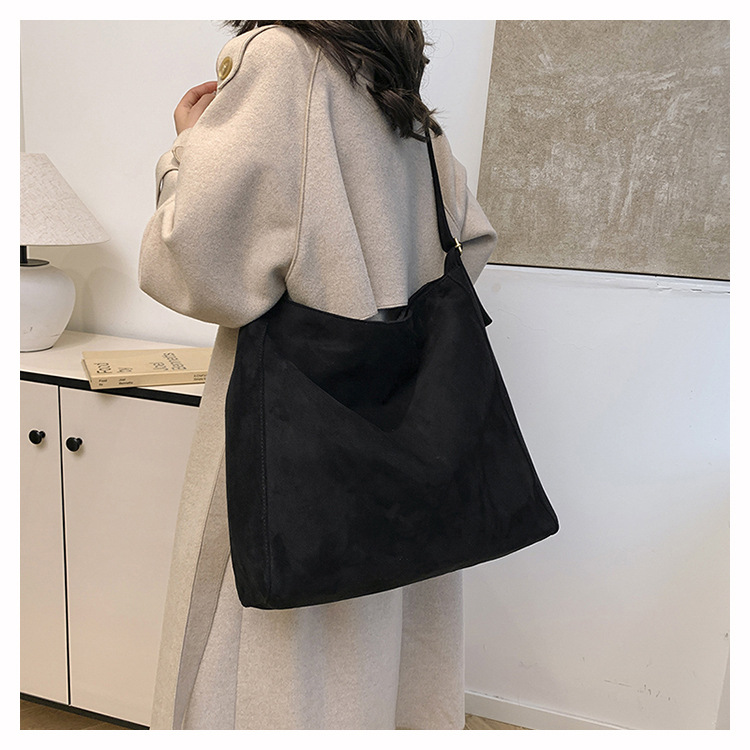 국경 간 복고풍 스웨이드 토트 백 새로운 대용량 숄더 백 패션 유행 통근 크로스 바디 백 여성용 가방스토어 가기