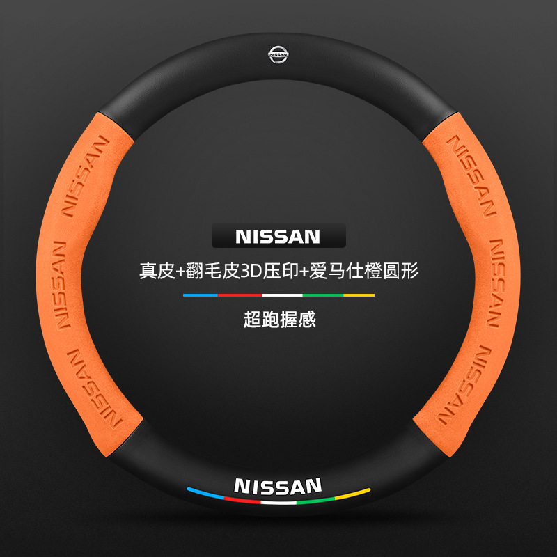 • 스웨이드 3D 양각 탄소 섬유 가죽 Hermès 오렌지 라운드 닛산 로고