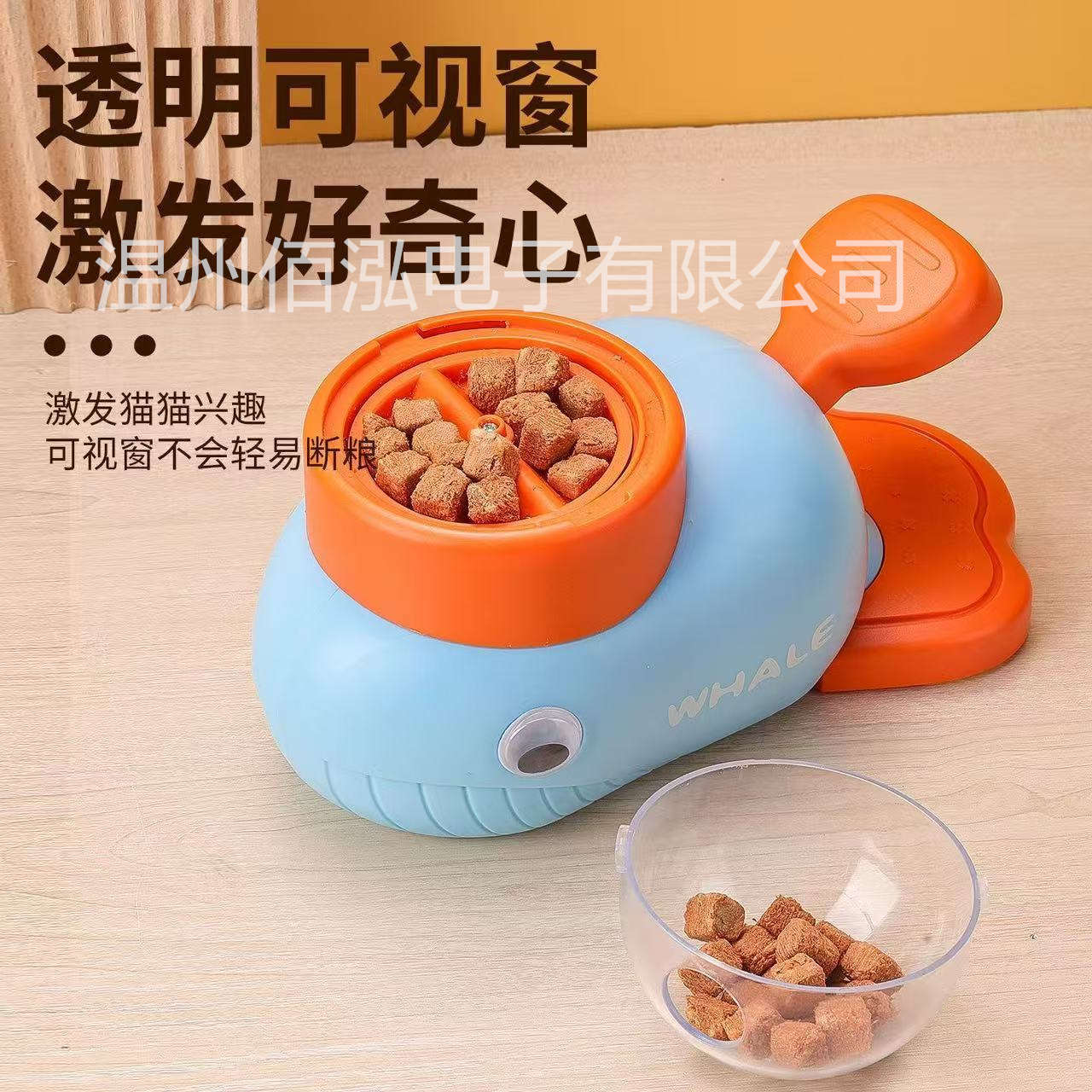 국경을 넘는 인기 애완견 작은 노란색 닭 자동 먹이 기계 고양이 먹이 기계 용품 음식 배달 대화 형 고양이 장난감