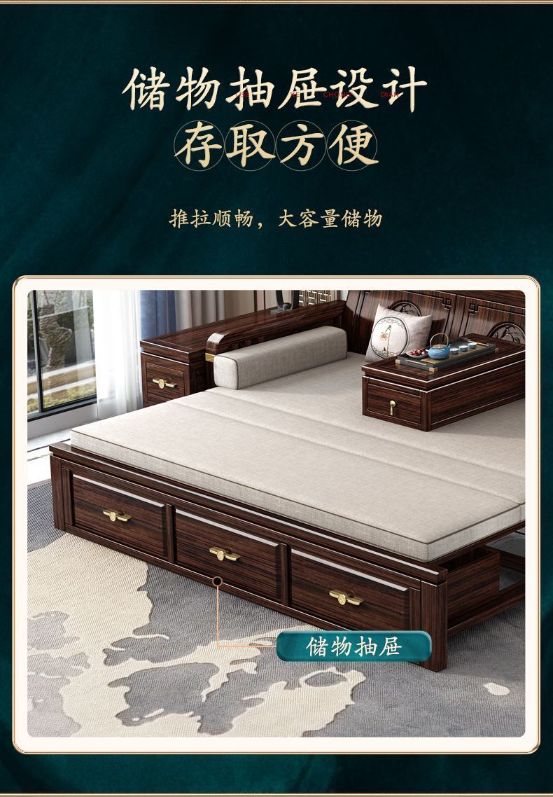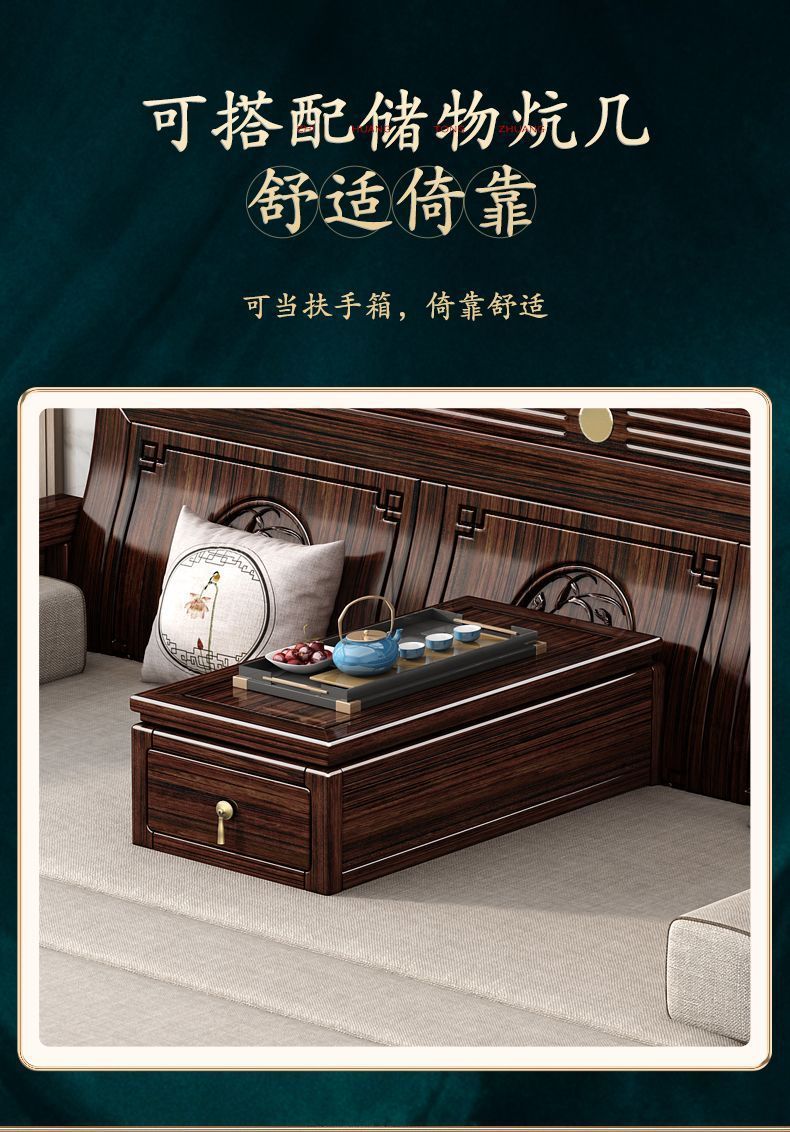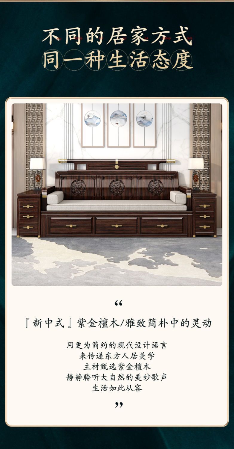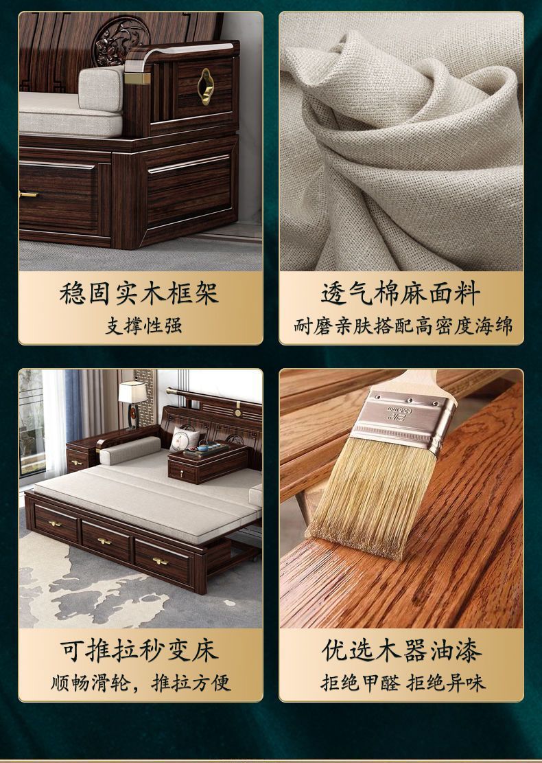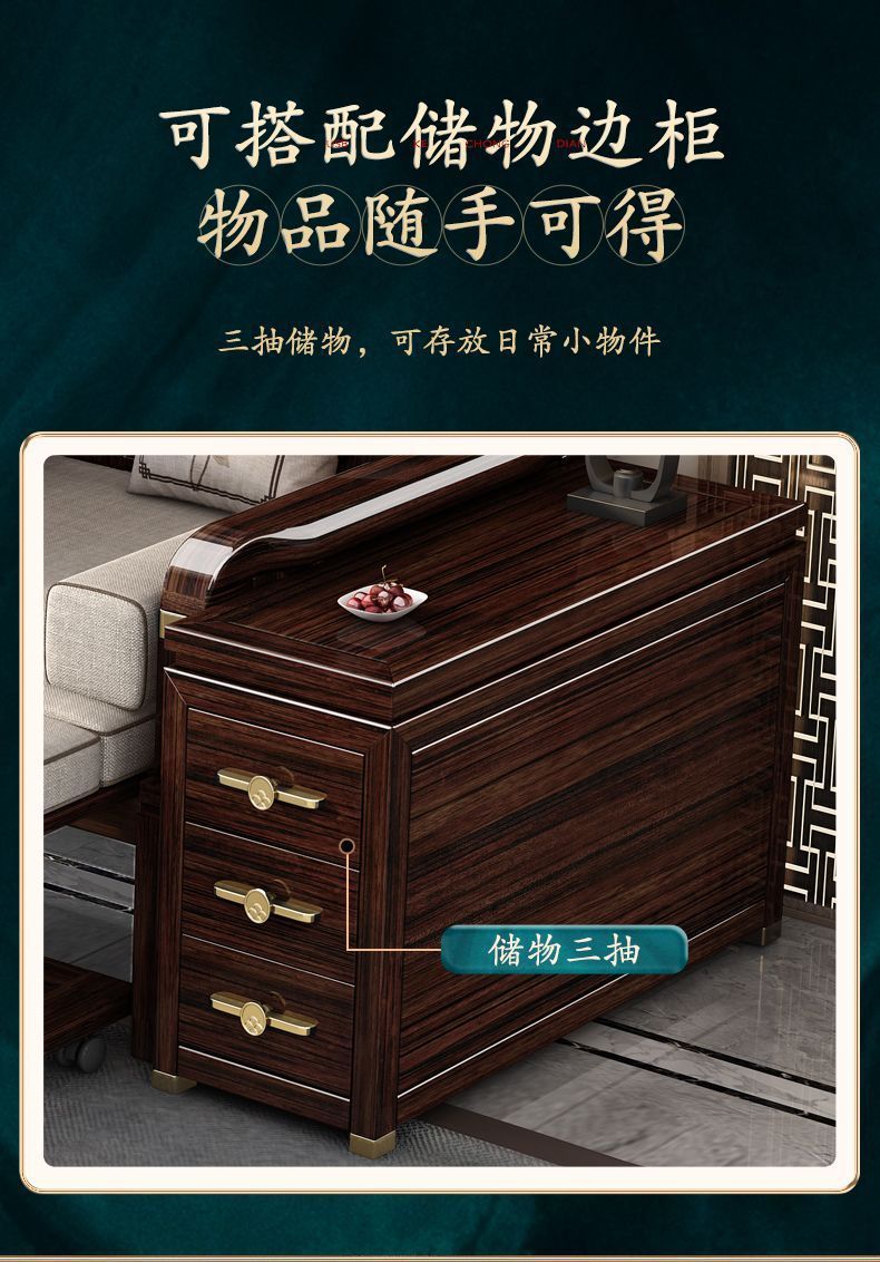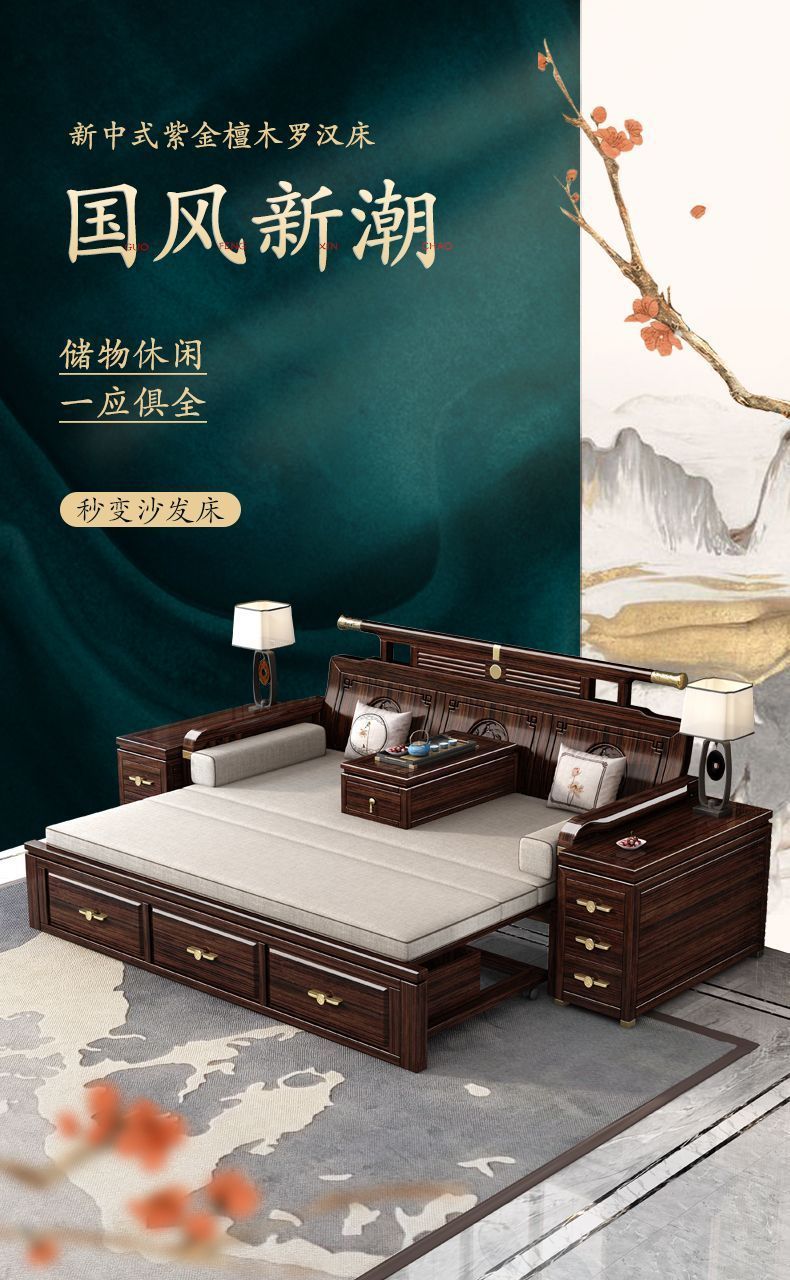 새로운 중국 스타일 Luohan 침대 슬라이딩 및 풀 아웃 Luohan 침대 수납 서랍이 있는 단단한 나무 거실 텔레스코픽 풀 아웃 소파