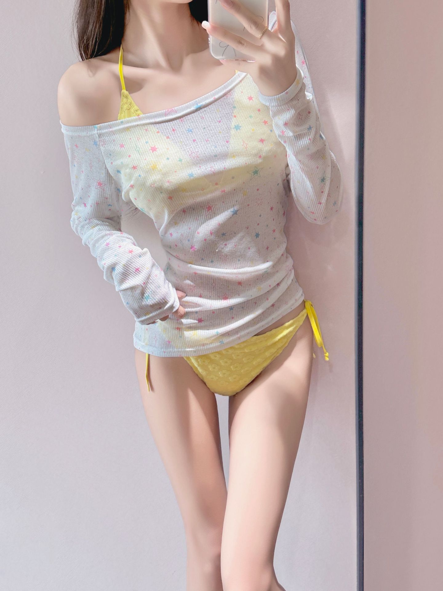 수영복 여성 하이 엔드 스플릿 4 피스 비키니 수영복 긴 소매 태양 보호 스타 프린트 비치 수영복 도매스토어 가기