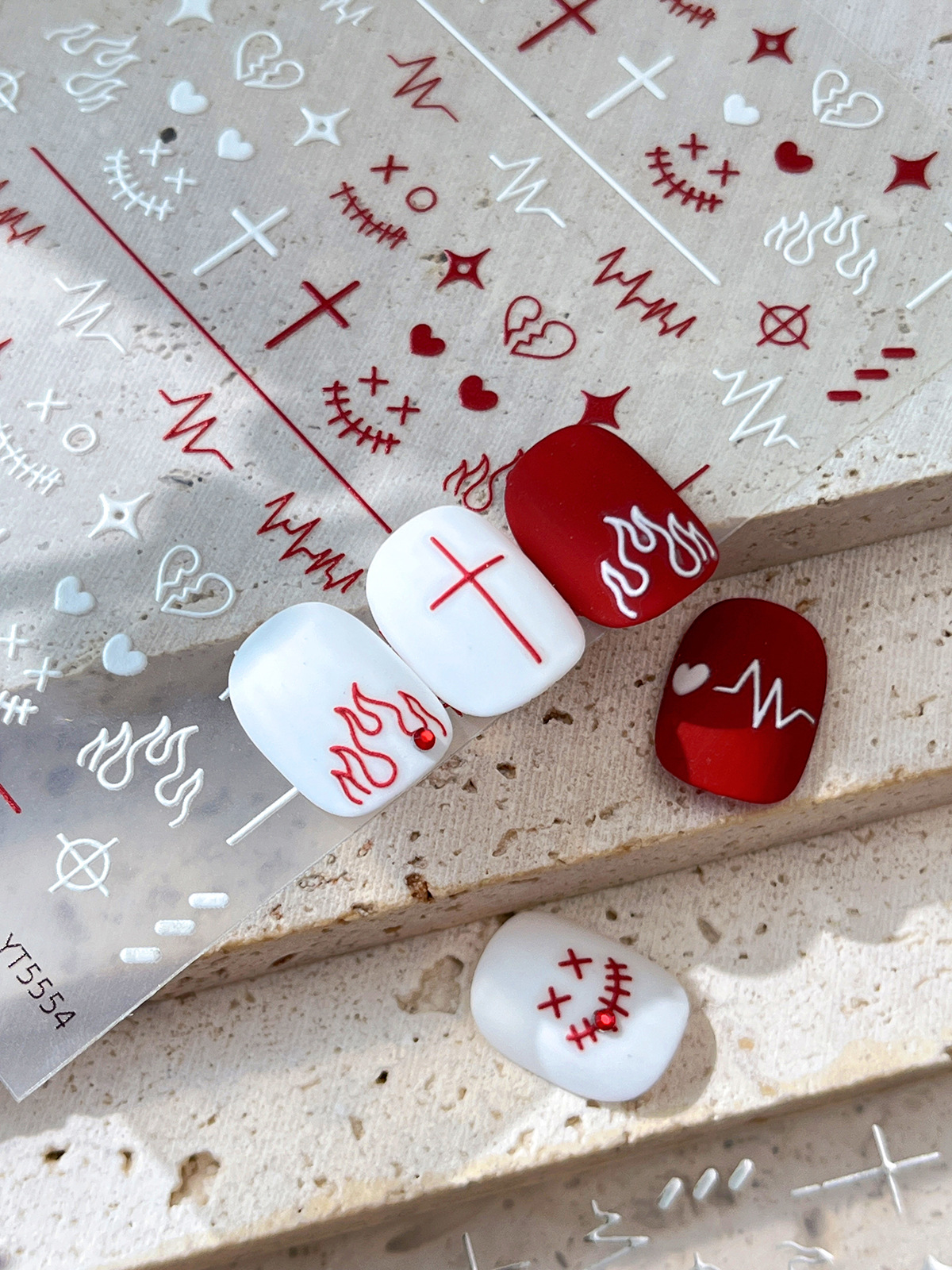 YITU 엘리베이티드 크로스 네일 아트 스티커 핫 소녀 달콤한 멋진 불꽃 유령 얼굴 사랑 장식 스티커 YT5554