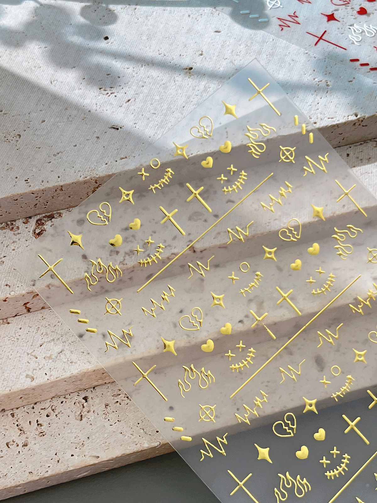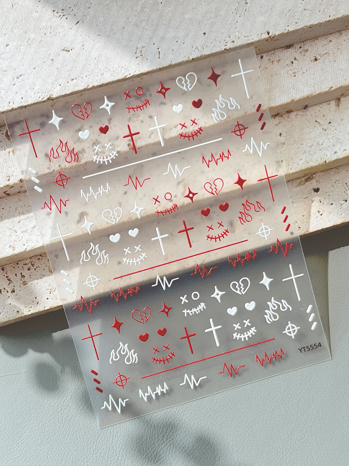 YITU 엘리베이티드 크로스 네일 아트 스티커 핫 소녀 달콤한 멋진 불꽃 유령 얼굴 사랑 장식 스티커 YT5554스토어 가기