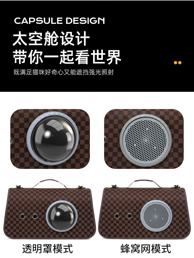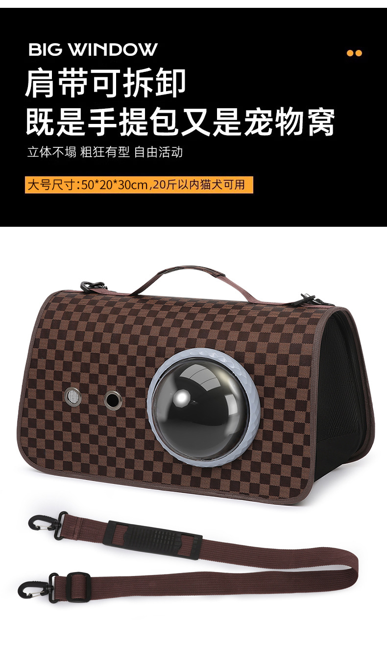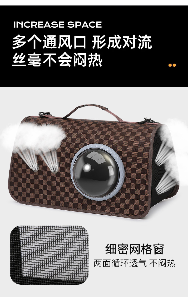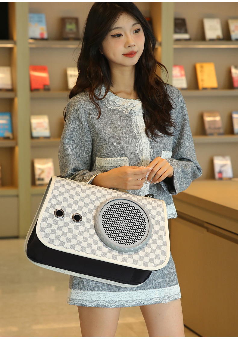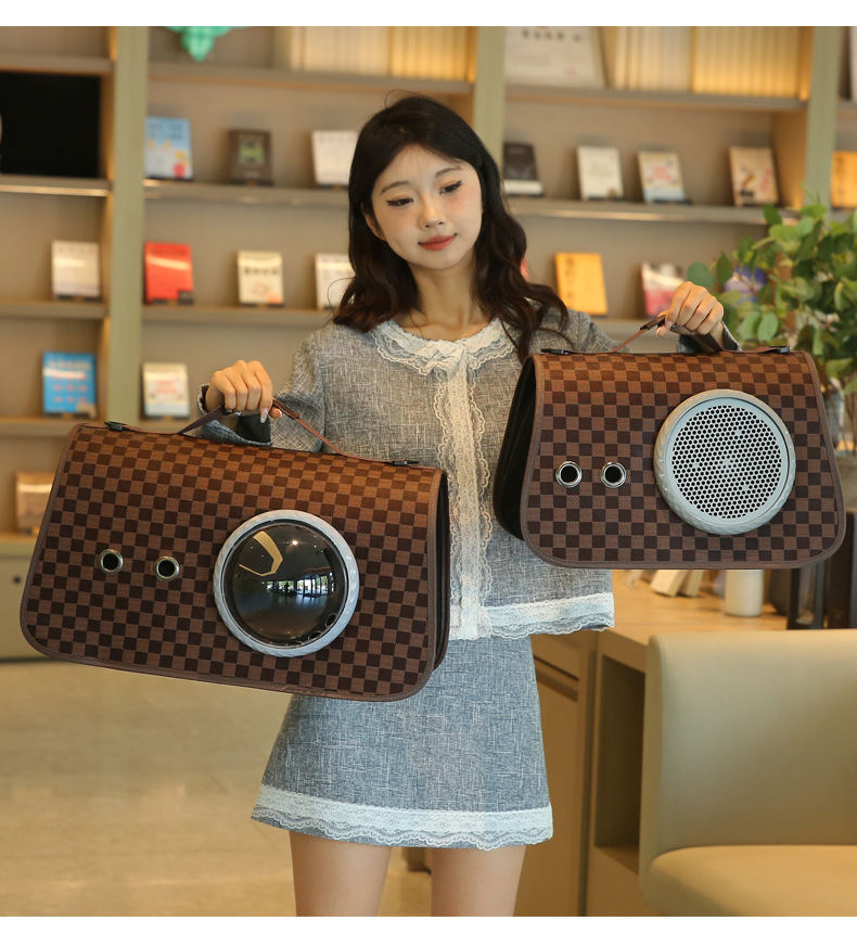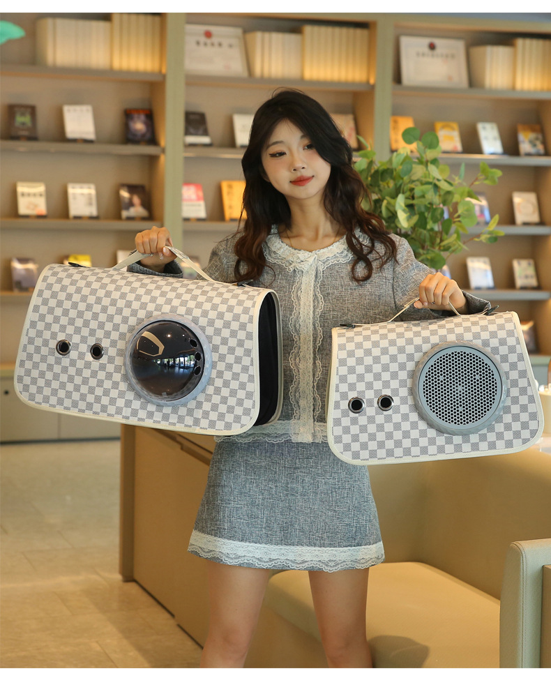 고양이 가방 휴대용 애완동물 가방 숄더백 대용량 체커보드 패턴 애완동물 백팩 재고 있음