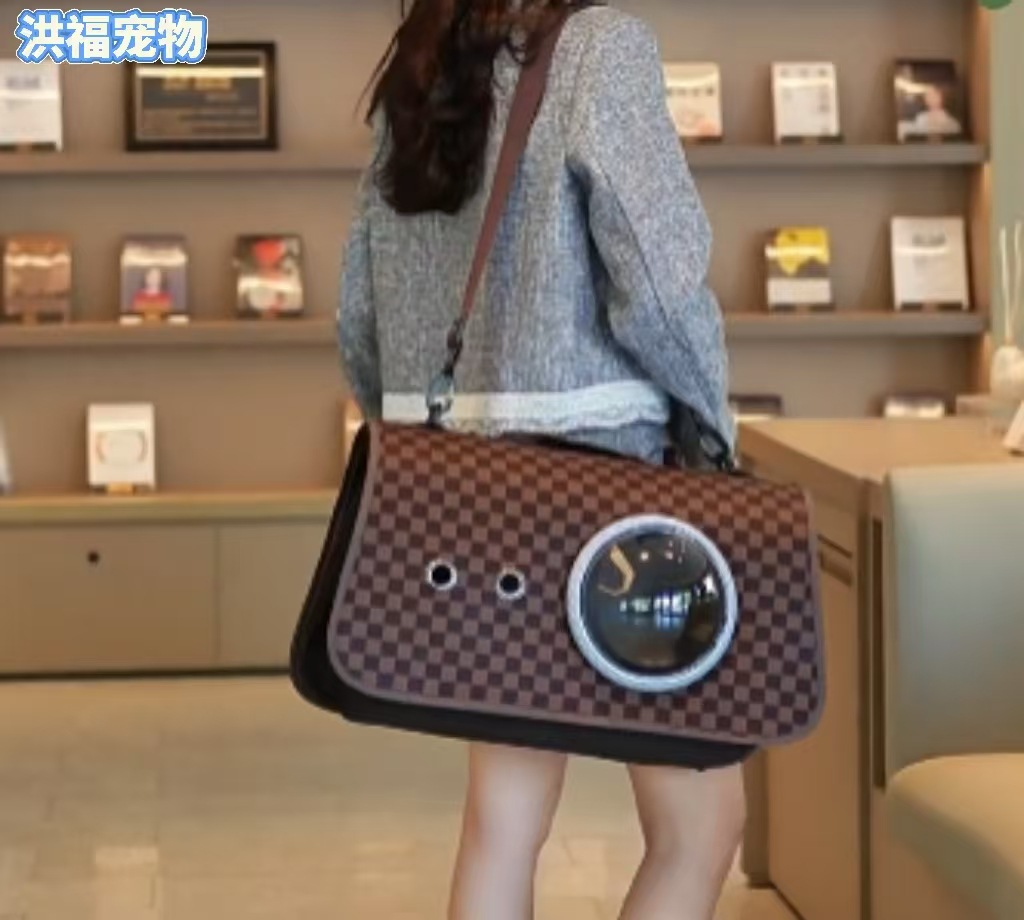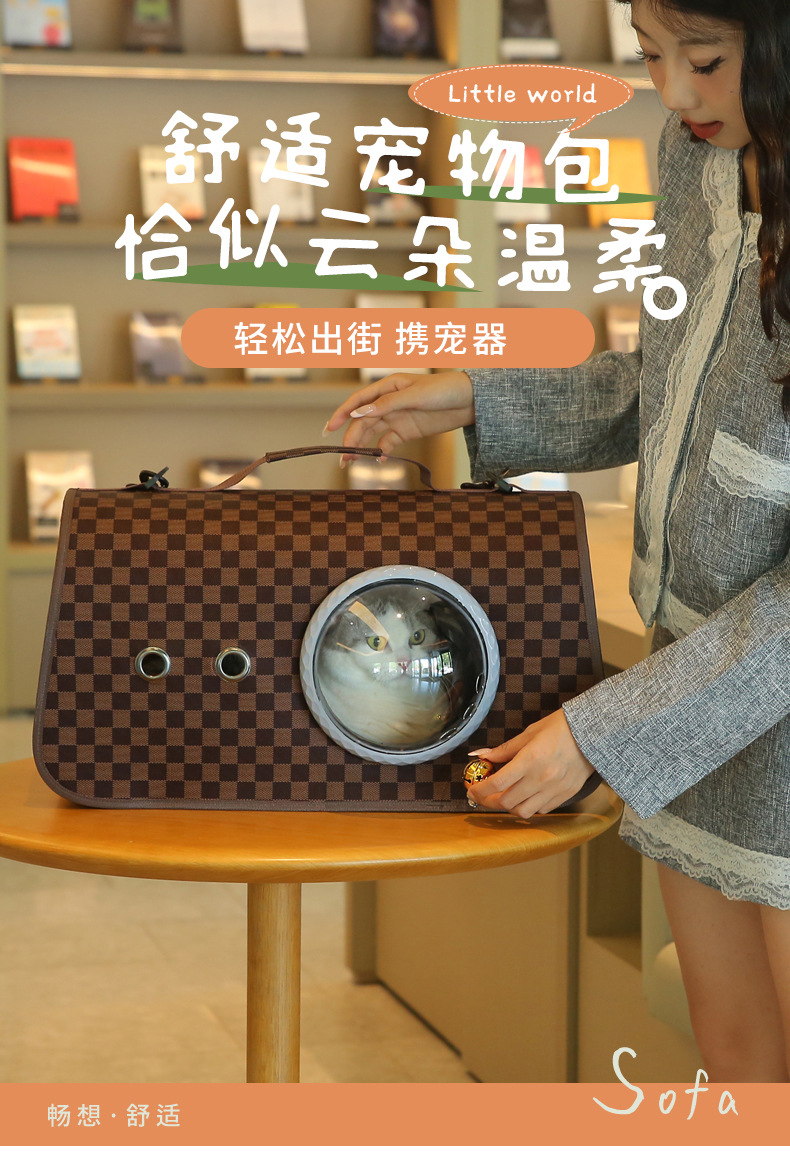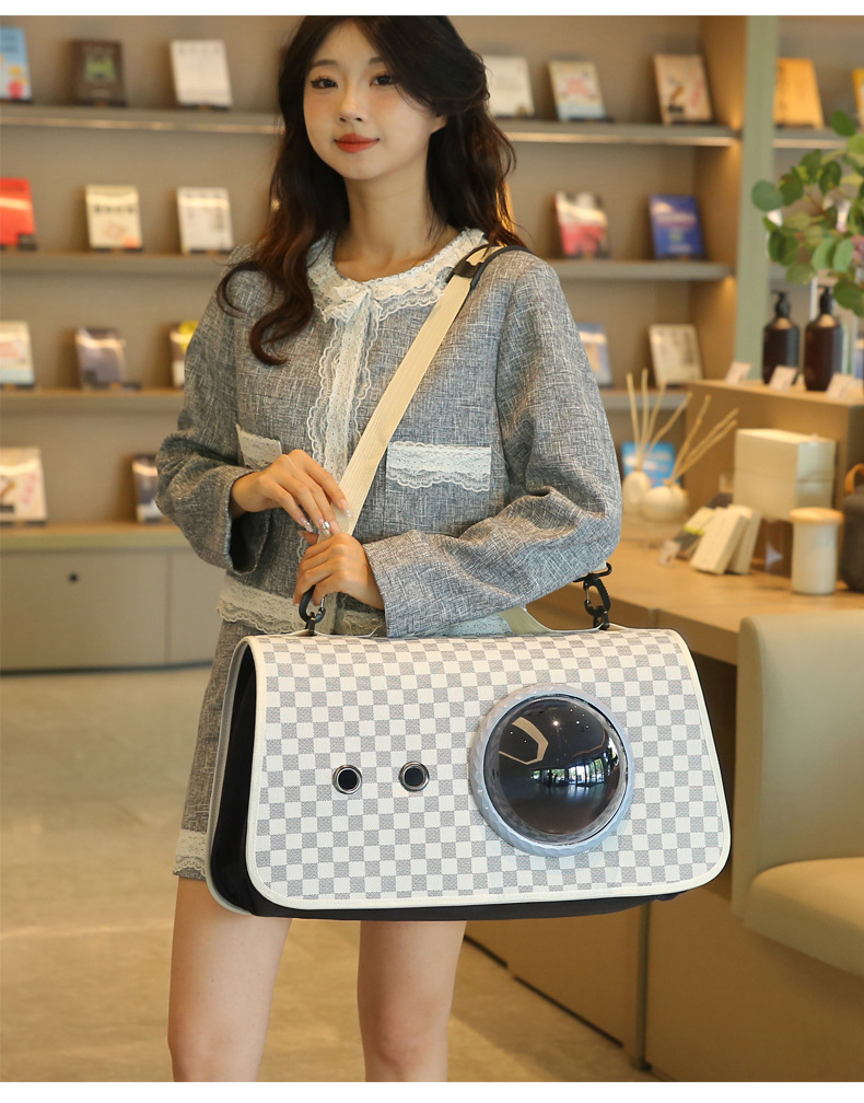 고양이 가방 휴대용 애완동물 가방 숄더백 대용량 체커보드 패턴 애완동물 백팩 재고 있음스토어 가기