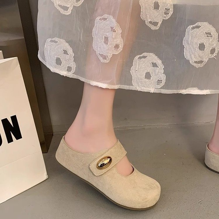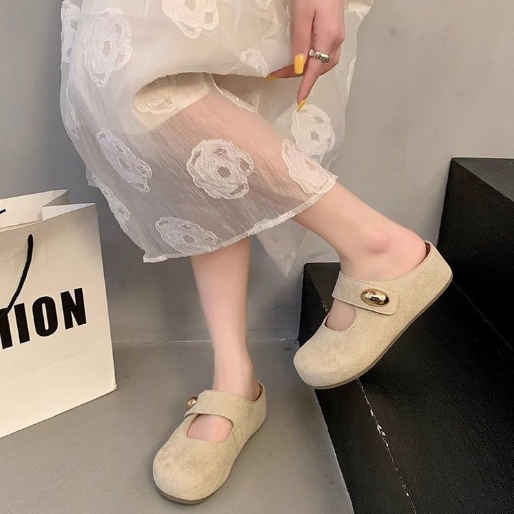 프랑스 스타일 강화 Baotou 하프 슬리퍼 여성 아우터웨어 2025 새로운 봄과 여름 슬립 온 게으른 은행화 샌들과 슬리퍼