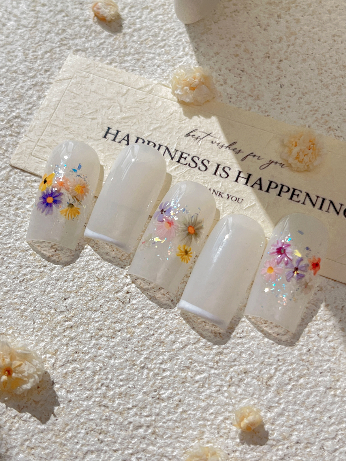 YITU 엘리베이티드 플라워 네일 아트 스티커 다채로운 귀여운 복고풍 꽃 달콤한 장식 스티커 YT5440