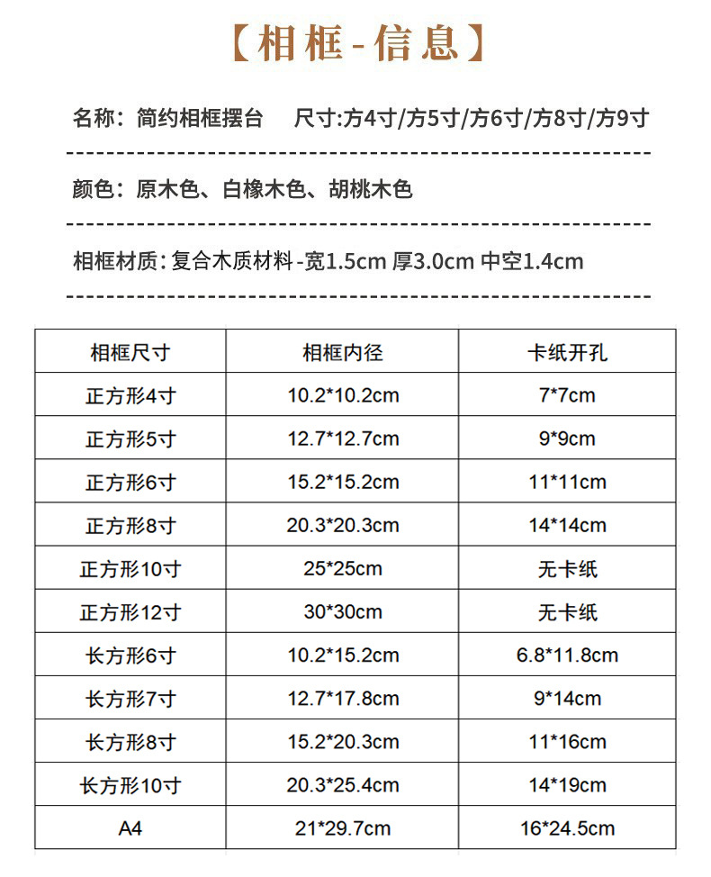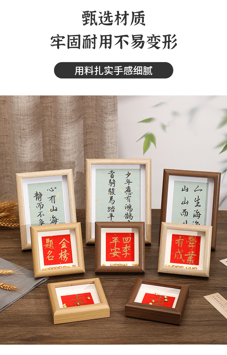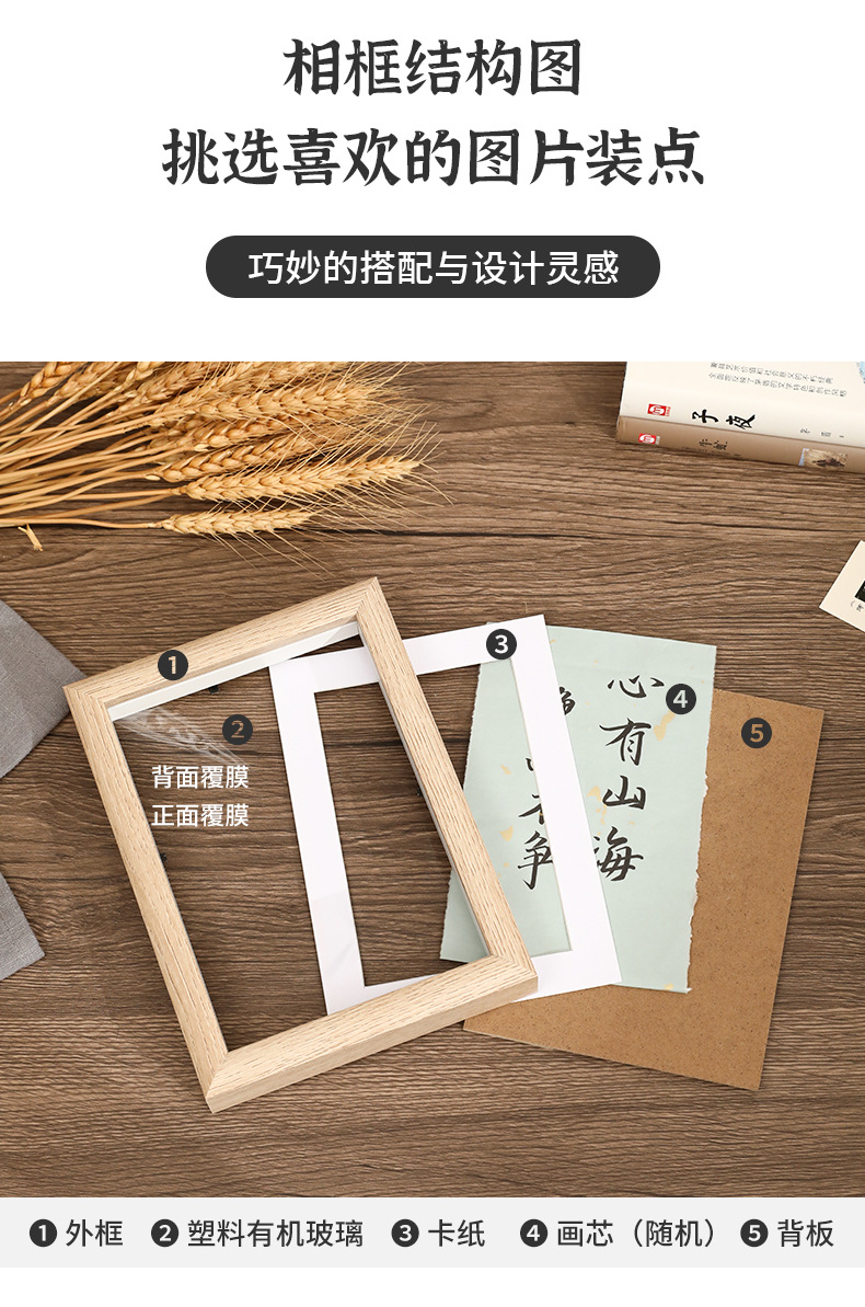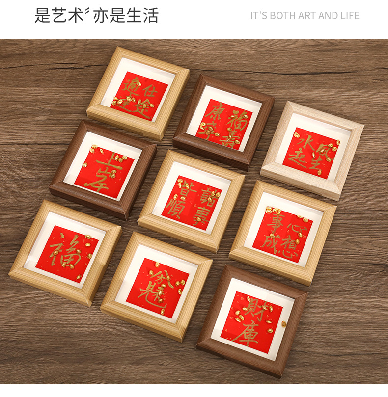 二、相框成品包含:外框、卡纸、塑料有机玻璃面板,后密度板背板、不含画纸和元宝,正方形10寸12寸无卡纸